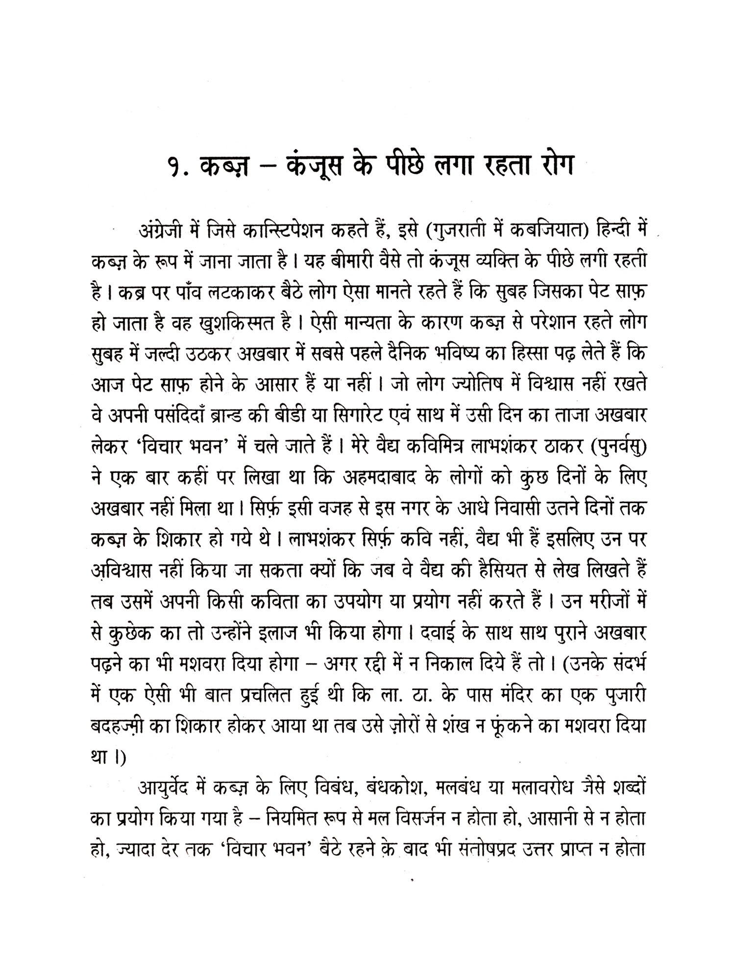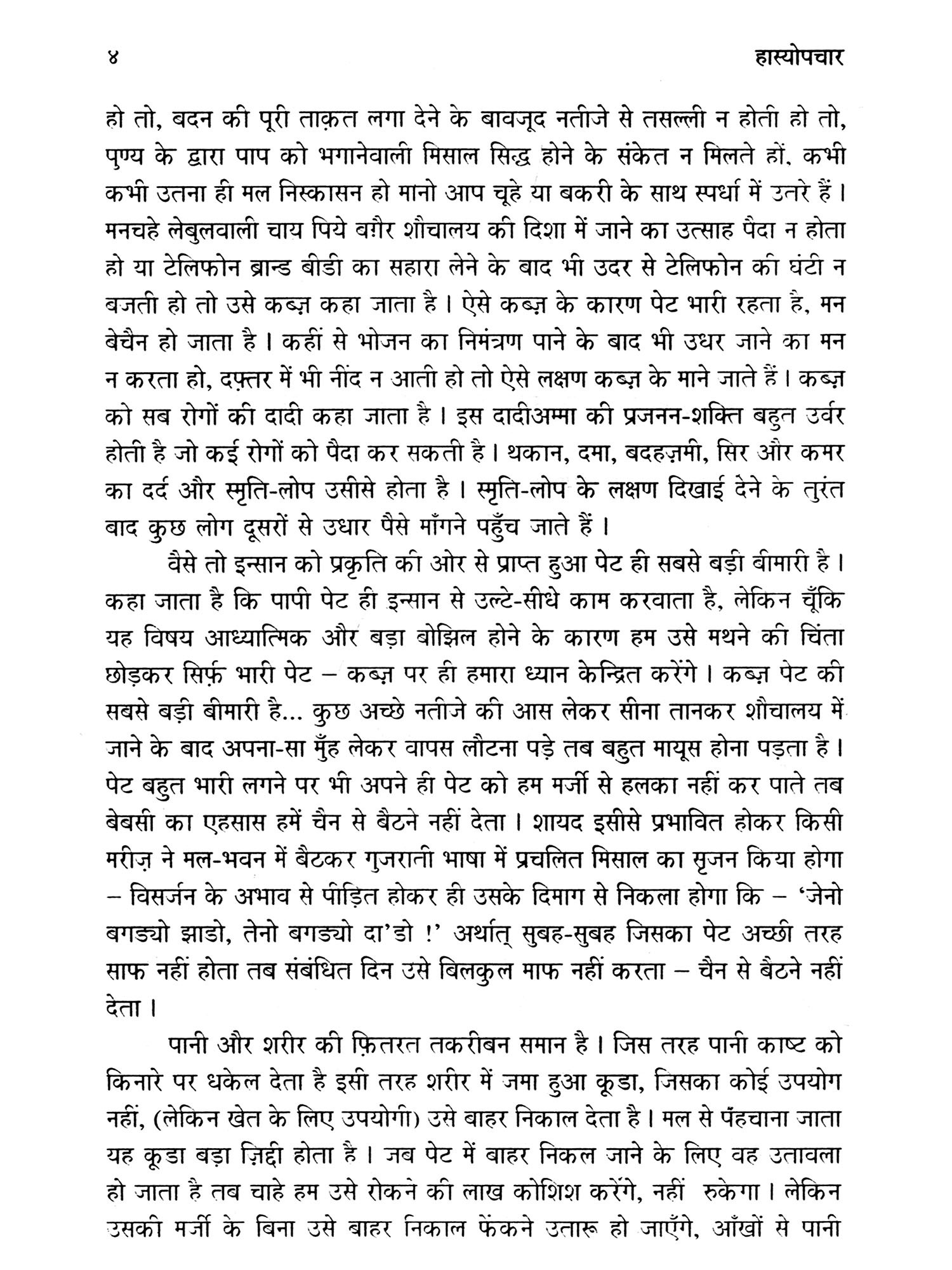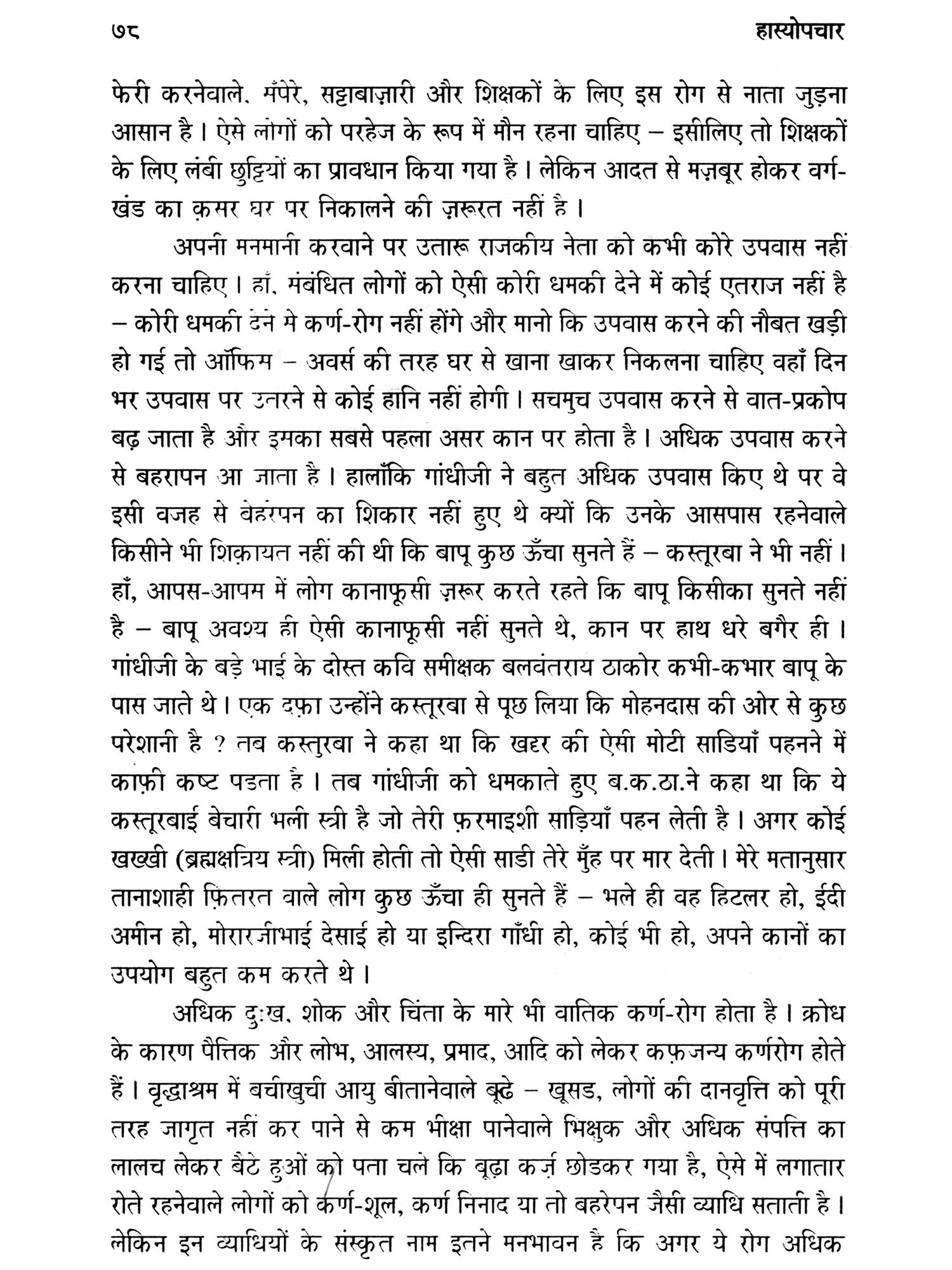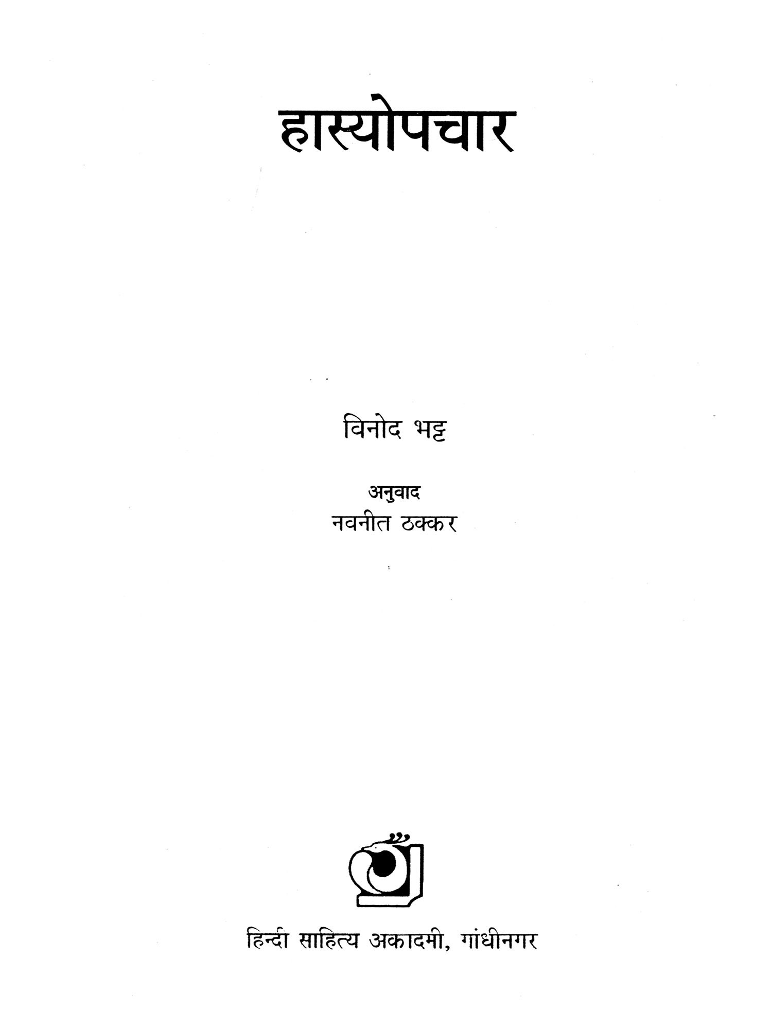 गुजराती में उनके द्वारा रचित 'हास्योपचार' पुस्तक का अनुवाद हिन्दी में करवाकर हिन्दी साहित्य अकादमी ने इसे गुजराती भाषा की सीमाओं से दूर राष्ट्रीय स्तर तक पहुँचाने के अपने उद्देश्य की परंपरा जारी रखी है। इसके साथ ही हिन्दी और गुजराती तथा अन्य भारतीय भाषाओं के बीच आदान-प्रदान की भावना को सुदृढ बनाया है। इसके साथ ही गुजराती और हिन्दी भाषा के रचनारत नवनीत ठक्कर ने इस पुस्तक के निरामय अनुवाद का दायित्व उठाकर हिन्दी साहित्य अकादमी, गुजरात के अपने उद्देश्य की पूर्ति में सहयोग दिया। दोनों साहित्यकारों के प्रति अकादमी की ओर से आभार प्रदर्शित करता हूँ।