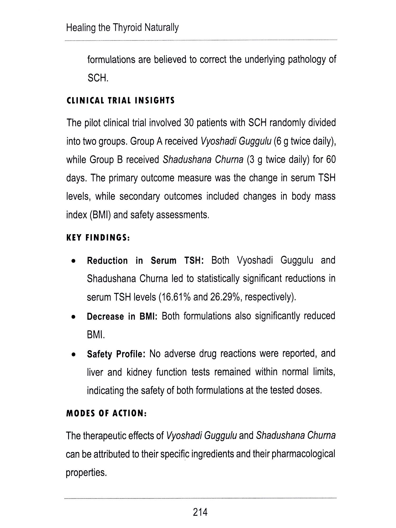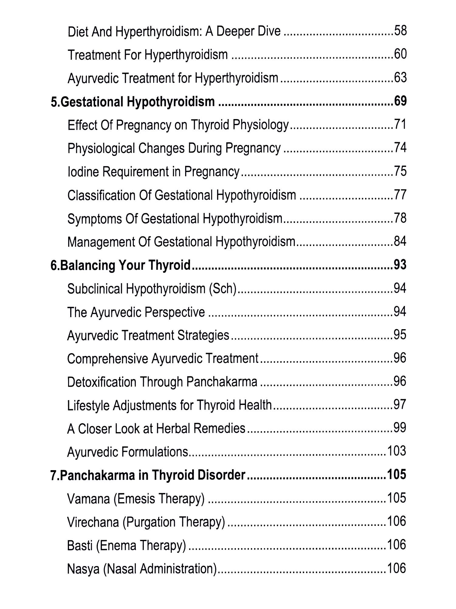 The thyroid gland, a small yet powerful organ located in the neck, plays a crucial role in maintaining the body's metabolism, energy levels, and overall well-being. Despite its significance, thyroid disorders have become alarmingly common in modern times, often linked to stress, environmental toxins, poor dietary habits, and lifestyle imbalances. For many, the diagnosis of a thyroid condition can feel overwhelming, leading to a lifetime of dependence on medications or Invasive procedures. However, there exists an ancient, time-tested path that can offer hope, healing, and sustainable solutions - Ayurveda. 'Healing the Thyroid Naturally' is a transformative guide that bridges the timeless principles of Ayurveda with the needs of the modern individual. This book goes beyond conventional approaches to thyroid health, inviting readers to explore the root causes of their imbalances and empowering them to embrace natural, holistic methods for restoration. It is a reminder that true healing is not just about addressing symptoms but about nurturing the body, mind, and spirit as an integrated whole. The ancient science of Ayurveda teaches us that every individual is unique, governed by their distinct constitution, or prakriti, which is determined by the interplay of the three doshas-vata, pitta, and kapha. This personalized approach to health lies at the heart of Ayurveda's effectiveness in managing thyroid disorders. Through this book, readers will discover how imbalances in these doshas manifest in the thyroid and learn how to harmonize their body's natural rhythms through diet, herbal remedies, detoxification, yoga, meditation, and lifestyle changes. The all authors have skilfully distilled complex Ayurvedic concepts into practical insights, making this book accessible to both beginners and seasoned practitioners.