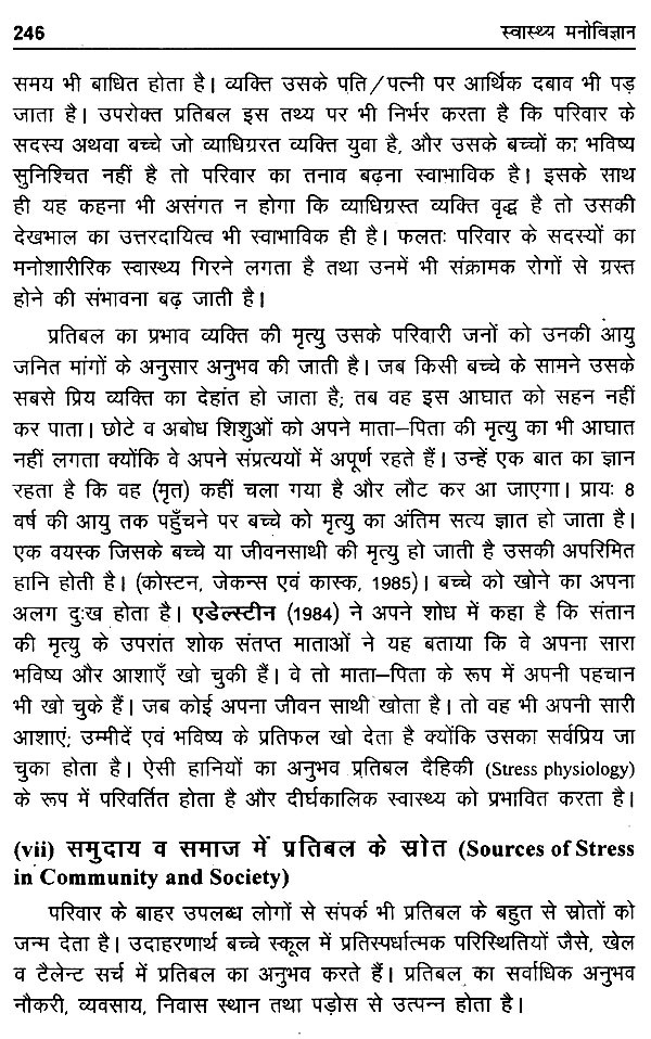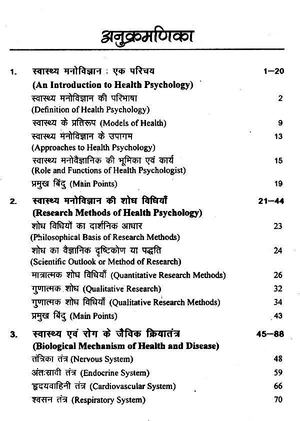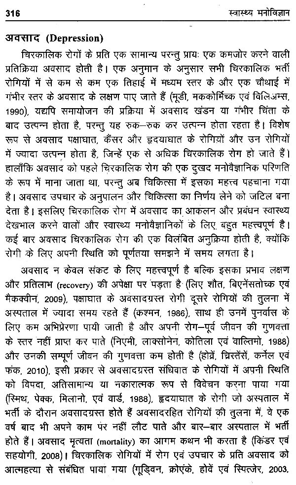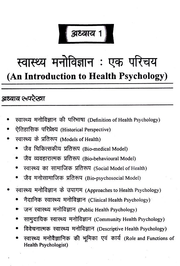 मानव जीवन के लिए उसका मनोशारीरिक रूप से स्वस्थ्य होना आवश्यक है, क्योंकि स्वस्थ्य शरीर में ही स्वस्थ्य मस्तिष्क का निवास होता है। यद्यपि मानव के सफल जीवन यापन हेतु मनोशारीरिक स्वास्थ्य का उत्तम होना आवश्यक है, परन्तु स्वास्थ्य के अनेक अवरोधक हैं जो न केवल व्यक्ति में निहित हैं अपितु बाह्य परिस्थितियों के माध्यम से भी व्यक्ति के स्वास्थ्य को प्रभावित करते हैं। इस परिस्थिति में व्यक्ति उन नियामकों की शरण में जाता है. जो उसके स्वास्थ्य को प्रोन्नत करके सकारात्मकता का संचार करते हैं। भारतवर्ष में स्वास्थ्य सेवाओं तथा मानसिक स्वास्थ्य उन्नयन हेतु मनोवैज्ञानिकों की सापेक्षिक कमी है। अतः भारत वर्ष में उन नीतियों का निर्माण एवम् उनके अनुप्रयोग की नितांत आवश्यकता है, जो व्यक्ति के स्वास्थ्य स्तर की मात्रा में वृद्धि कर सकें। प्रस्तुत पुस्तक का यही सार है और हमें यह विश्वास है कि यह पुस्तक न केवल स्वास्थ्य मनोविज्ञान के ज्ञान की वृद्धि में सहायक होगी, अपितु स्वास्थ्य मनोविज्ञान के साहित्य के मध्य मील का पत्थर होगी।