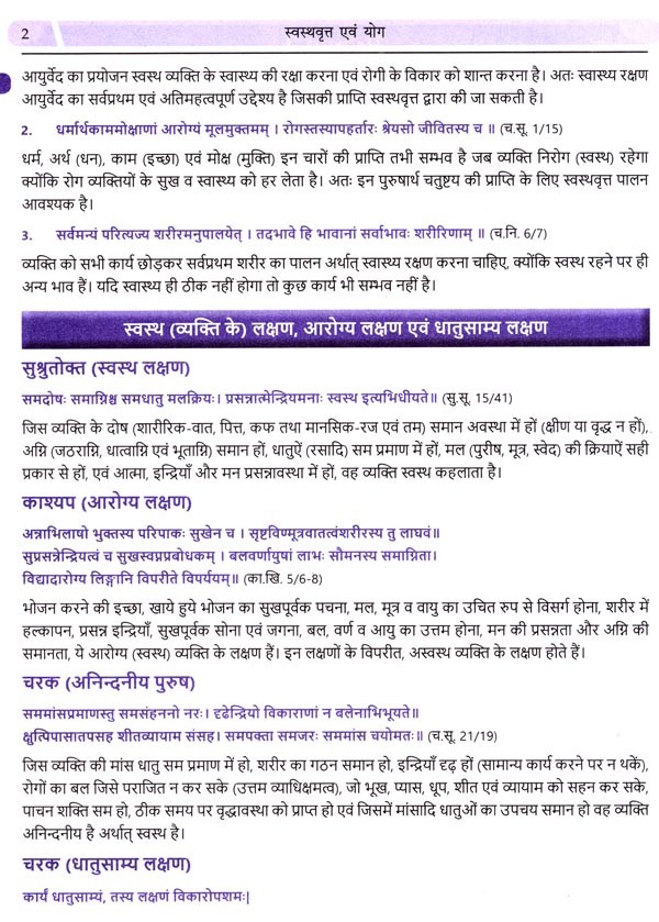 प्राण-एषणा मानव की सबसे पहली इच्छा है जो कि आरोग्य के बिना संभव नहीं है। आचार्यों ने पुरुषार्थचतुष्टय (धर्म-अर्थ-काम-मोक्ष) के लिए भी आरोग्य को ही मूल माना है। आरोग्य प्राप्ति के लिए हजारों वर्ष पूर्व ही हमारे ऋषि-मुनियों ने आयुर्वेद के ज्ञान को विभिन्न संहिताओं के रूप में लिपिबद्ध किया है। आयुर्वेद शास्त्र का प्रथम प्रयोजन ही मानव के स्वास्थ्य की रक्षा करना है जिसका विस्तृत संकलन स्वस्थवृत्त एवं योग' नाम की इस पुस्तक में लिपिबद्ध है।