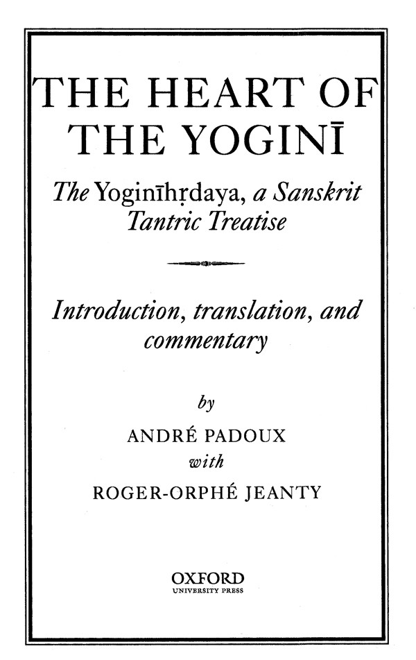 THIS BOOK ORIGINATES in a French translation of the Yoginthrdaya from Sanskrit by André Padoux, published in 1994 in Paris by the Collège de France. It was printed by Editions de Boccard as an annotated translation with transliterated Sanskrit of the three chapters of the Yoginthrdaya and of its commentary by Amytänanda, meant for an academic readership.