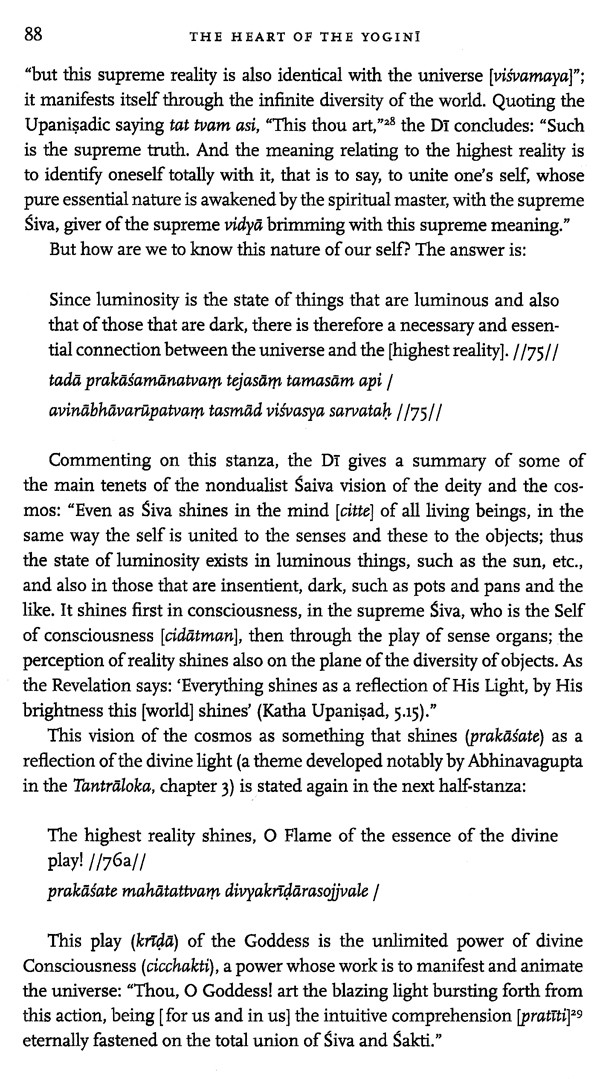 IN SPITE OF its modest size, the Yoginthrdaya (abbreviated as YH hereafter), whose title may be translated as "The Heart of the Yogini," rates among the principal works of Tantric Hinduism. For the lay reader who is not a scholar, this text may be surprising or disconcerting because of its language, its obscu- rities, and its challenging concepts. We have made every effort in our com- ments and annotations to clarify these difficulties in the text and have used extensively the commentary by Amītānanda called the Dipika ("The Lamp"). Some help to the reader would first consist in placing the YH in its context, which is Tantric Hinduism, the world of Hindu Tantra. This, naturally, cannot be done satisfactorily within the limits of this introduc- tion. A few points, however, may be made to situate the YH in the historical development of Indian Hindu culture and, in that culture, within the Tantric phenomenon.