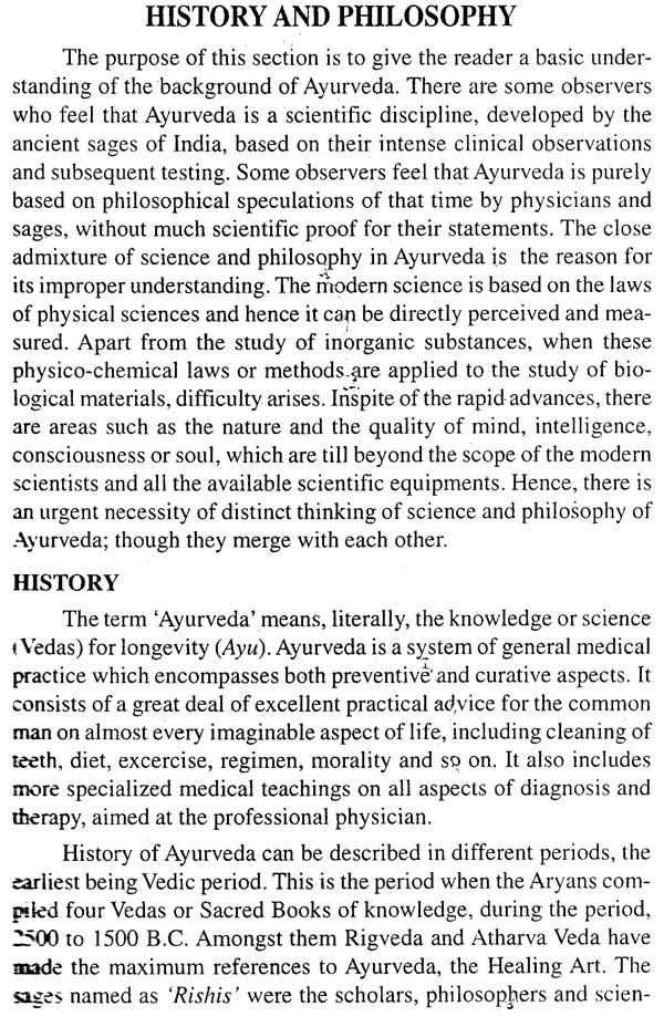 Ayurveda is the science of longevity. It is one of the most ancient medical sciences of the world. Vedas, the richest heritage of India, is the oldest recorded wisdom on the earth. Ayurveda is considered as the part of one of the four vedas-Atharvaveda. Its very basis is the spiritual knowledge of the ancient sages (rishis) of India and the cosmic consciousness in which they dwelt. The science has passed through the filters of thousands of years and the experience of millions of patients. The strength of Ayurveda lies in its broad, all-encompassing view of the dynamic interrelationship between the man and his environment. Ayurveda thinks, views and treats man as a whole, than treating his just the disease. Mere comparative study of Ayurveda and contemporary western modern medical sciences will be dismal. The transcultural enrichment will be possible only when the Ayurvedic concepts are properly interpreted in the light of modern science.