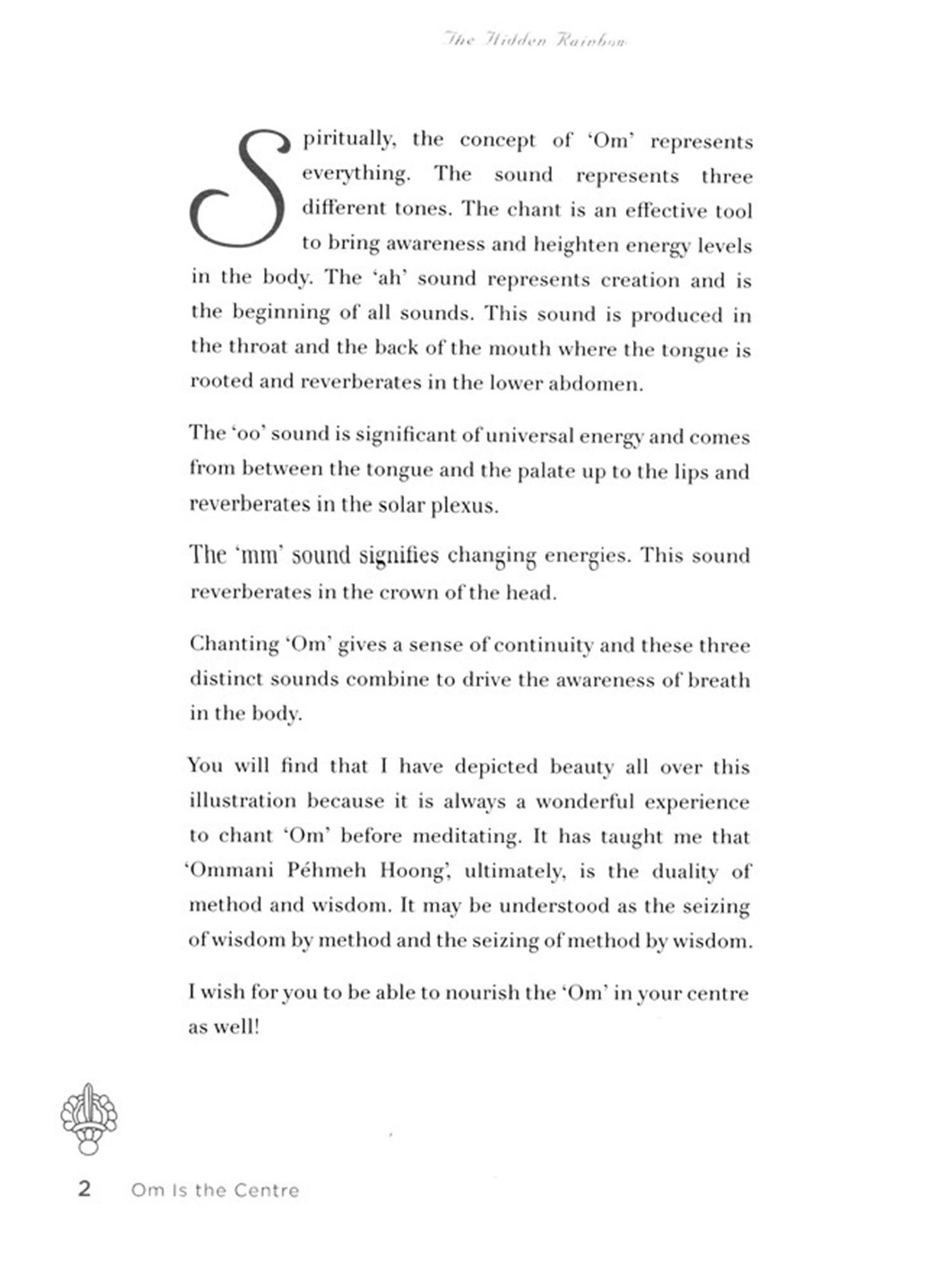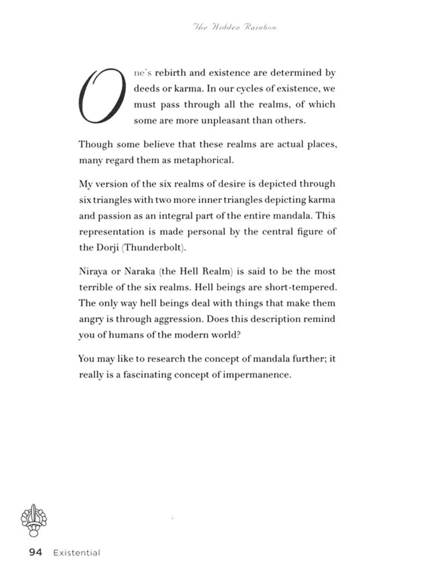 Art is timeless and eternal, in that it is an expression of the self through symbolism. Though these symbols used in The Hidden Rainbow may be Buddhist in their origins, it is truly for all those who believe in the divine, the humanity and the innate goodness that is inherent in every single being.