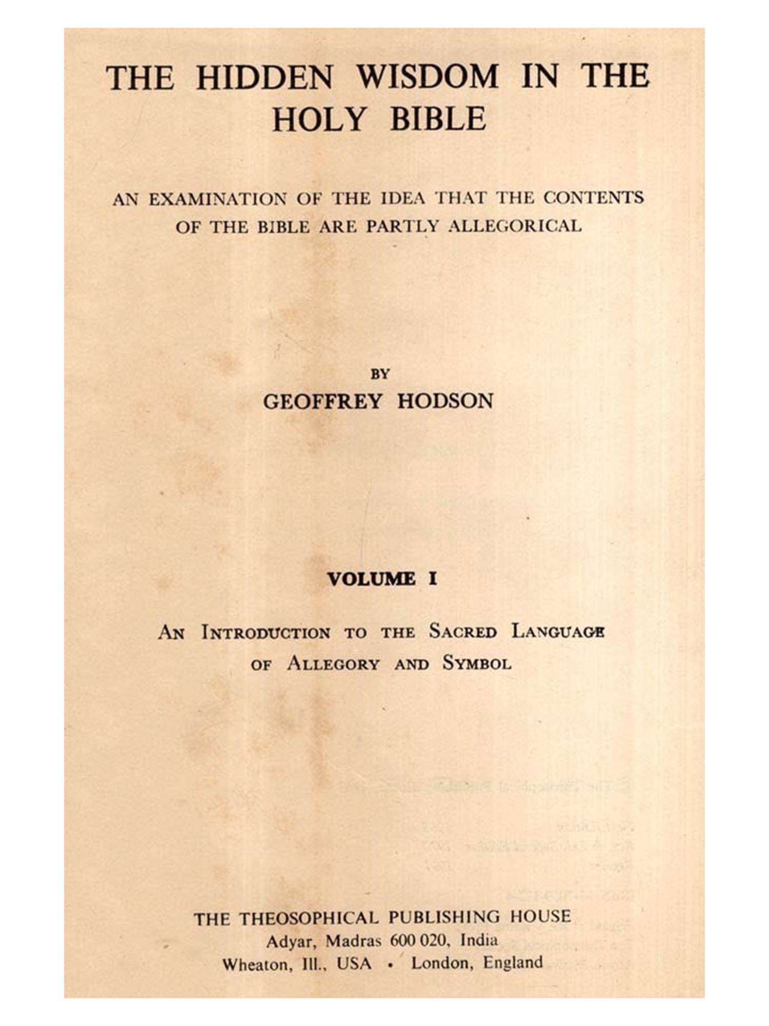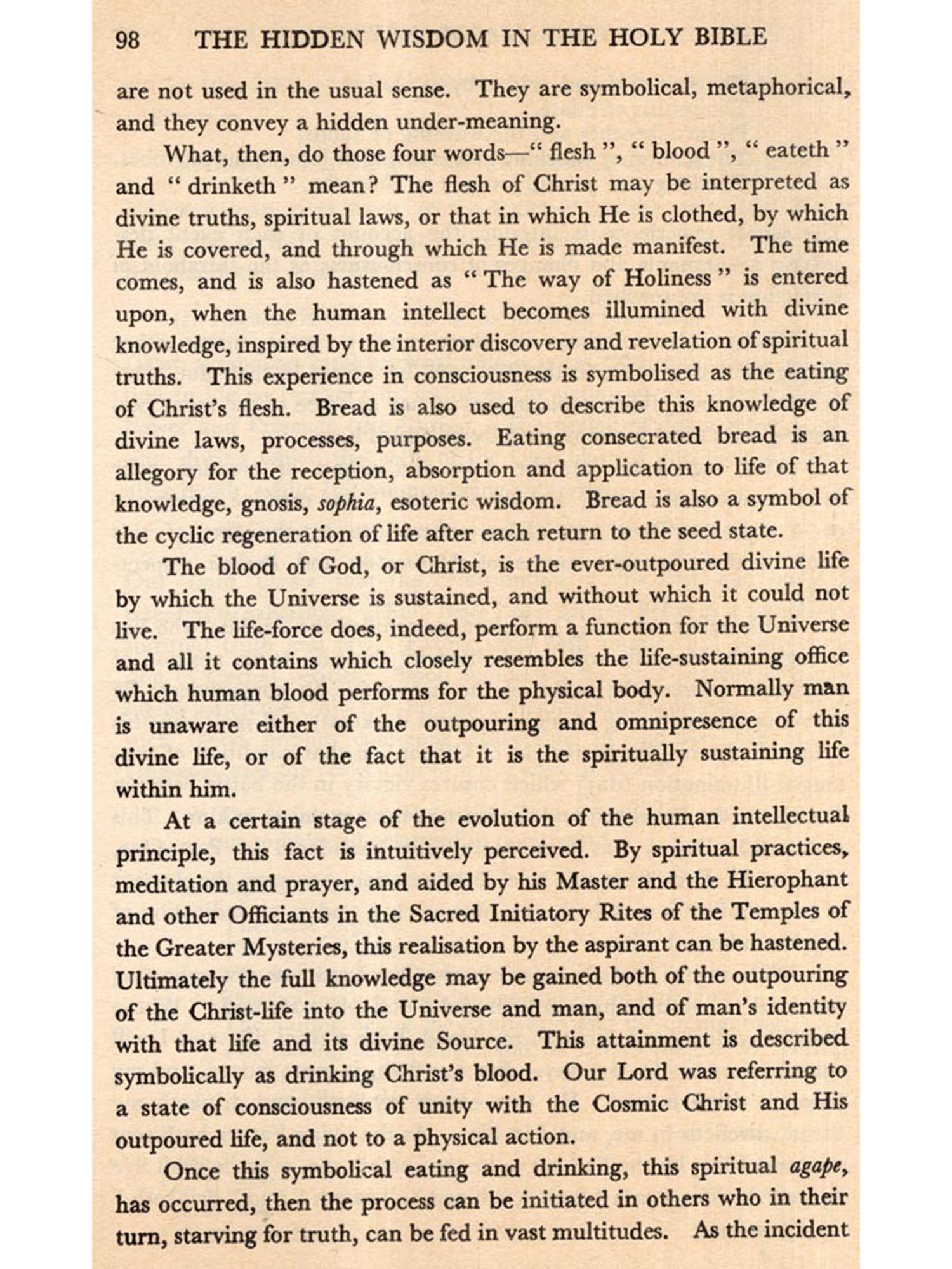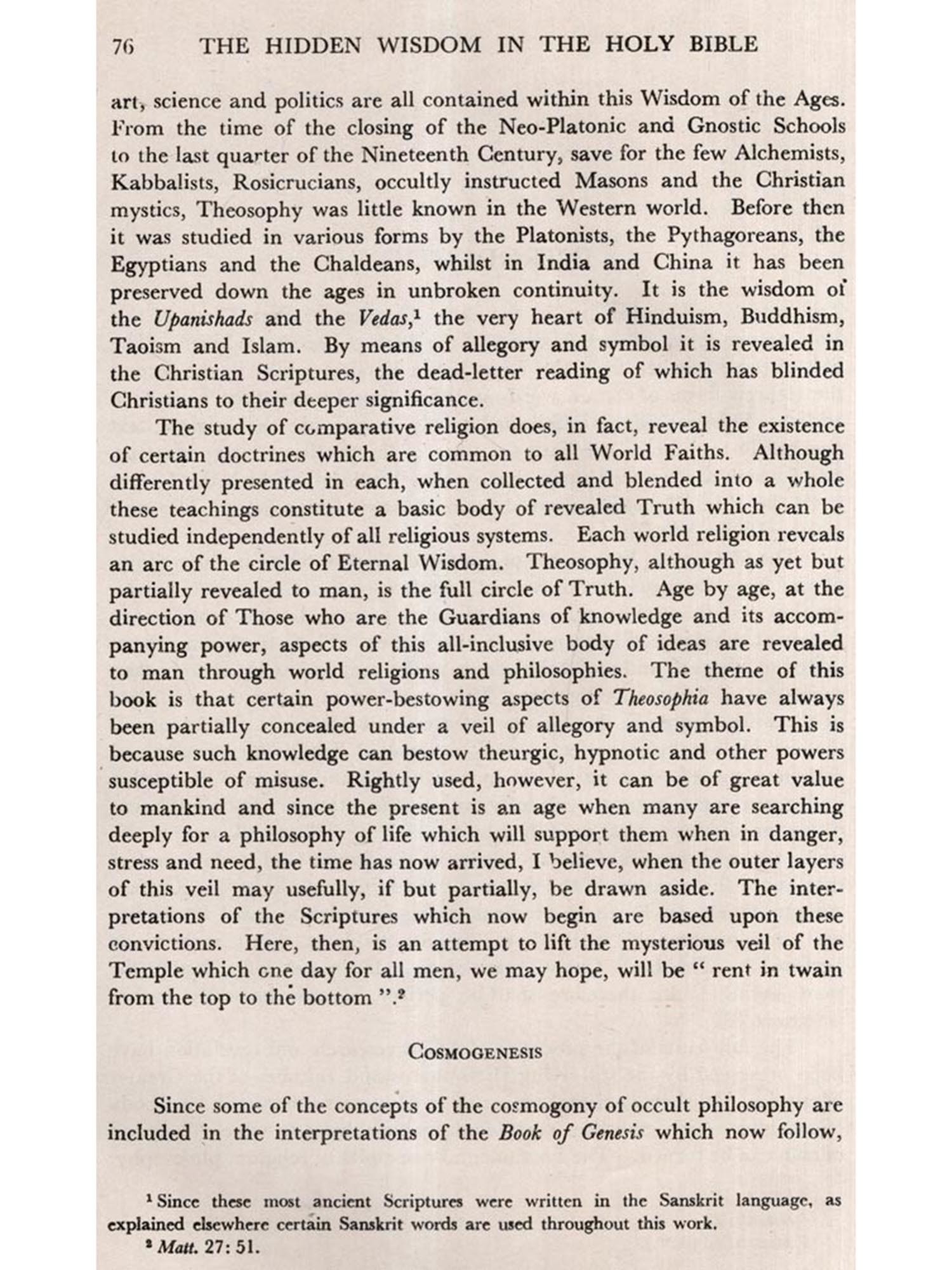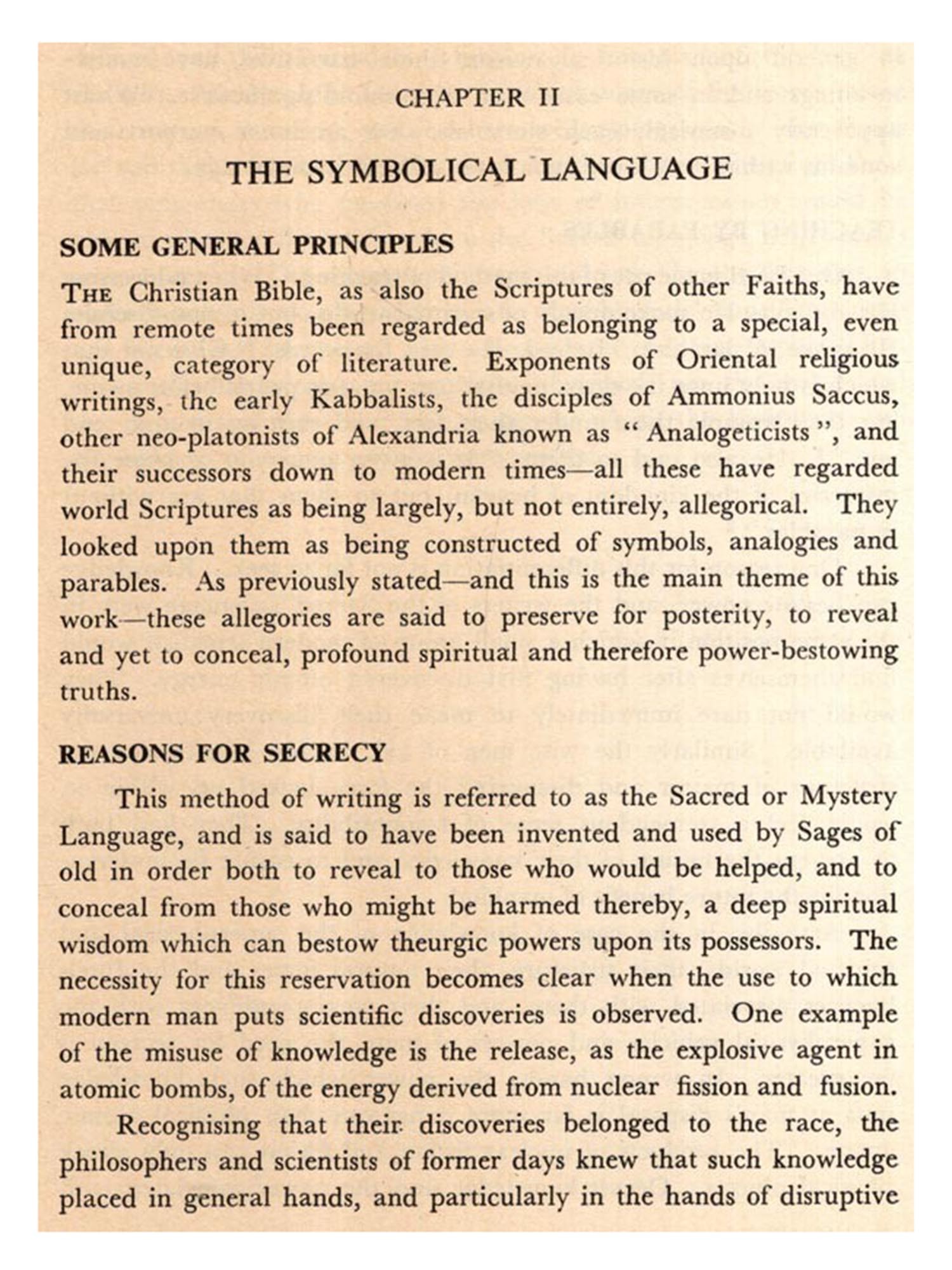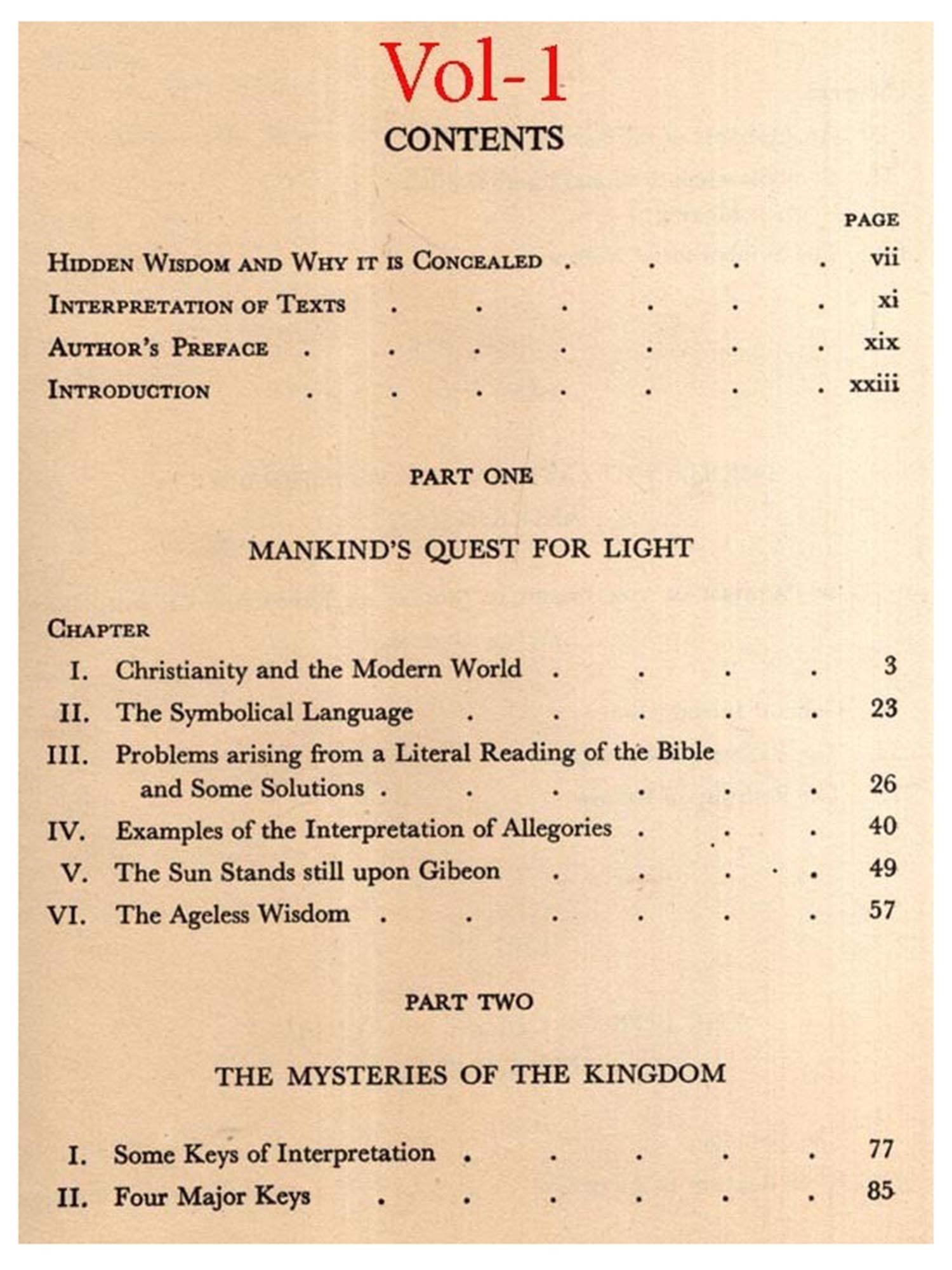 A LARGE number of writers in both ancient and modern times have affirmed that spiritual wisdom and a practical philosophy of life have always been available to mankind and that, however deeply hidden, they are to be found in the Scriptures of the great World Faiths. Man, they state, has but to remove the concealing veils of allegory, parable and symbol to discover a knowledge which can bestow serenity of mind and heart and lead to spiritual illumination.
