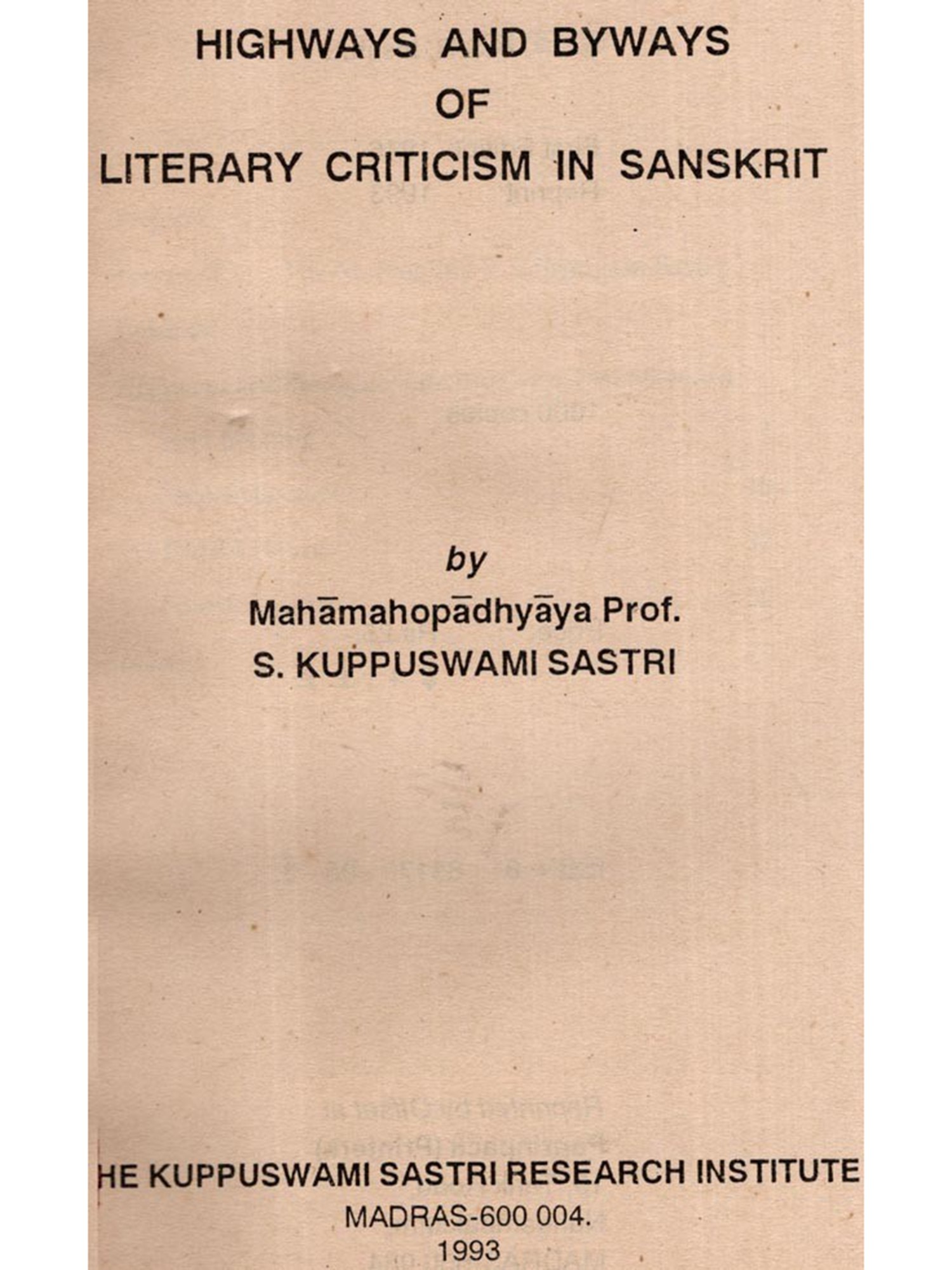 Highways and Byways of Literary Criticism in Sanskrit (An Old and Rare Book)