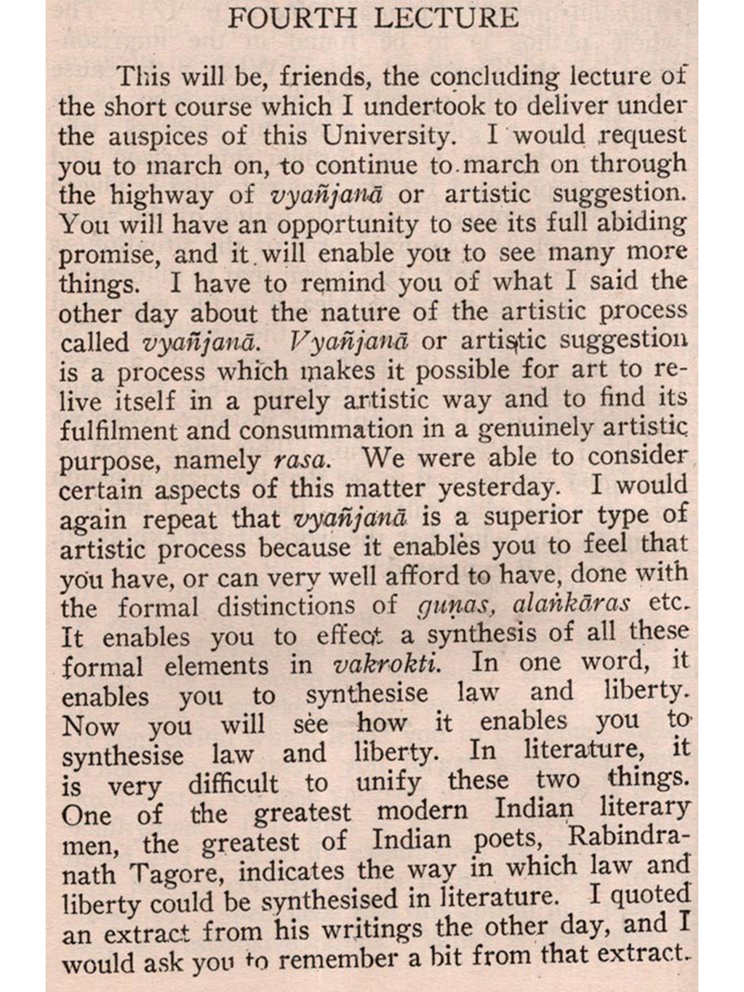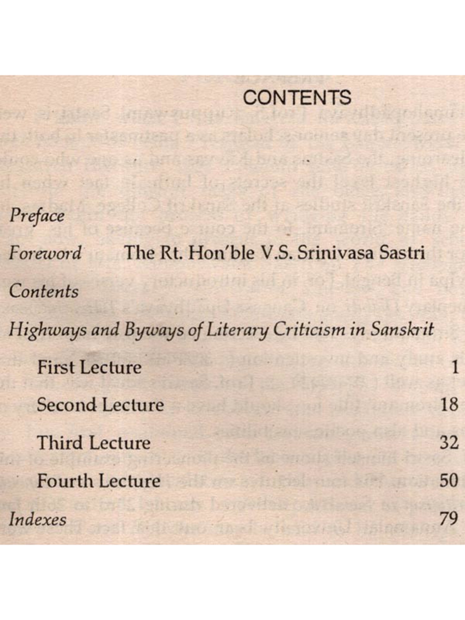 I knew when I was flattered into acceptance of the high honour of being President of the Kuppuswami Sastri Research Institute, that I should soon be called upon to perform the difficult tasks of the office, and that then would begin the process of wringing the hands. Here I am now, having to present to the world of scholars a booklet of Mm. Kuppuswami Sastri on The Highways and Byways of Literary Criticism in Sanskrit, and not quite knowing how. The late Mahamahopadhyaya was master of both branches of learning, the Sastras and the Kavyas, and could teach on the highest level the secrets of both. In fact, the great classic on the topic of dhvani, which could be found only in obscure and inaccurate texts, was by him first examined with care and given to the world in a correct edition. Of the labour that he bestowed on the rescue and elucidation of this authoritative treafise and of kindred labours in the department of poetics, The Highways and Byways may be said to be the ripe fruit. It surveys with the minute and far-going vision of a master all the problems that beset the path of a critic who is bent on reaching the citadel of poetic excellence. How lucky he must be to be conducted in this exalted quest by a guide of keen insight and rare renown! And the way he takes you is not monotonous or thorny, but divagates into twenty different branches, giving picturesque views and glorious examples of the noble art of poesy. To the young adventurer who would learn how to appraise and enjoy the work of a real kavi, I would say with confidence: "Enter here, you shall have reward you never dreamt of."