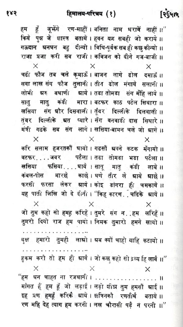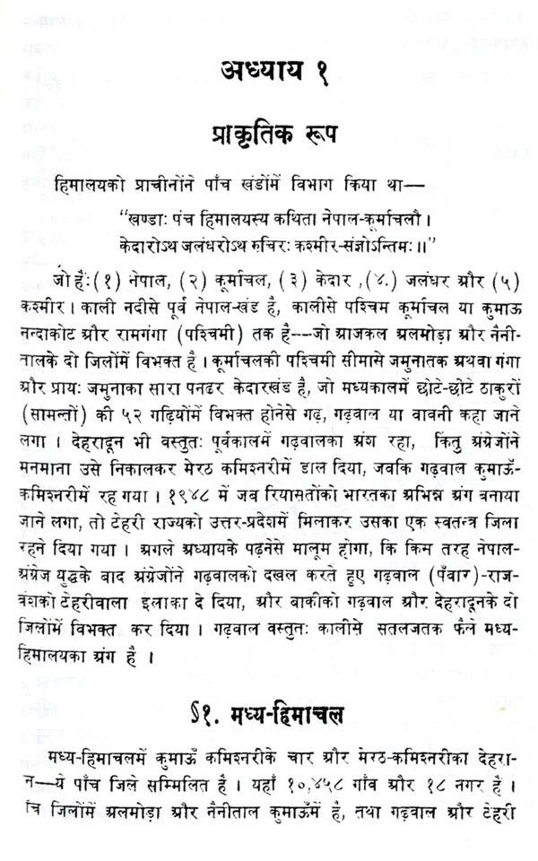 हिमालयके पांचों खंडोंकी सीमायें प्राचीनकालमें एक जगह नहीं रही होंगी, अह तो निश्चय है, किन्तु पुरानी सीमायें अधिकतर स्थानीय मावाबों या संस्कृ तियोंके आधारपर हुआा करती थी, इसीलिए उनका परिचय पाना दिलचस्पीसे खाली नहीं होगा। मेरी समझमें नेपाल और कूर्माचलकी पुरानी सीमा करनाली और गंडकीके पनवरोंकी सीमा (जलविभाजक) थी, इसीलिए नेपालके पूरबिया और कुमाई ब्राह्मणोंके मूलस्थान इसी पनकरके वारपार थे। नेपालके विद्वान आज भी कालीगंडकीके पश्चिम कुमाई ब्राह्राणोंकी भूमि मानते हैं। कूर्माचल (कुमाऊँ) और केदार (गढ़वाल) की सीमा शारदा (महाकाली) और गंगाका पनडर है। बधान शताब्दियों तक कुमाऊनियों और गढ़वालियोंके झगड़ेका कारण बना रहा। केदार बौर जलत्वरकी सीमा आजकल देखनेसे जमुना या उसकी पश्चिमी शाखा टोस (तमसा) मानी जा सकती है, यद्यपि जमुनापारी जीनपुर और जौनसारके लोग अपनी भावा और रीति-रवाजसे गढ़वालियों और हिमाचल प्रदेशियोंसे भिन्नता रखते हैं। जौनपुर, जौनसारका मेल रवाई (ऊपरी जमुना) से अधिक खाता है। जमुनाकी उपत्यकाके लोगोंको प्राचीनकालमे, हो सकता है, केदारके भीतर ही माना जाता हो। आज भी बदरी, केदार और गंगोत्रीकी तरह जमुनोत्री केदारखंडके भीतर है।