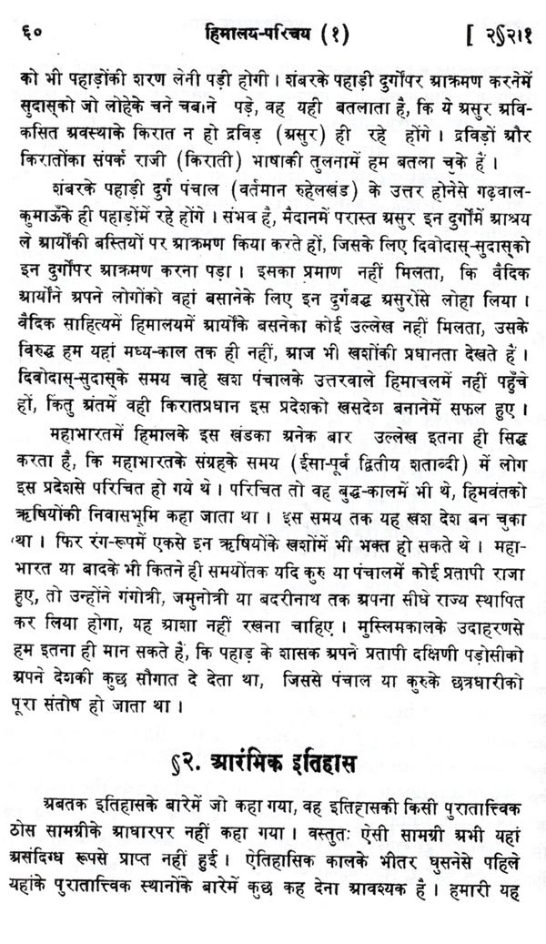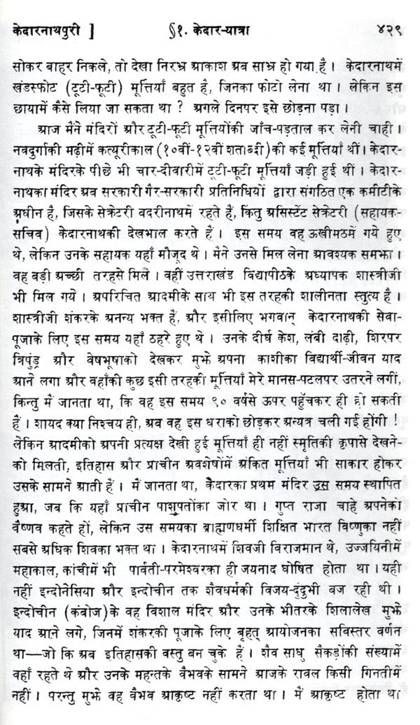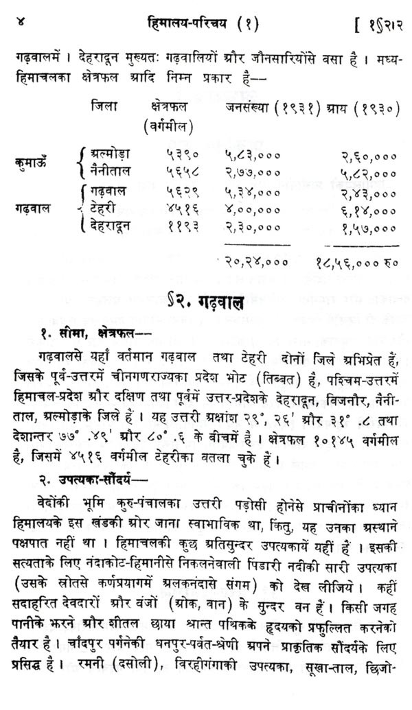 हिमालय किसको अपनी घोर भाकृष्ट नहीं करता? मेरा तो उसके प्रति माकर्षण १९१० ई०से ही इमा, भौर पिछले तैतालीस वर्षोंमें उसके साथ इतना पनिष्ट संबंध हुआ, कि "स्वान्तः मुखाय" भी मुझे लेखनी चलानेकी जरूरत महसूस होने लगी। लिखनेका मतलव ही है, और अधिक परिचय प्राप्त करना। पहले मेरा ख्याल नहीं था, कि में "हिमालय-परिचय' पर कलम चलाऊँगा। यदि वैसा होता, तो इस ग्रंथ (गढ़वाल) को "हिमालय-परिचय (३) गढ़वाल" नाम देना पड़ता, क्योंकि तिब्बत-संबवी पुस्तकोंको छोड़ देनेपर "किन्नर देशमें" इस विषयकी मेरी पहली पुस्तक है, और दूसरी "दोजिलिङ्-परिचय"। हिमालयके नेपाल, कूर्माचल कुमाऊं, केदार (गढ़वाल), जलन्बर (शिमला-कांगड़ा या हिमाचल प्रदेश), और कश्मीर ये पांच खंड संस्कृतके पुराने ग्रंथोंमें माने गये हैं। 'कुमाऊं" लिख लेनेपर मेरे मनमें स्याल आया, कि "हिमालय-परिचय" लिख डालना चाहिए। यह प्रसन्नताकी बात है, कि नेपाल, कुमाऊं और गढ़वाल भोनों क्रमशः "हिमालय-परिचय" (३), (२), (१) के रूपमें लिखकर छप या प्रेसमें जा चुके। "किश्नर देशमें" को जलन्धर (हिमालय प्रदेश) का पूरा परिचय नहीं कहा जा सकता, तो भी उसके सबसे अधिक अल्प-परिचित प्रदेश- सतलजकी ऊपरी उपत्यका के बारेमें उसमें काफी लिखा जा चुका है, और यवि हो सका भो अगले संस्करणमें उसे "हिमालय-परिचय (४) - हिमाचलप्रदेश के नामसे रिर्वाद्धत किया जा सकता है। तब दार्जिलिंगसे चम्बा (तिस्तासे चनाब) कके हिमालयका परिचय पाठकोंके सामने आ जायेगा। साठ सालकी उमरमें किसी कामके लिए संकल्प करना अच्छा नहीं है। उसे तो सिर्फ हाथमें लिया जा सकता है। इसी ख्यालसे "हिमालय-परिचय (५) कश्मीर के बारेमें में मंकल्प नहीं करता। इस पांचवें खंडको मेरी लदाख-यात्रा" में स्पष्咏 किया गया है; किन्तु, कश्मीर के बारेमें विस्तृत लिखनेके लिए एक बार फिर बहां-को यात्रा (चौथी) करनी होगी, जिसके लिए मेरा स्वास्थ्य भौर शरीर भ्राशा महीं देता।