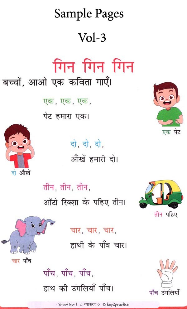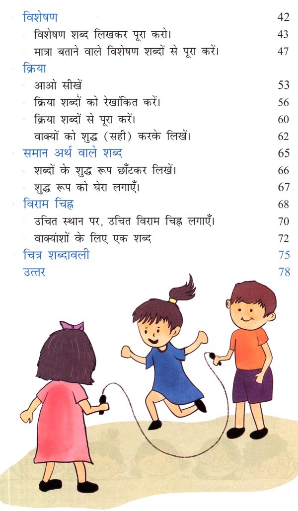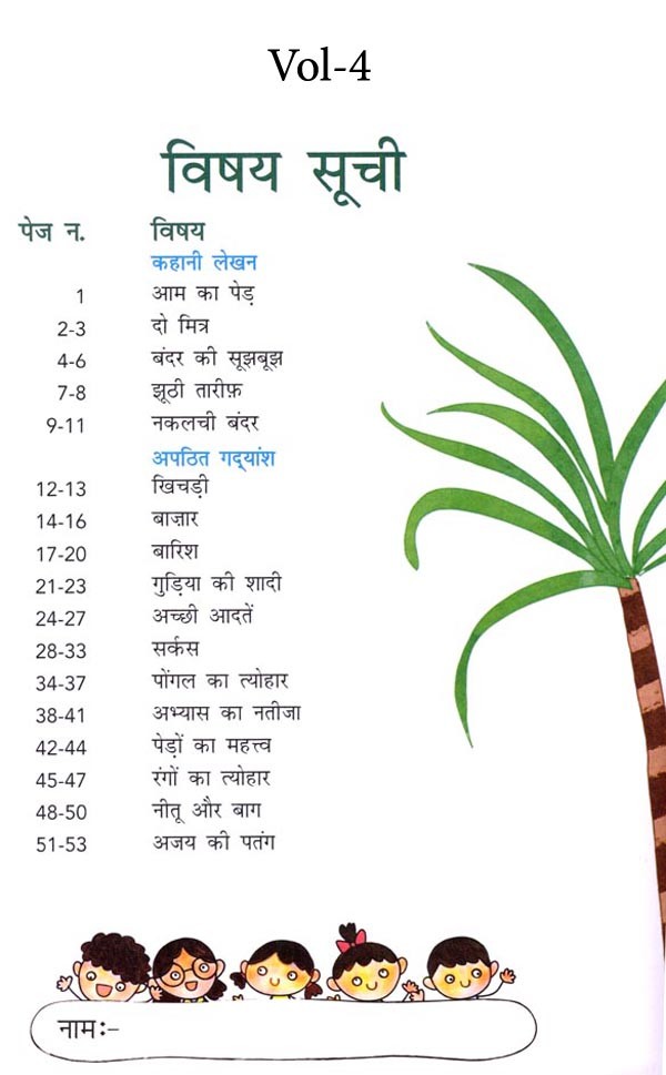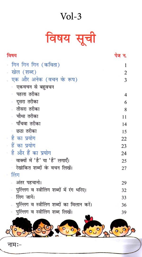 Vol-1: Practice Play Perform (Maatraen) Vol-2: Vipareet Shabd, Sarvanaam, Sangya) Vol-3: Vachan, Ling Visheshan, Kriya) Vol-4: (Kahaanee Lekhan, Apthitat Gadyaansh)