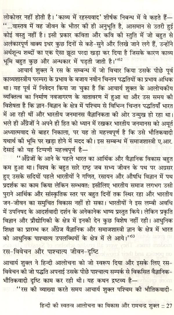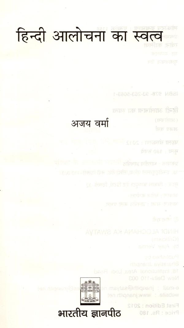 हिन्दी आलोचना का स्वत्व हिन्दी आलोचना को लेकर अनेक प्रकार की बातें कही जा रही हैं जिनका निष्कर्ष यह निकलता है कि वह संकट के दौर से गुजर रही है। संकट है, पर यह संकट आलोचना का कम, युग के दबावों का ज्यादा है। यह संकट धारणाओं और विमर्शों के टकरावों को संकट है, मगर इस संकट के बावजूद आज हिन्दी आलोचना देशीयता और वैश्विकता के बीच संवाद बनाते हुए अपनी एक खुद की पहचान रखती है। निर्विवाद रूप से इसमें आचार्य रामचन्द्र शुक्ल की बड़ी महत्त्वपूर्ण भूमिका रही है, भले ही उनके निष्कर्षों को लेकर विवाद होते रहे हैं और भारतीय स्वतन्त्रता के बाद की आलोचना शिविरों में बँट गयी, मगर इससे आचार्य शुक्ल का ऐतिहासिक महत्त्व कम नहीं होता और न ही इससे यह समझा जाय कि आज हिन्दी आलोचना कुछ हीन स्थिति में है। आचार्य शुक्ल ने पहली बार हिन्दी आलोचना को संस्कृत काव्यशास्त्र और पाश्चात्य आलोचना, दोनों के प्रभावों से मुक्त करके उसकी एक निजी पहचान क़ायम की। अजय वर्मा की यह पुस्तक हिन्दी आलोचना की इसी निजी पहचान की तलाश आज के सन्दर्भ में करती है। इसके लिए इन्होंने इसके पूरे ऐतिहासिक विकास-क्रम का विश्लेषण करते हुए आज की धारणाओं और विमर्शों के टकराव के जटिल दौर में उसकी दशा और दिशा पर विचार किया है। लेखक इस पुस्तक में न सिर्फ ब्योरे प्रस्तुत करता है बल्कि पूरी पुस्तक में वह बहस करता दिखलाई देता है। हिन्दी आलोचना में विवाद के जितने भी पुराने और नये मुद्दे हैं, उन सबको वह प्रश्नों के दायरे में लाता है और आज के सन्दर्भ में उनकी प्रासंगिकता पर भी विचार करता है।