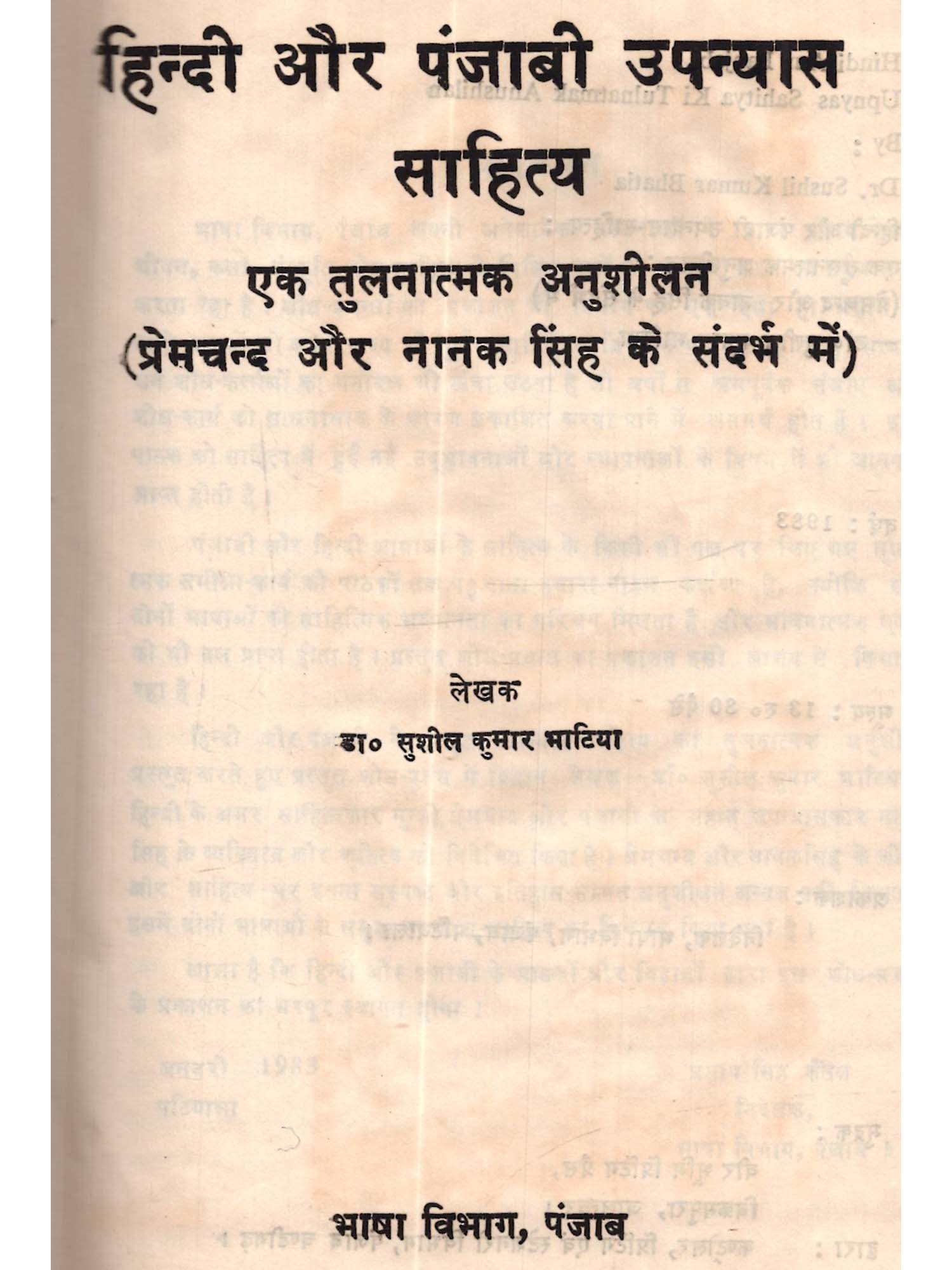 हिन्दी और पंजाबी उपन्यास साहित्य एक तुलनात्मक अनुशीलन (प्रेमचन्द और नानक सिंह के संदर्भ में): Hindi aur Panjabi Upnyas Sahitya Ki Tulnatmak Anushilan: Premchand aur Nanak Singh Ke Sandharv Mei (An Old and Rare Book)