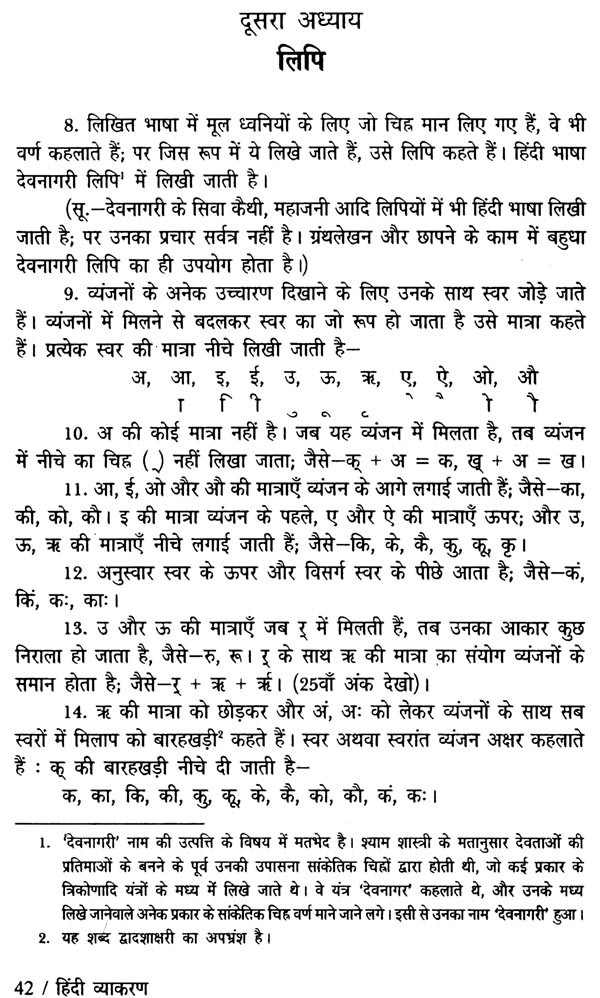 इस ग्रंथ की रचना में मैंने पूर्वोक्त दोनों व्याकरणों से यत्र-तत्र सहायता ली है और हिंदी व्याकरणों के आज तक छपे हुए हिंदी और अँगरेजी ग्रंथों का भी थोड़ा-बहुत उपयोग किया है। इन सब ग्रंथों की सूची पुस्तक के अंत में दी गई है। द्विवेदी जी लिखित 'हिंदी भाषा की उत्पत्ति' और ब्रिटिश विश्वकोष' के 'हिंदुस्तानी' नामक लेख के आधार पर, इस पुस्तक में, हिंदी की उत्पत्ति लिखी गई है। अरबी, फारसी शब्दों की व्युत्पत्ति के लिए मैं अधिकांश में राजा शिवप्रसाद कृत 'हिंदी व्याकरण' और प्लाट्स कृत 'हिंदुस्तानी ग्रामर' का ऋणी हूँ। काले कृत 'उच्च संस्कृत व्याकरण' से मैंने संस्कृत व्याकरण के अंश लिए हैं।