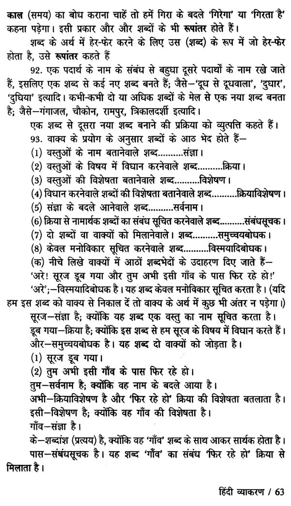 मेरा विचार था कि इस पुस्तक में मैं विशेषकर 'कारकों' और 'कालों' का विवेचन संस्कृत की शुद्ध प्रणाली के अनुसार करता; पर हिंदी में इन विषयों की रूढ़ि अँगरेजी के समागम से, अभी तक इतनी प्रबल है कि मुझे सहसा इस प्रकार का परिवर्तन करना उचित न जान पड़ा। हिंदी में व्याकरण का पठन-पाठन अभी बाल्यावस्था ही में है; इसलिए इस नई प्रणाली के कारण इस रूखे विषय के और भी रूखे हो जाने की आशंका थी। इसी कारण मैंने 'विभक्तियों' और 'आख्यानों' के बदले 'कारकों' और 'कालों' का नामोल्लेख तथा विचार किया है। यदि आवश्यकता जान पड़ेगी तो ये विषय किसी अगले संस्करण में परिवर्तन कर दिए जायेंगे। तब तक संभवतः विभक्तियों को मूल शब्दों में मिलाकर लिखने के विषय में कुछ सर्वसम्मत निश्चय हो जायगा।
