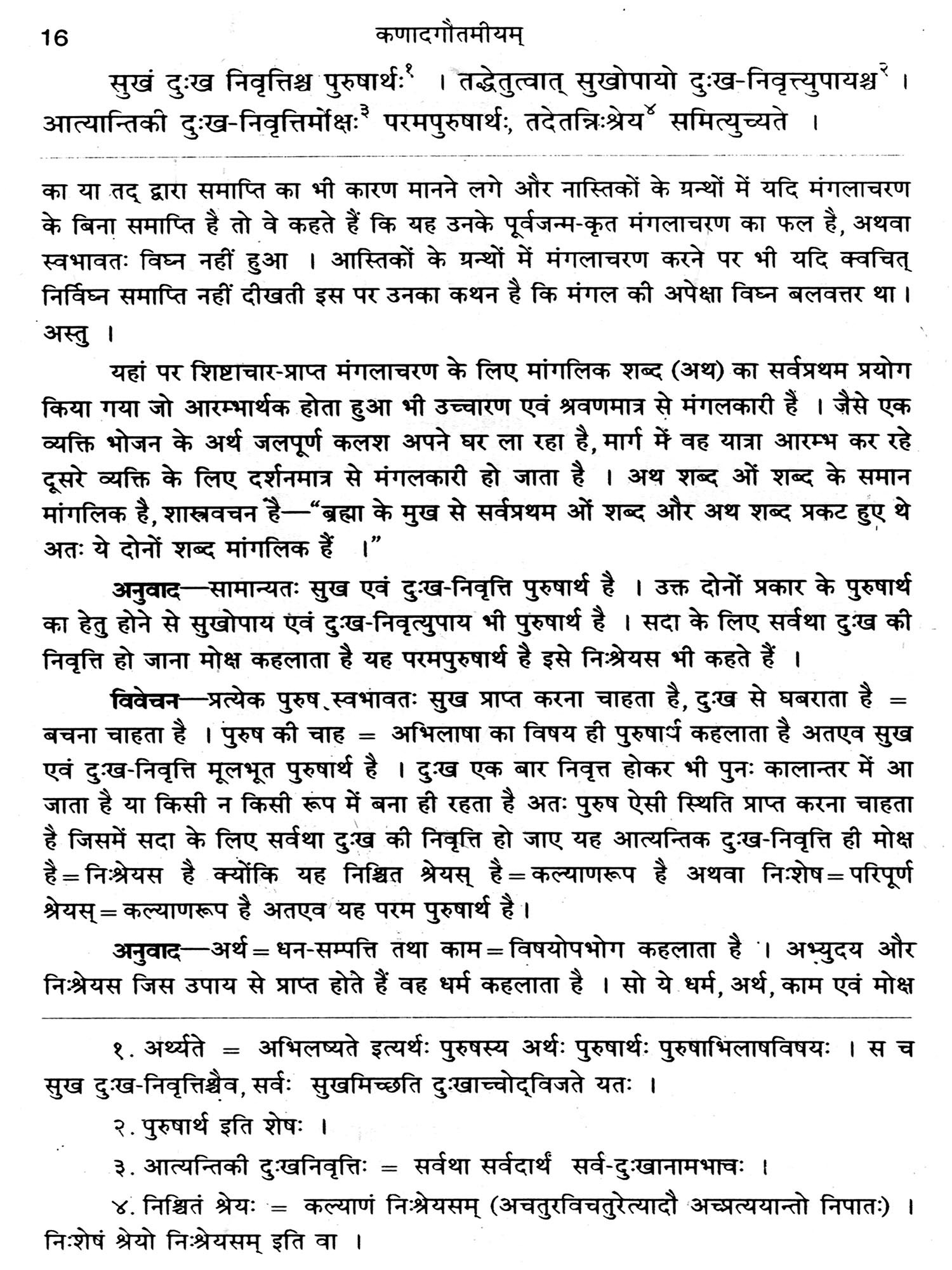 स्वाभाविकतया दुःख-पीड़ित मानव दुःखों से छुटकारा पाने के लिए विचार करता है-"ये दुःख कैसे दूर हों, सर्वदा अनुकूल-वेदनीय सुख की प्राप्ति कैसे हो। दुःख निवृत्ति एवं सुख की प्राप्ति ही मुख्य पुरुषार्थ है। पुरुषार्थ का अर्थ है पुरुष द्वारा अर्थनीय अर्थात् पुरुष की इच्छा का विषय। सुख प्राप्ति का उपाय तथा दुःख-निवृत्ति का उपाय भी पुरुषार्थ बन जाता है, पूर्वोक्त दोनों मुख्य पुरुषार्थों का हेतु होने से। अतः एव अर्थ और काम पुरुषार्थ कहलाते हैं, क्योंकि अर्थ धन सम्पत्ति से तथा काम विषयोपभोग से सुख की प्राप्ति और दुःख की निवृत्ति होती है। अर्थ एवं काम ही सर्व-साधारण पुरुषार्थ मान लिए जाते हैं।