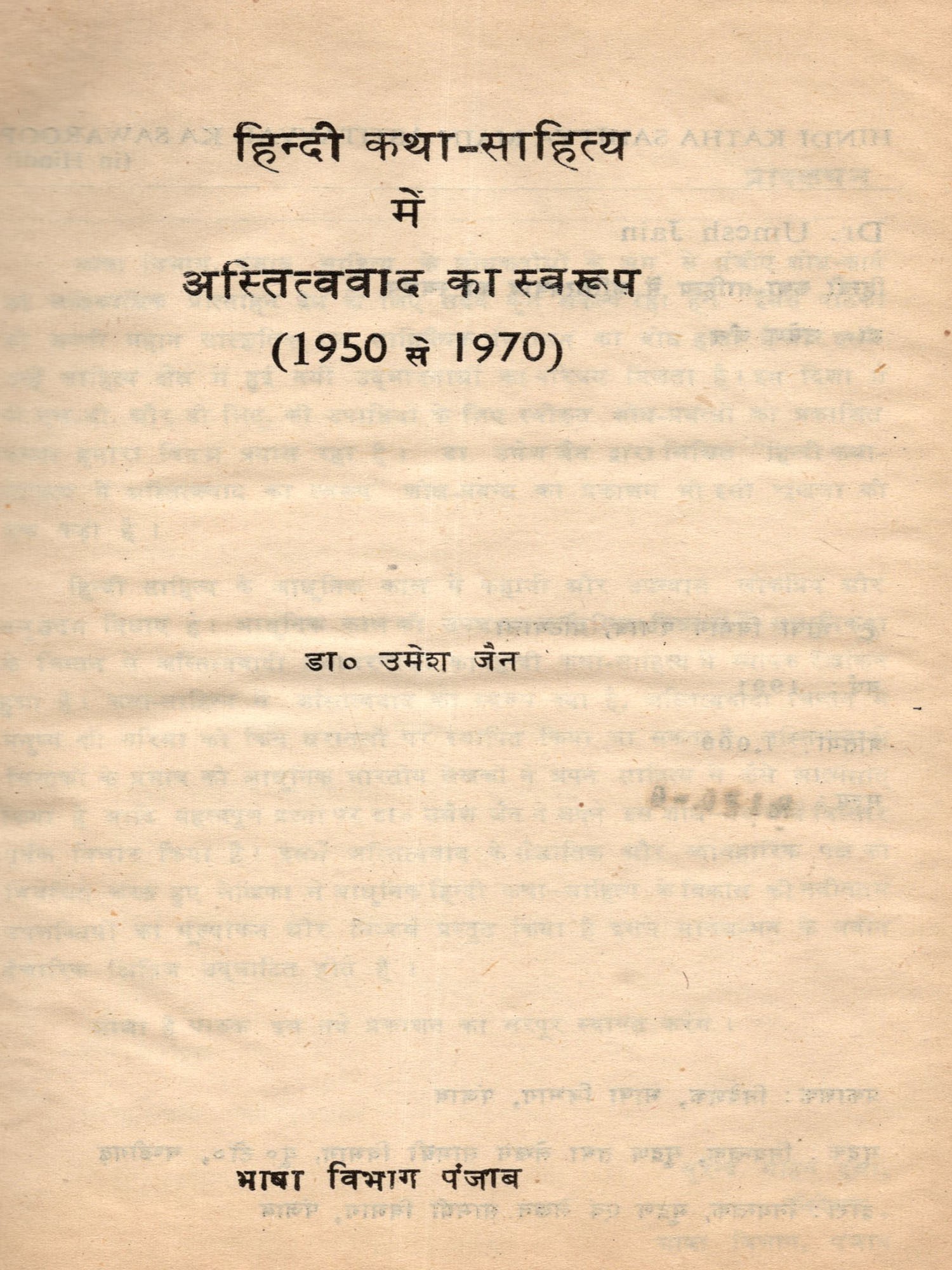 हिन्दी कथा-साहित्य में अस्तित्ववाद का स्वरूप: Hindi Katha Sahitya Mein Astitavvad Ka Sawaroop (An Old and Rare Book)