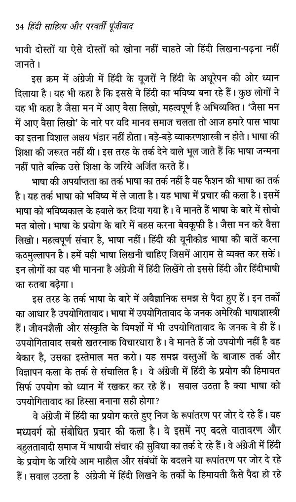 परवर्ती पूंजीवाद या यों कहें पूंजीवाद के संदर्भ में साहित्य को विश्लेषित करने की हिन्दी में परंपरा बहुत ही क्षीण है। कायदे से नए परिवेश और साहित्य को परवर्ती पूंजीवाद के परिप्रेक्ष्य में ही खोलकर देखा जाना चाहिए। परवर्ती पूंजीवाद की प्रवृत्तियों ने पत्रकारिता, साहित्यालोचना, साहित्य की अवधारणा आदि को गंभीरता से प्रभावित किया है। प्रस्तुत पुस्तक परवर्ती पूंजीवाद के परिप्रेक्ष्य से जुड़े पहलुओं की ओर ध्यान खींचती है।