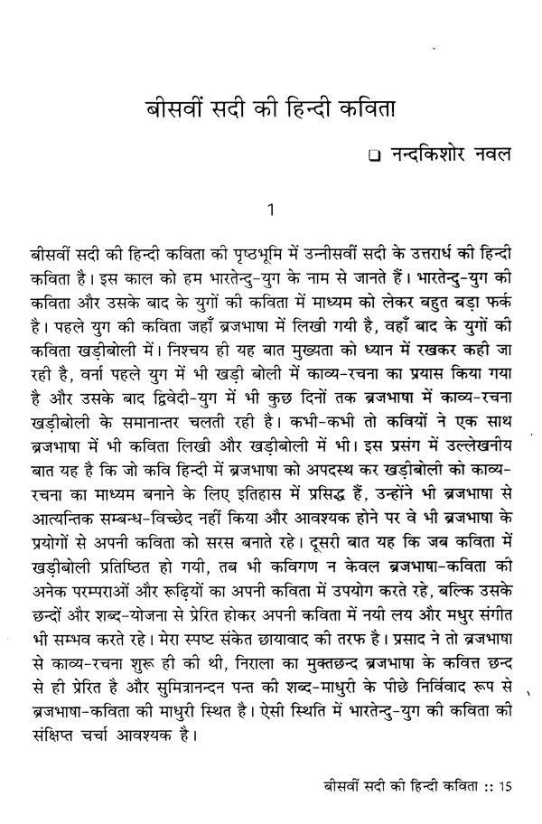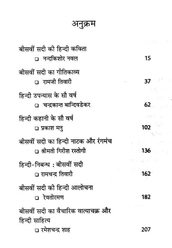 बीसवीं सदी अनेक दृष्टियों से उल्लेखनीय और महत्त्वपूर्ण रही है। इस सदी में जहाँ भारत में स्वाधीनता संघर्ष और स्वाधीनता प्राप्ति जैसी महान घटनाएँ हुई, वहीं संसार के इतिहास में ऐसी अनेक हलचले हुई जो आगे भी मानव-नियति को प्रभावित करेंगी। इस सदी में दो विश्वयुद्ध हुए, शीतयुद्ध के बादल मंडराये, विश्व शान्ति की चिन्ता गहरी हुई। विज्ञान और तकनीकी इसी सदी में चरम सीमा पर पहुँची, भूमण्डलीकरण, आर्थिक उदारीकरण और सूचना क्रान्ति की आँधी आयी। आधुनिकता, उत्तर-आधुनिकता और उत्तर-संरचनावाद जैसे बौद्धिक विमर्श हुए। विश्व की और देश की इन तमाम घटनाओं, विमर्शों, विचारधाराओं का असर हिन्दी साहित्य पर पड़ा। इस दौर में यदि अनेक रचना-आन्दोलन जनमे, विकसित हुए और परिणति पर पहुँचे तो ऐसे भी दौर आये जिनमें कुछ आन्दोलन अकाल मृत्यु को प्राप्त हुए। इन्हीं सब प्रश्नों को लेकर प्रस्तुत पुस्तक में अधिकारी विद्वानों द्वारा विभिन्न विधाओं के माध्यम से बीसवीं सदी के हिन्दी साहित्य की अत्यन्त सारगर्भित विवेचना की गयी है। आशा है, अपने समय और साहित्य की हलचलों से परिचित होने में यह पुस्तक आम पाठकों, विद्यार्थियों, शोधछात्रों और प्रबुद्धजनों की सहायता करेगी। इस महत्त्वपूर्ण सुसम्पादित पुस्तक को प्रकाशित करते हुए भारतीय ज्ञानपीठ को प्रसन्नता है।