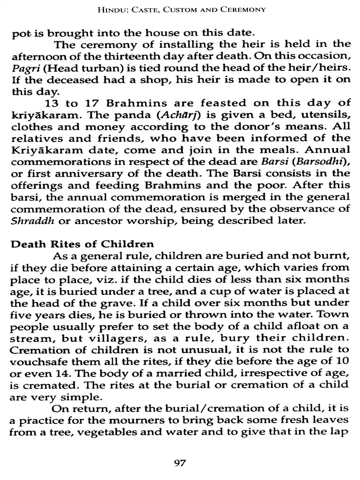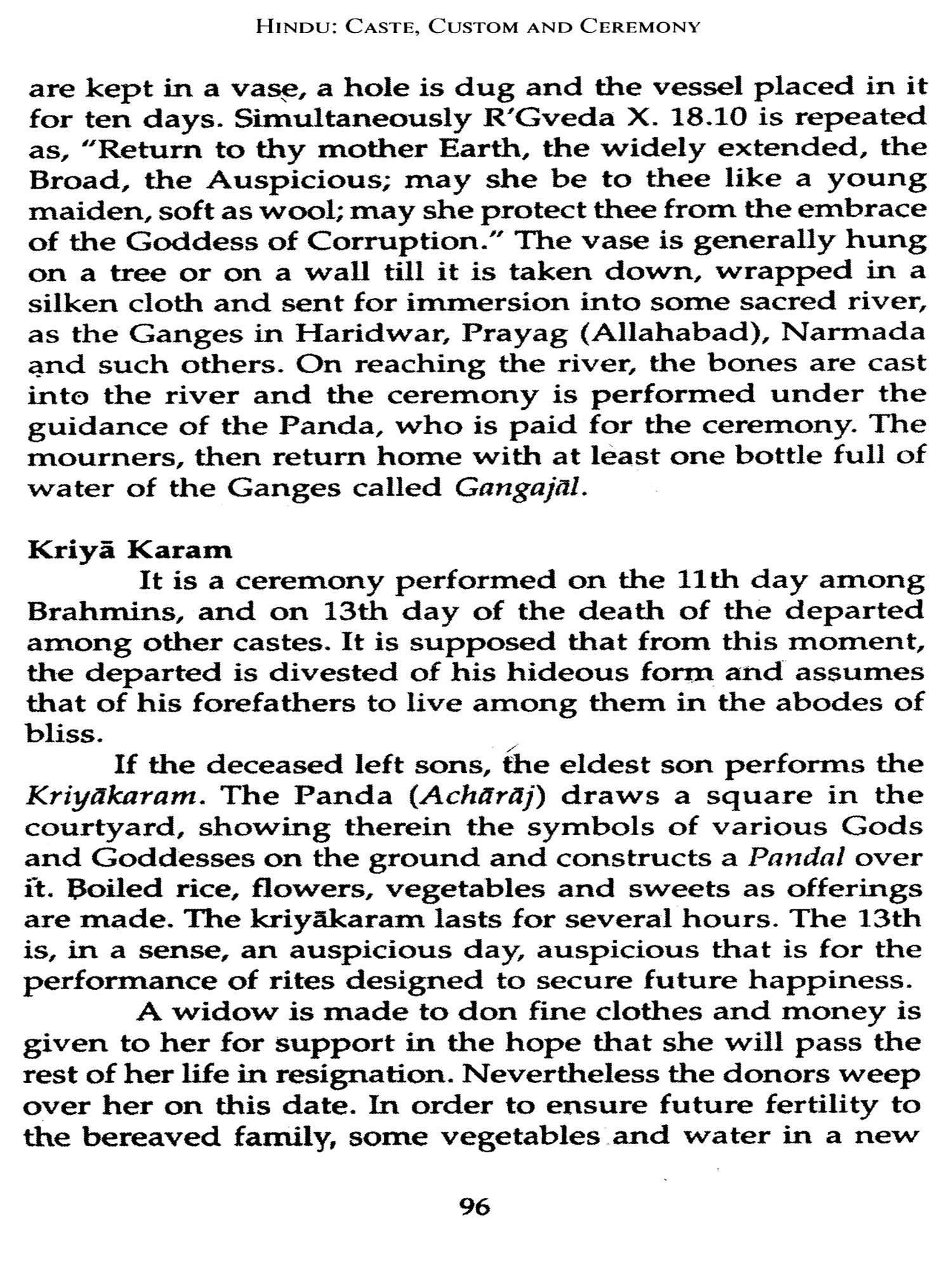 The description of customs and ceremonies, given in this book, is brief and not exhaustive. If one were to describe each in details, it would require many volumes; but the details, howsoever little given in this book, will be found useful by the reader to enlighten his mind.