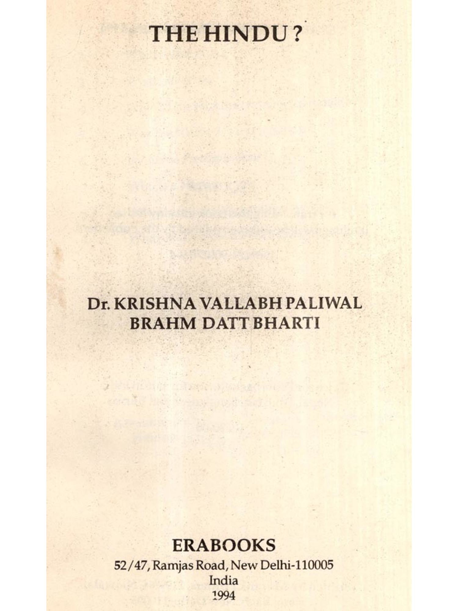 Was the Hindu always a Hindu?