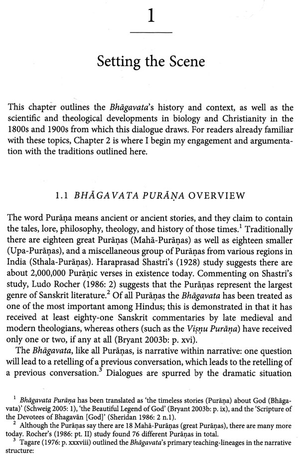 I describe the Bhagavata and contemporary Darwinianism as worldviews because they have exerted massive influence over many areas of human thought and practice, albeit up until quite recently in different regions of the globe and in different intellectual arenas. Despite the great influence of these two traditions, little academic work examines their relationship. One reason they have not been rigorously compared and contrasted is that they do not bear prima facie similarity to each other. In fact, they appear to hold such different views and have such different intellectual concerns that one may be inclined to think they have nothing to say to each other, like two people who speak entirely different languages. For hundreds of years, Western intellectual history has enjoyed a rich and sophisticated conversation between theology and science. We now have a wealth of historical, scientific, philosophical, and theological literature documenting these dialogues. With the advent of an even more robust science-religion dialogue over the past forty years, many scholars and scientists now wish to examine non-Western thought in relation to the sciences to seek fresh perspectives on contemporary problems.