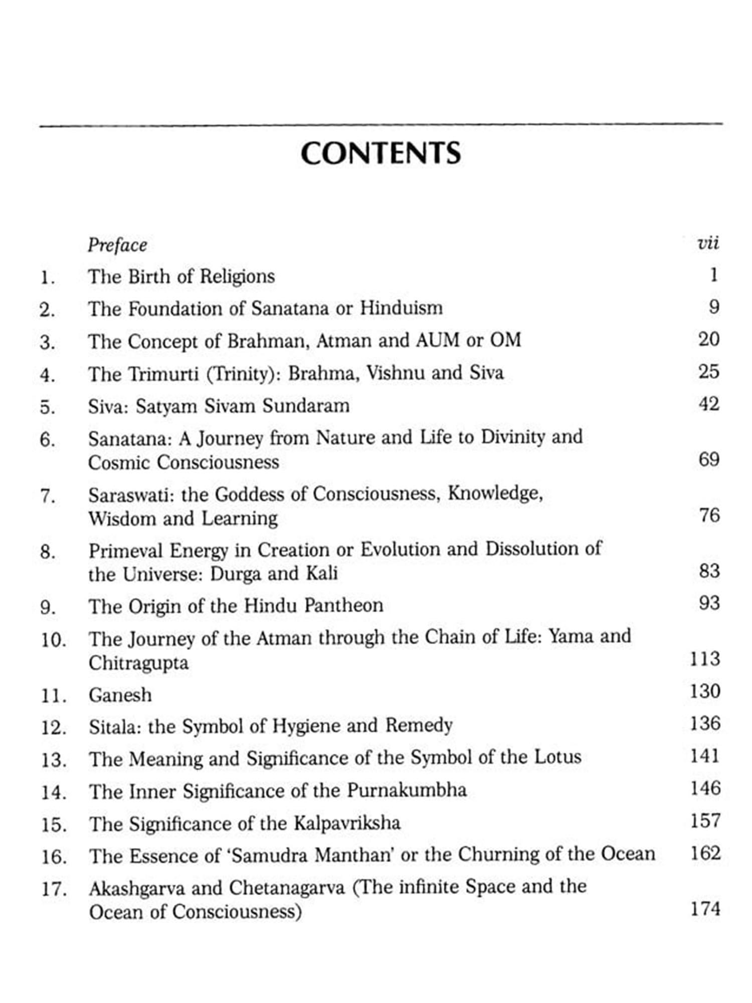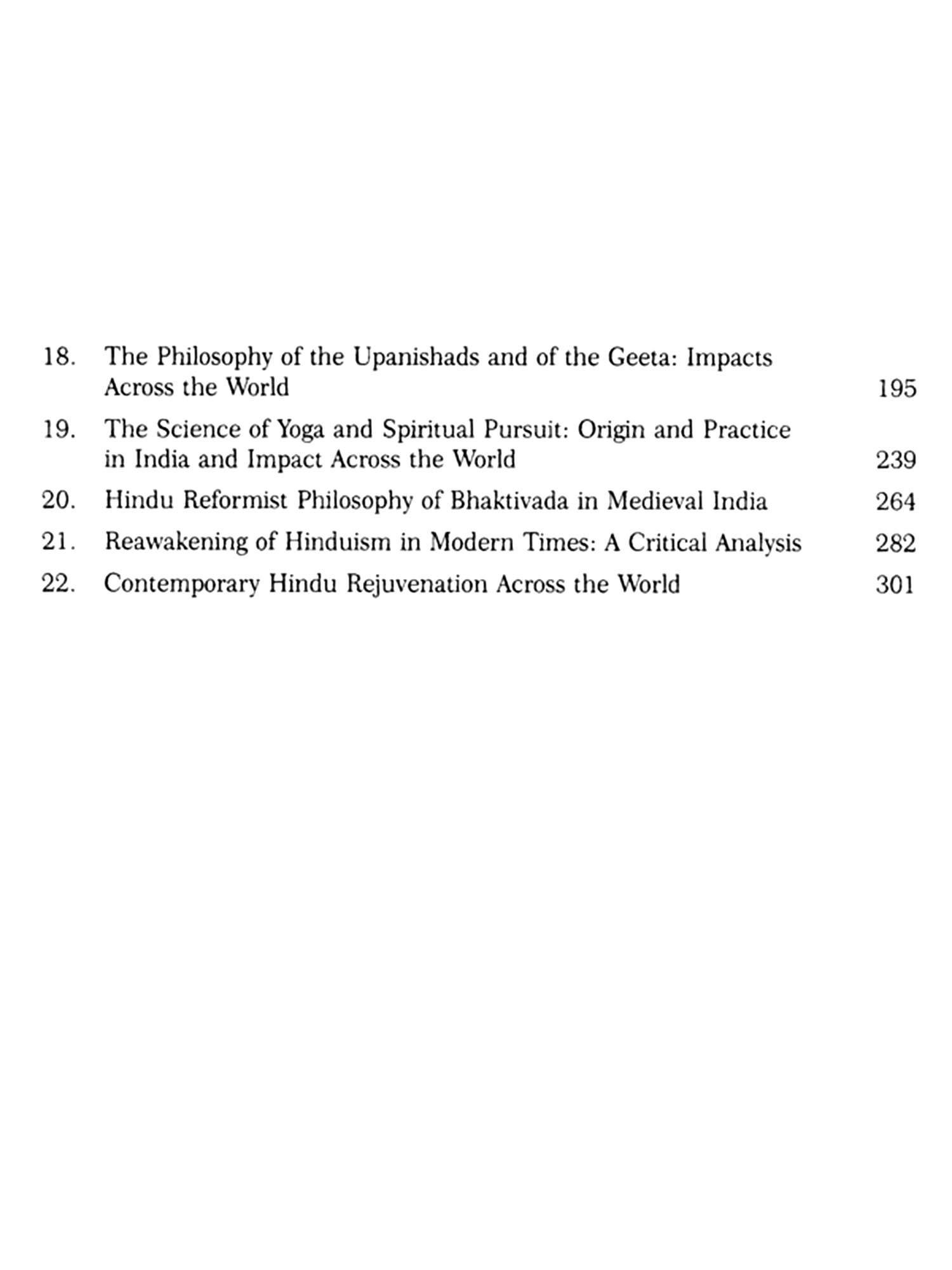 There has been misconception, confusion and haziness in defining, describing and analysing Hinduism or Sanatana, and this has been so not only because of misunderstanding of the non-Hindus but of millions of Hindus as well about the nature, depth, meanings of the religious symbols, rituals and deeper philosophy of the 'Dharma' that Hinduism has been as the earliest of the world religions devoid of significant inner changes and philosophical modifications for some millennia. The chapters of this book focus the light of clarity on all the aspects of Hinduism all along the course of its formative evolution since the remote antiquity of the Harappan and Vedic Civilization and later time developments in all the ages, though, its inner tune, music, melody, meaning and essence have remained almost the same to be rightly called or named Sanatana or Eternal. Hinduism is the earliest of all monotheistic religions; but it considered everything of the universe as the expression of the Absolute or the Divine called Brahman in the Upanishads out of which the universes have evolved with all material, energetic, sensible and conscious contents and constituents. Hinduism, therefore, never prohibits one worshipping the Absolute in any form or without form: rather, keeping aside this coreless controversy, it has so long given emphasis on meditation and realization of the Divine within the human body and soul. which are the microscopic constitutions of Divine energy and consciousness. It considers everything in any form of the universe just as a reflection of Brahman: therefore, it respects everything as the image of Brahman. Naturally one can worship Brahman in any form. Hinduism embraces all human beings. irrespective of divisions of class, race and religions, as equal in the domain of the Divine; therefore, it is the most tolerant religion of the world. All misconceptions about Hindu pantheon, monotheism or polytheism or idolatry have been cleared of all doubts in this book. The philosophical and symbolic meanings of all gods and goddesses as well as myths have been explained in the light of unity and the summum bonum of human life. The impact of Hinduism across the world has been narrated in different chapters according to appropriate contexts and thematic relevance. Hope, this book will guide the readers to a state of scientific and rational vision about the oldest living religion of the world.