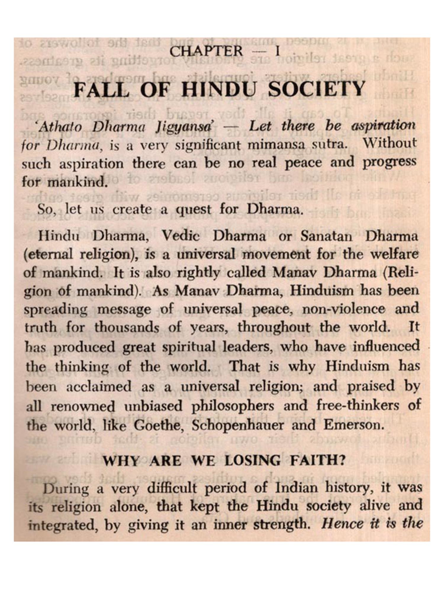 The fact that the knowledge of Hinduism of a common Hindu is inadequate has been occasionally exploit-ed by interested persons in order to twist the truth and to mislead the Hindu society.