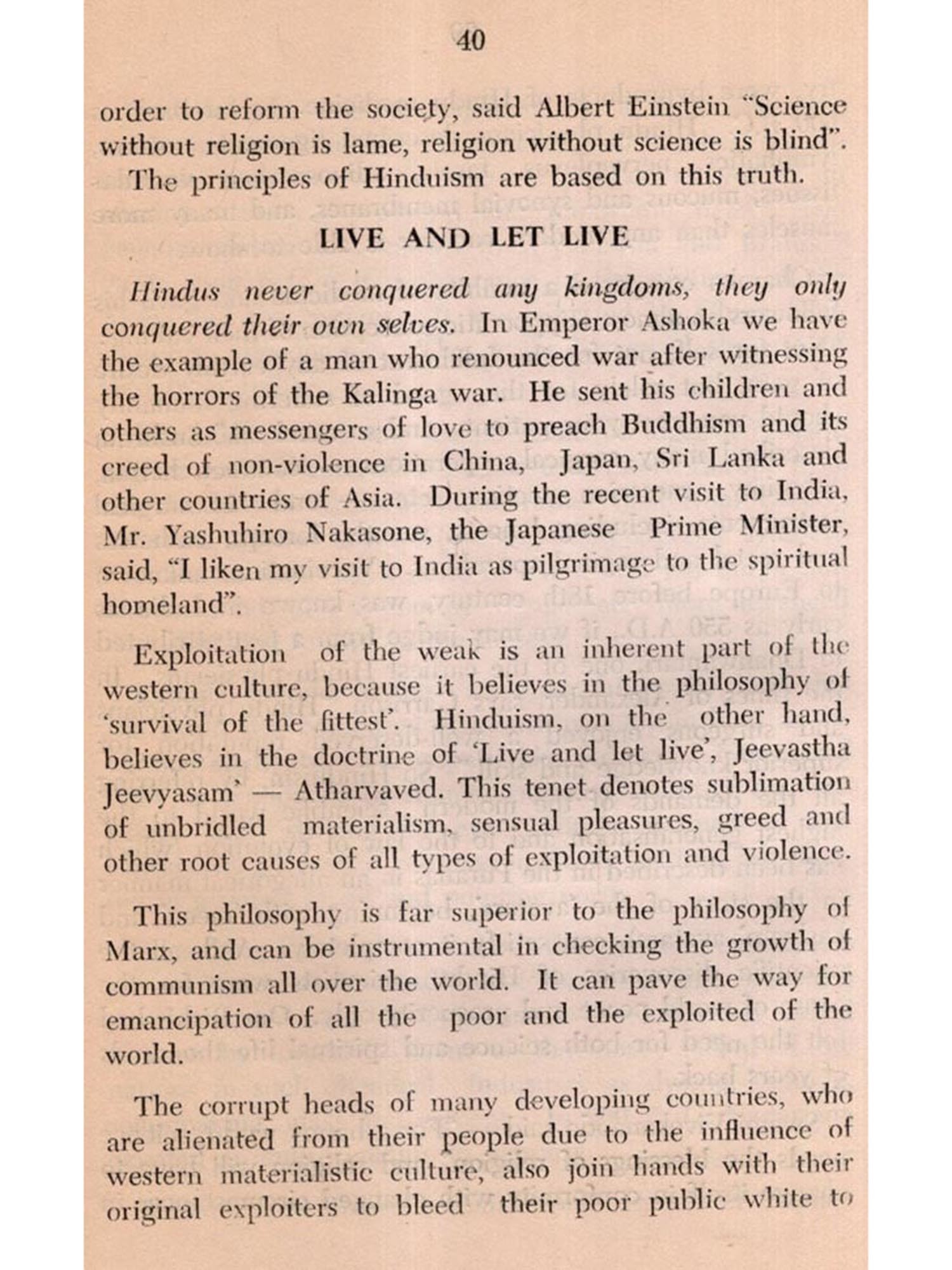 In this small book, I have tried to bring to light two purposeful and powerful ideas "Hinduism alone can save India and the world and "It is our birth right to defend Hinduism", in the hope that if they gain wide acceptance, and are deeply rooted into the minds of all Hindus, they can bring about a moral revolution in our country.