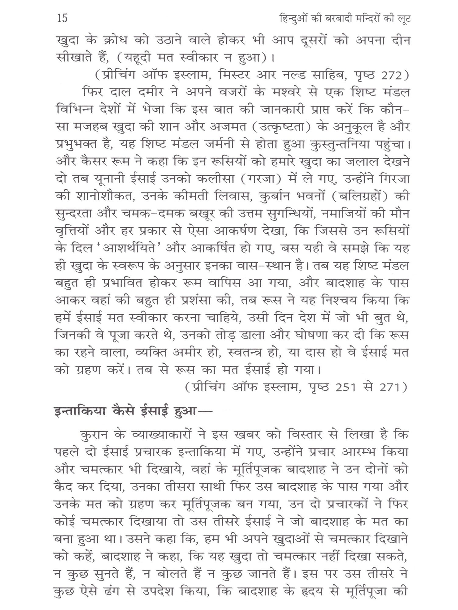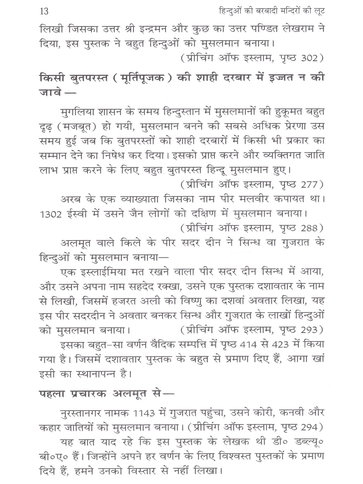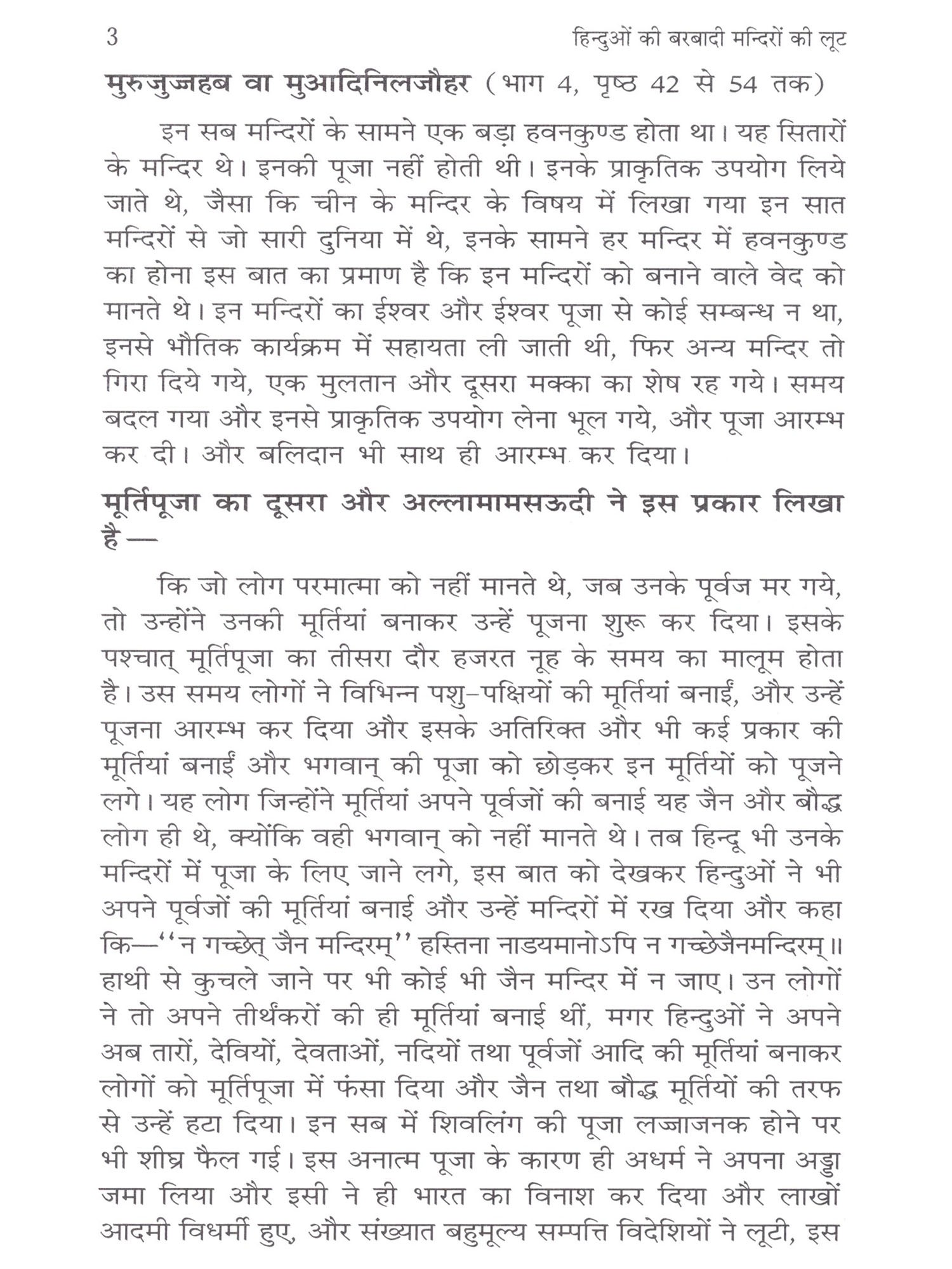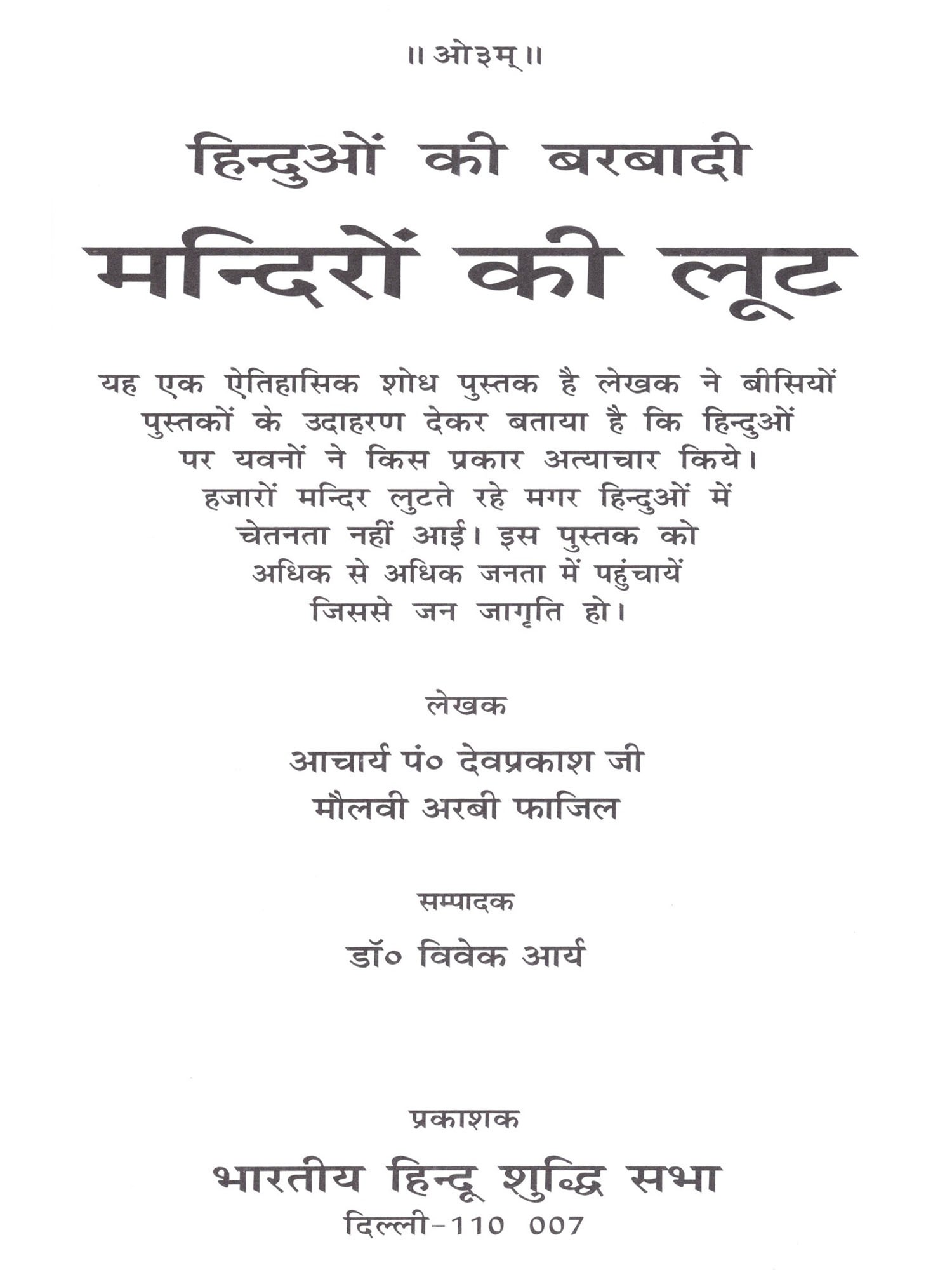 This is a historical research book. The author has cited dozens of examples to illustrate how the Yavanas perpetrated atrocities on Hindus. Thousands of temples were looted, but Hindus remained unconvinced. This book should be widely distributed to help awaken the public.
