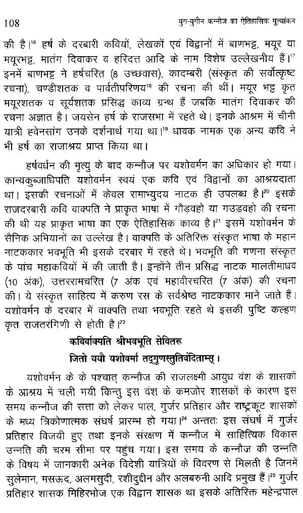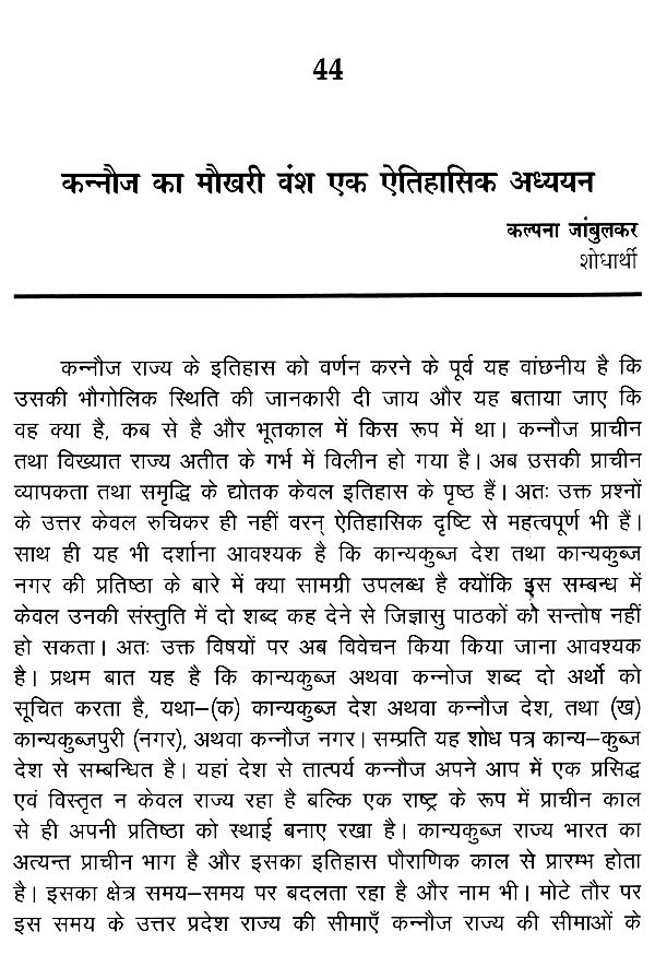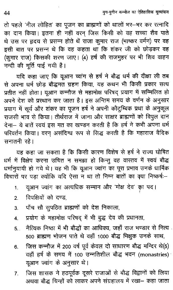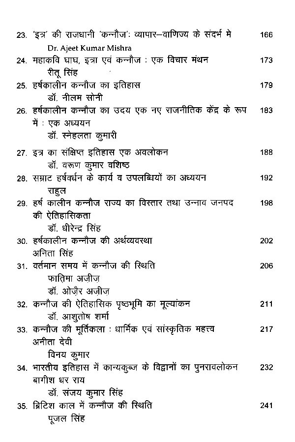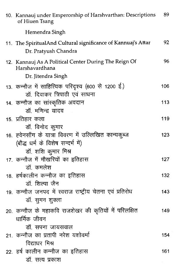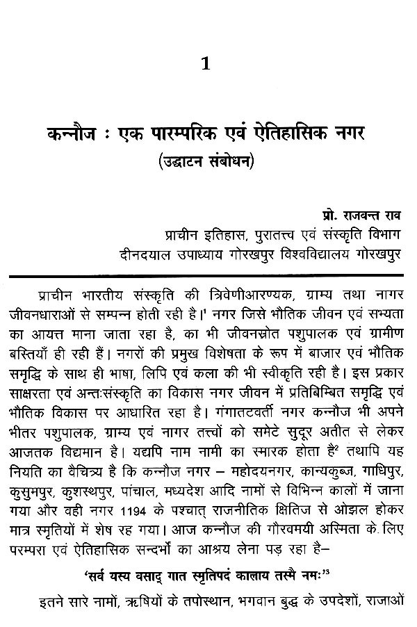 कन्नौज का भू-भाग उत्तर में हिमालय तथा दक्षिण में विंध्याचल पर्वत के मध्य में स्थित है। प्राचीन काल में यह क्षेत्र ऋषि-मुनियों एवं रामायण तथा महाभारत की सत्पुरुषों का निवास स्थान था। छठीं शताब्दी के उत्तरार्ध में कन्नौज की उन्नति दिखाई देती है। इस काल में कन्नौज मौखरियों की राजधानी बनी एवं मौखरियों के पतनोपरांत थानेश्वर के राजा हर्षवर्धन का कन्नौज पर नियंत्रण हुआ। अब मगध के स्थान पर कन्नौज राजनीतिक गुरुत्वाकर्षण का केंद्र हो गया। कन्नौज के राजा हर्षवर्धन ने राष्ट्रीय अखण्डता के परंपरागत आदर्श का निर्वहन किया जिसके लिए जीवन भर संघर्ष करना पड़ा इसी कारण से भारतीय इतिहास में हर्ष का नाम महान शासको की सूची में अंकित है। पुष्यभूति वंश के उपरांत अनेक राजवंशों जैसे प्रतिहारों एवं गाहड़वालों की राजधानी यहीं पर विद्यमान थी। इसी कारण से 12वीं शताब्दी तक यह उत्तरी भारत के सर्वश्रेष्ठ नगर के रूप में विद्यमान रही। कन्नौज बौद्धिक क्षेत्र के रूप में भी विख्यात था। संगोष्ठी में मुख्य रूप से मूर्धन्य विद्वानों द्वारा प्रस्तुत शोध पत्र को समाहित किया गया है। आशा है कि राष्ट्रीय संगोष्ठी का यह कार्यवृत युग युगीन कन्नौज का ऐतिहासिक मूल्यांकन का मार्गदर्शन करने में सहायक होगा।