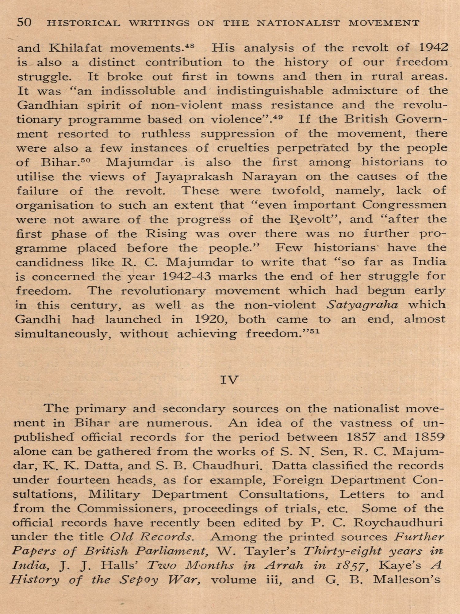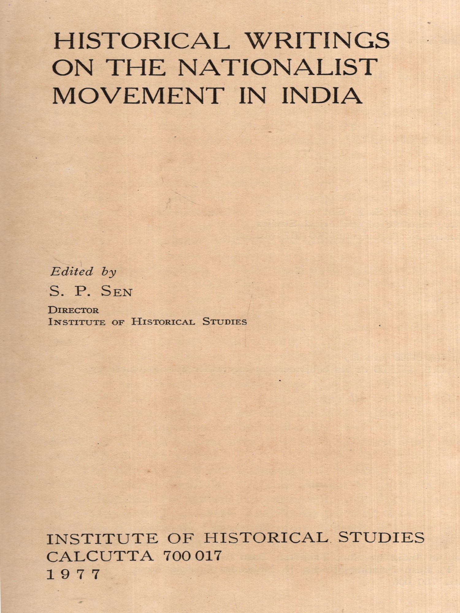 THE PRESENT VOLUME is a collection of fifteen papers presented at the Seventh Annual Conference of the Institute of Historical Studies held at Bangalore in November, 1969. Its publication was long overdue, but one factor or another had stood in the way and delayed it by seven years. First, we had to wait for a few years for papers relating to three or four States. Since we wanted to bring out a comprehensive study of historical writings on the nationalist movement in India, we required papers on all the major States. Second, from 1971 to 1974 we were too pre-occupied with the publication of the monumental Dictionary of National Biography volumes to devote any attention to any other publication. There were other factors too, including financial difficulties, which need not be mentioned here. One result of this long gap between the presentation of papers and their publication is that the papers could not include much of the material published on the nationalist movement during the last seven years. Anyway, while editing the papers, we have tried to bring them up to date as far as possible. But since the papers deal largely with historical writings in different Indian languages, it has not been possible to incorporate new material to the extent one would have wished for. Still, it may be claimed this is a fairly exhaustive study of all the historical writings in English and in Indian languages on the nationalist movement. It will not be before at least another decade when the present study may be deemed to be out of date.