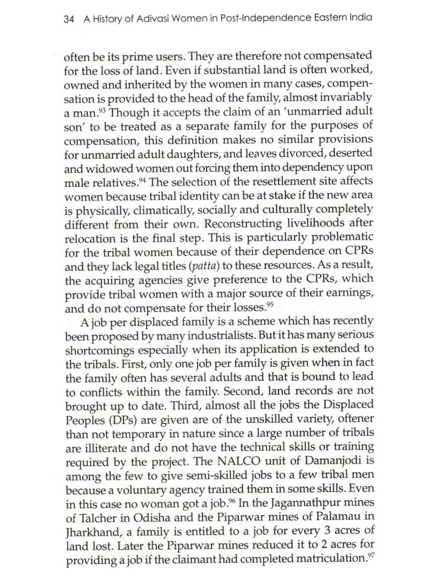 Linking tribe and gender, the author elaborates how forest economy is women's economy; forcible eviction by multinationals for new industries has led to severe displacement and poverty, apart from intensification of witch hunting and trafficking of girls.