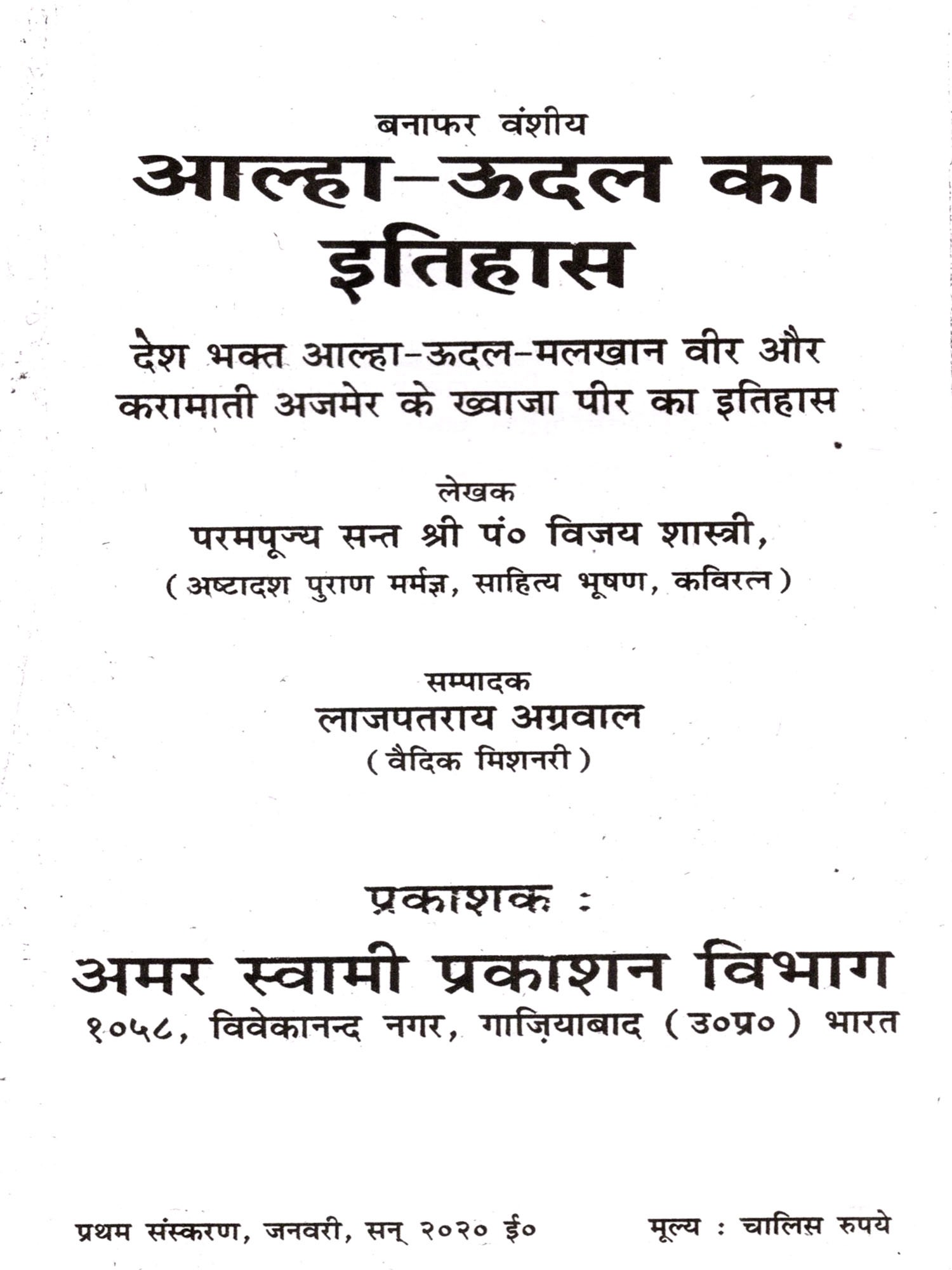 आल्हा ऊदल का इतिहास: History of Alha Udal- The patriotic Alha Udal-Malkhan, the Brave and Miraculous Khwaja Peer of Ajmer