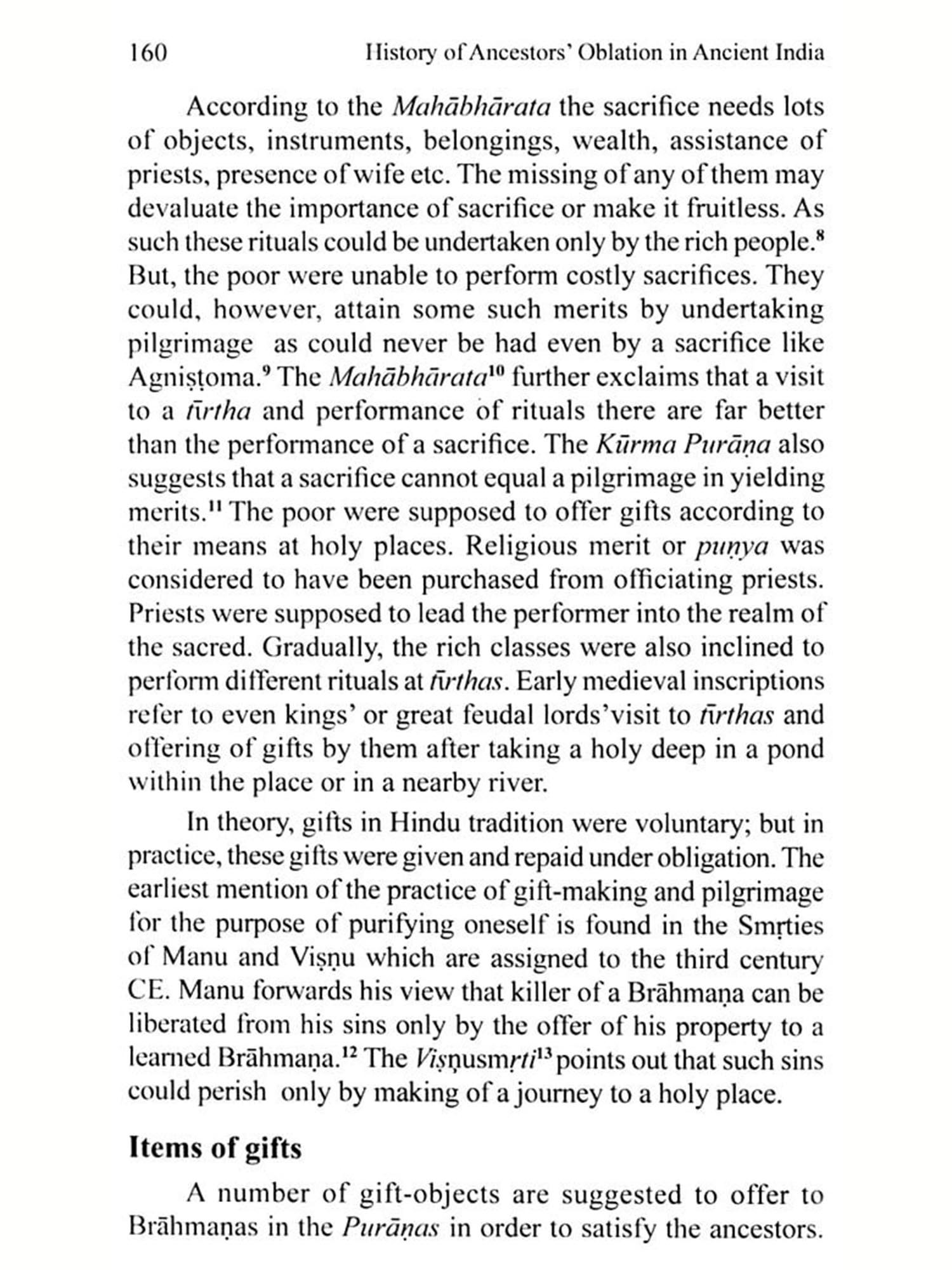 Coming down to the Sūtra period, the ritual of śrāddha was obviously emphasized, but its fascinating publicity gained ground only in early Christian centuries, particularly from the mid Gupta period, with the development of subsistence economy of agriculture which followed a wide spread decay and desertion of towns from third fourth Christian centuries. The donation of land and villages in large measures in early medieval period to the Brahmaņas for the support of their livelihood emerged as the chief characteristic of feudalism. The donors also gifted land/villages to righteous Brāhmaņas for the successful performance of the puncamahāyajña which included the most important pitr sacrifice. A large number of epigraphic evidence to such grants in early medieval period show the smooth running of the ritual of śraddha in the atmosphere of peace and tranquility.