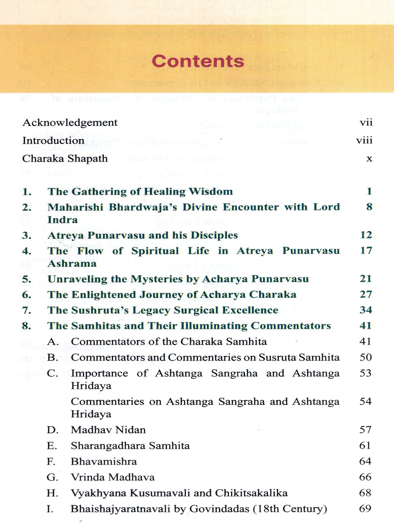 As the journey continues, we explore the deep questions about Ayurveda and how Acharya Punarvasu answered them with wisdom. You'll also discover the inspiring life of Acharya Charaka, a great figure in Ayurvedic medicine, and the amazing surgical skills of Sushruta, who followed the teachings of Lord Dhanvantari. Also included information of other Samhitas and their commentators, and illustrated the ancient symposium-style dialogues found in Charaka and Sushruta Samhita.