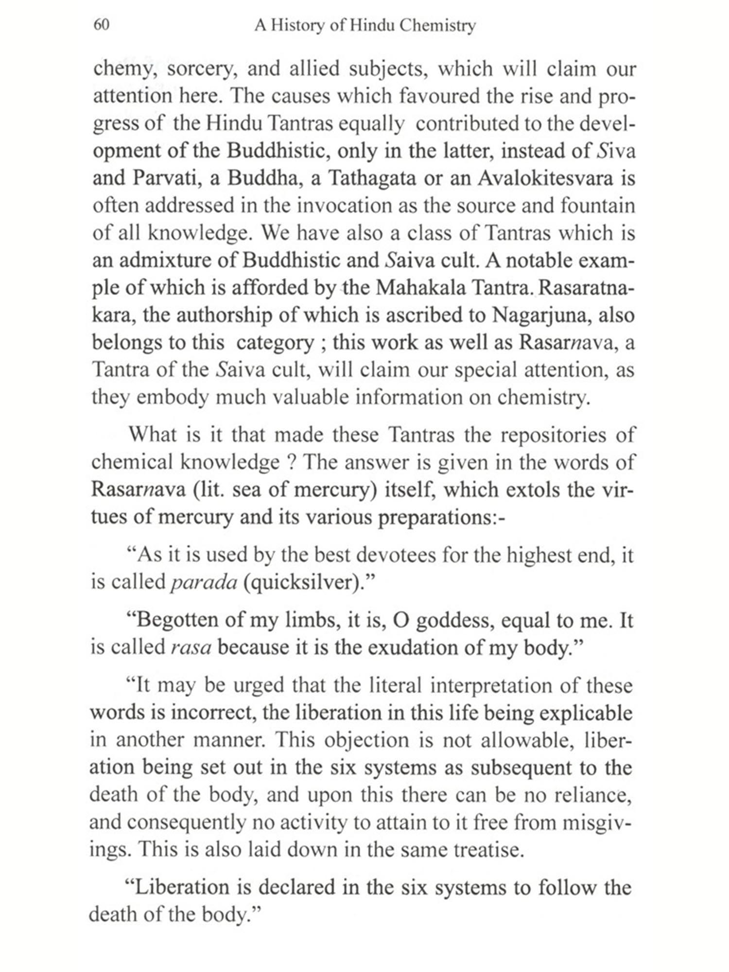 The progress of chemical knowledge among the ancient nations has always had a fascination for me. The classical works of Thomson, Hoefer and Kopp have been my favourite companions for the last twelve years and more. In the course of my studies in this field I was naturally led to an inquiry into the exact position which India occupies therein, and with this view I undertook a systematic examination, from the chemical standpoint, of the Charaka, the Susruta and the various standard works of the Ayurvedic and latro chemical periods, which have escaped the ravages of time. It was at this stage that I was brought into the communication with M. Berthelot some five years ago-a circumstance which has proved to be a turning point, if I may so say, in my career as a student of the history of chemistry. The illustrious French savant, the Doyen of the chemical world, who has done more than any other person to clear up the sources and trace the progress of chemical science in the West, expressed a strong desire to know all about the contributions of the Hindus, and even went the length of making a personal appeal to me to help him with information on the subject. In response to his sacred call I submitted to him, in 1898, a short monograph on Indian alchemy; it was based chiefly on Rasendrasara Samgraha, a work which I have since then found to be of minor importance and not calculated to throw much light on the vexed question as to the origin of the Hindu Chemistry.