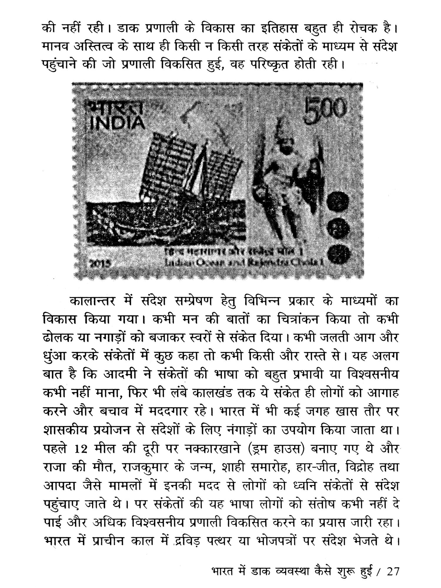 भारतीय डाक प्रणाली का जो उन्नत और परिष्कृत स्वरूप आज हमारे सामने है, वह सालों के लंबे सफर की देन है। अंग्रेज़ों ने 150 साल पहले अलग-अलग हिस्सों में अपने तरीके से चल रही डाक व्यवस्था को एक सूत्र में पिरोने की जो पहल की, उसने भारतीय डाक को एक नया रूप और रंग दिया। नियोजित विकास प्रक्रिया ने भारतीय डाक को दुनिया की सबसे बड़ी और बेहतरीन डाक प्रणाली बनाया है। राष्ट्र निर्माण में डाक विभाग ने ऐतिहासिक भूमिका निभाई है और इसकी उपयोगिता लगातार बनी हुई है। आम आदमी डाकघरों और डाकिया (पोस्टमैन) पर बहुत भरोसा करता है। तमाम उतार-चढ़ाव होने के बावजूद भी इतना जन विश्वास कोई और संस्था नहीं अर्जित कर सकी है। यह स्थिति कुछ सालों में नहीं बनी है बन्कि इसके पीछे बरसों का श्रम और सेवा छिपी है।