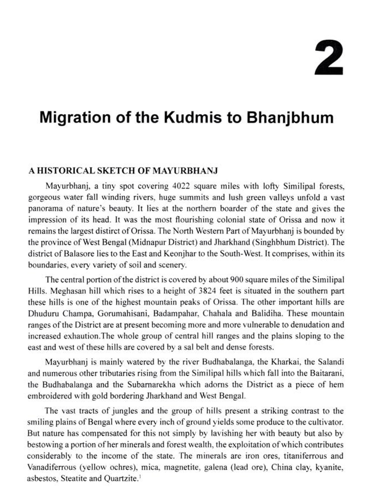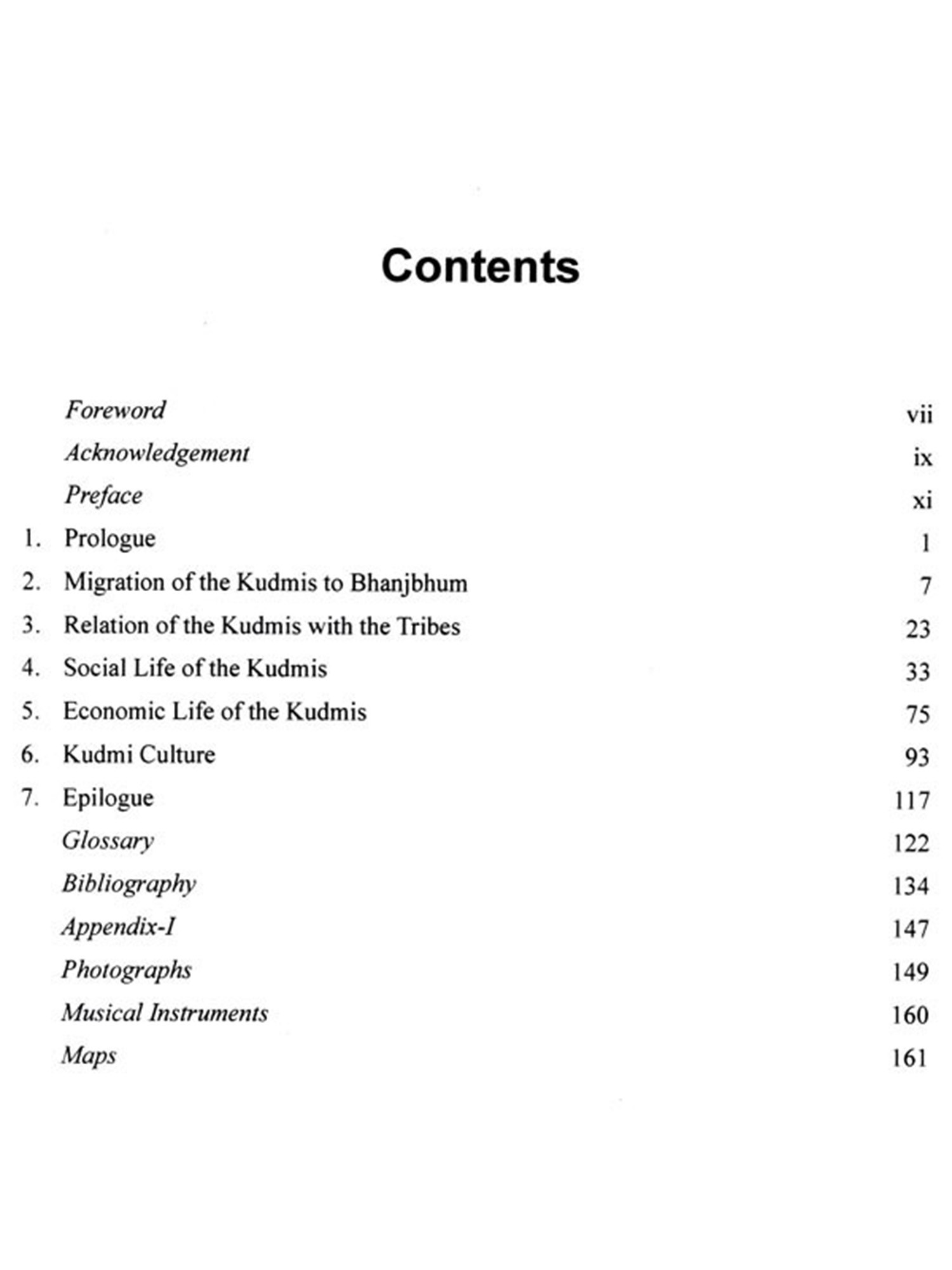 The east Indian States like Jharkhand, Odisha, West Bengal, Chhatisgarh and Assam are very rich for the habitation of the Kudmi community. In the State of Odisha the Kudmis are mainly found in the district of Mayurbhanj, Keonjhar, Sundargarh, Jajpue, Balasore and Anugul. The Kudmis migrated and settled in different parts of north Odisha in the past. The home land of the Kudmis was Manbhum, a part of the Chhotnagpur Platue. The Kudmis of Eastern India are completely separate from the Kudmis of North and South Indian States on the basis of their socio cultural life, subsistence pattern, physical features, language etc. They are well known as an agrarian community of India. In the year 1913 they were classified as a primitive tribe, but later on they were discarded from the tribal list. Presently the Kudmis of Bengal, Jharkhand and Odisha were struggling hard to include them again in the tribal groups. Their socio Economic and Cultural life is changing in course of time. All the important aspects has been dicussed in the present book entitled, "History of the Kudmis of Mayurbhanj, Eastern India: A Study on their Society, Economy and Culture" which is an outcome of the extensive research on the Kudmis. This work will contribute for a better understanding on the History and Culture of the Kudmis of Eastern India, will be helpful to the young researchers, scholars and administrators for more research on to understand them