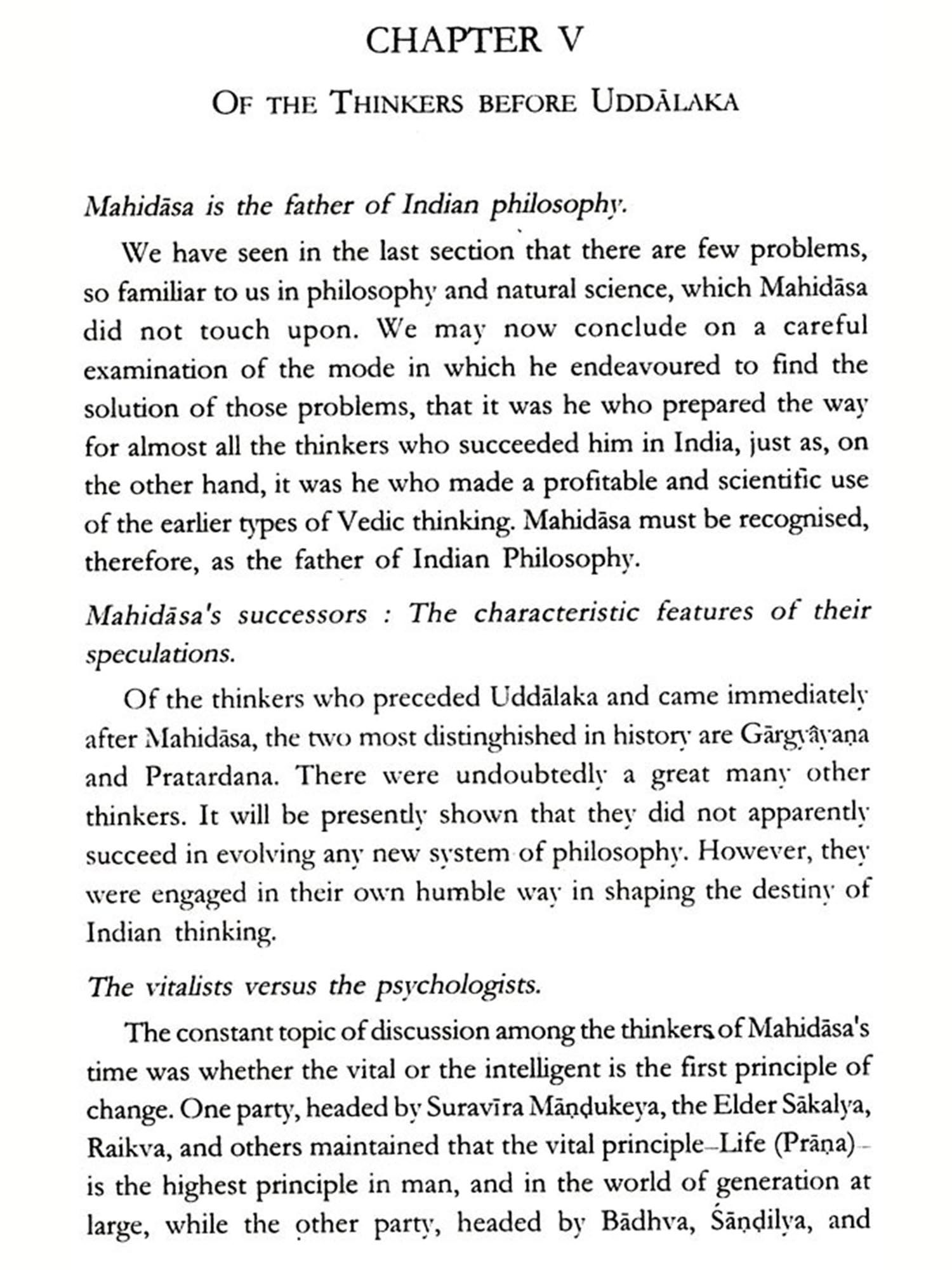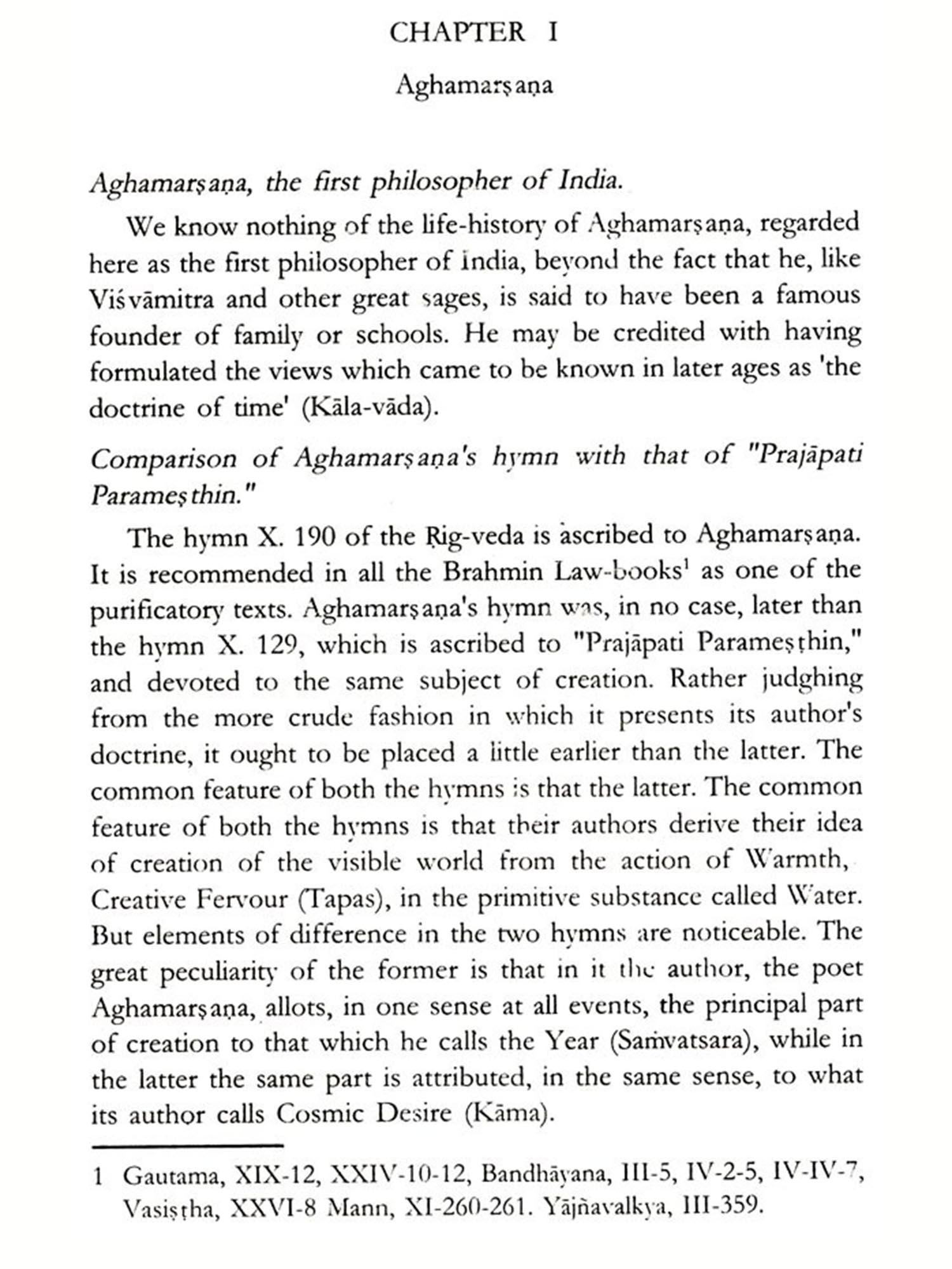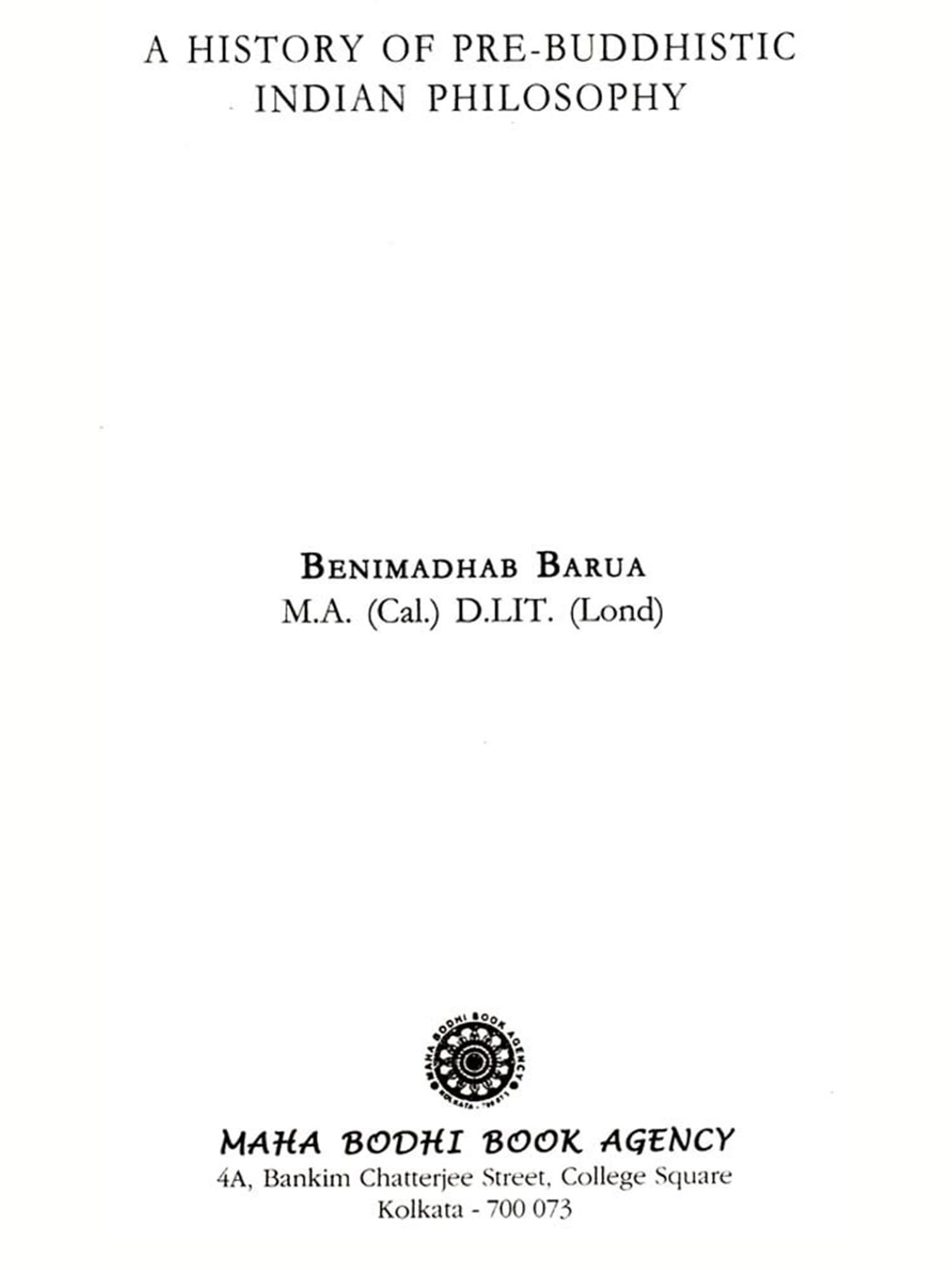 The present work is substantially my thesis "Indian Philosophy-its origin and growth from the Vedas to the Buddha," submitted in 1917to the University of London and approved in the same year for the D. Lit, degree. I can no longer regard it as the same Doctorate thesis, since it has been revised, altered and enlarged, though slightly, in the light of subsequent research. Consequently, the title of the original thesis has been done away with and replaced by the present, title "A History of Pre Buddhistic-Indian Philosophy." The Supplementary Discussions in Chapter XII, the Post Script in Chapter XXI and the whole of the concluding chapter are later additions. None the less, the original thesis remains almost intact in this work in that the changes made therein are immaterial, the general arrangement of its chapters and sections as well as its main conclusions having suffered no violent alteration.