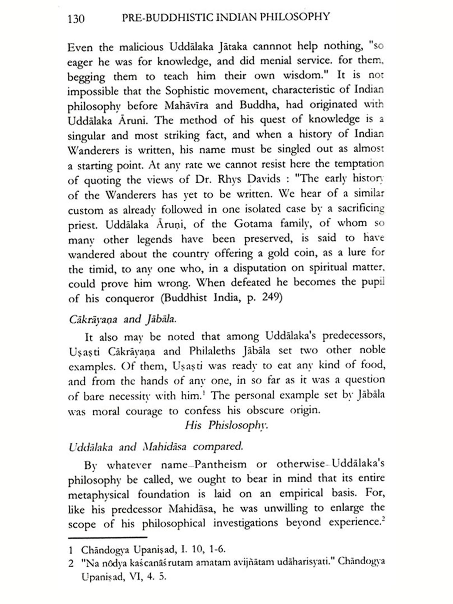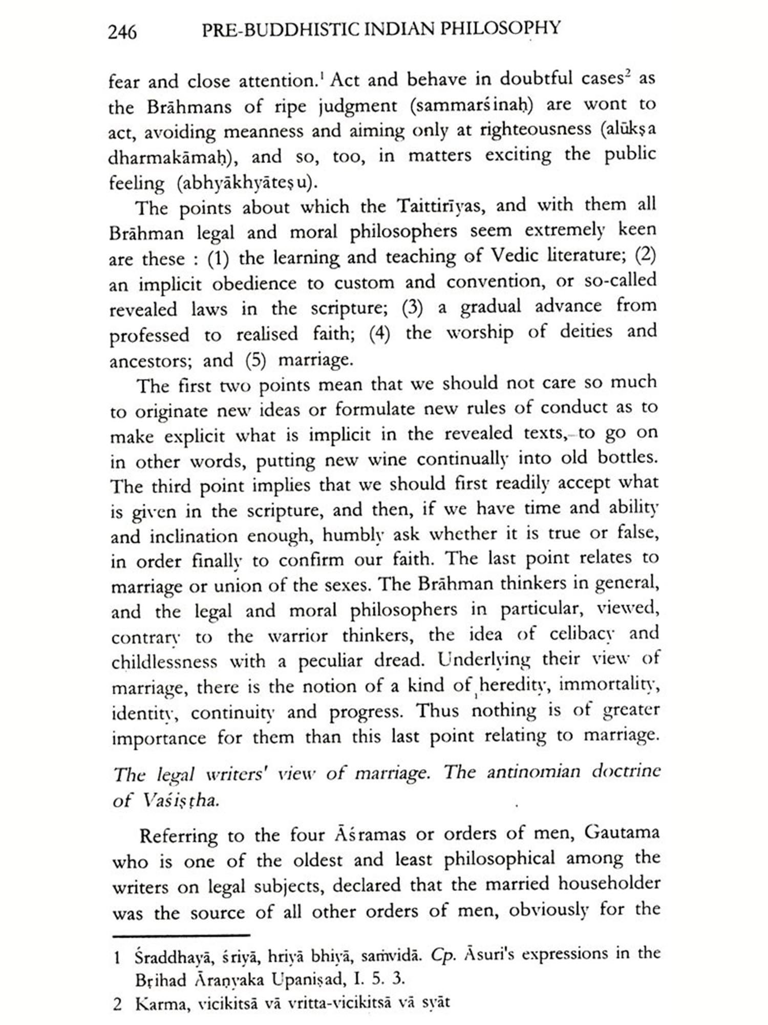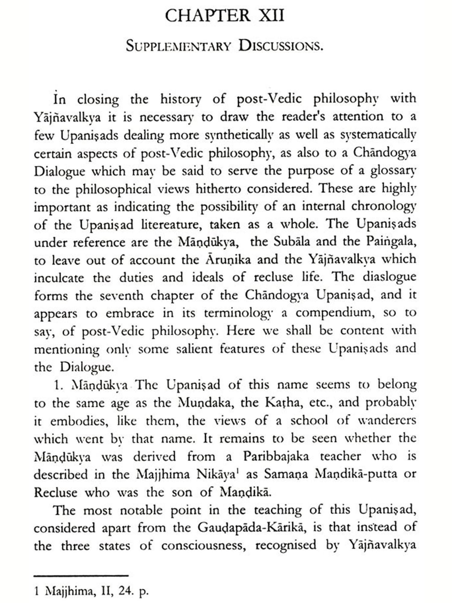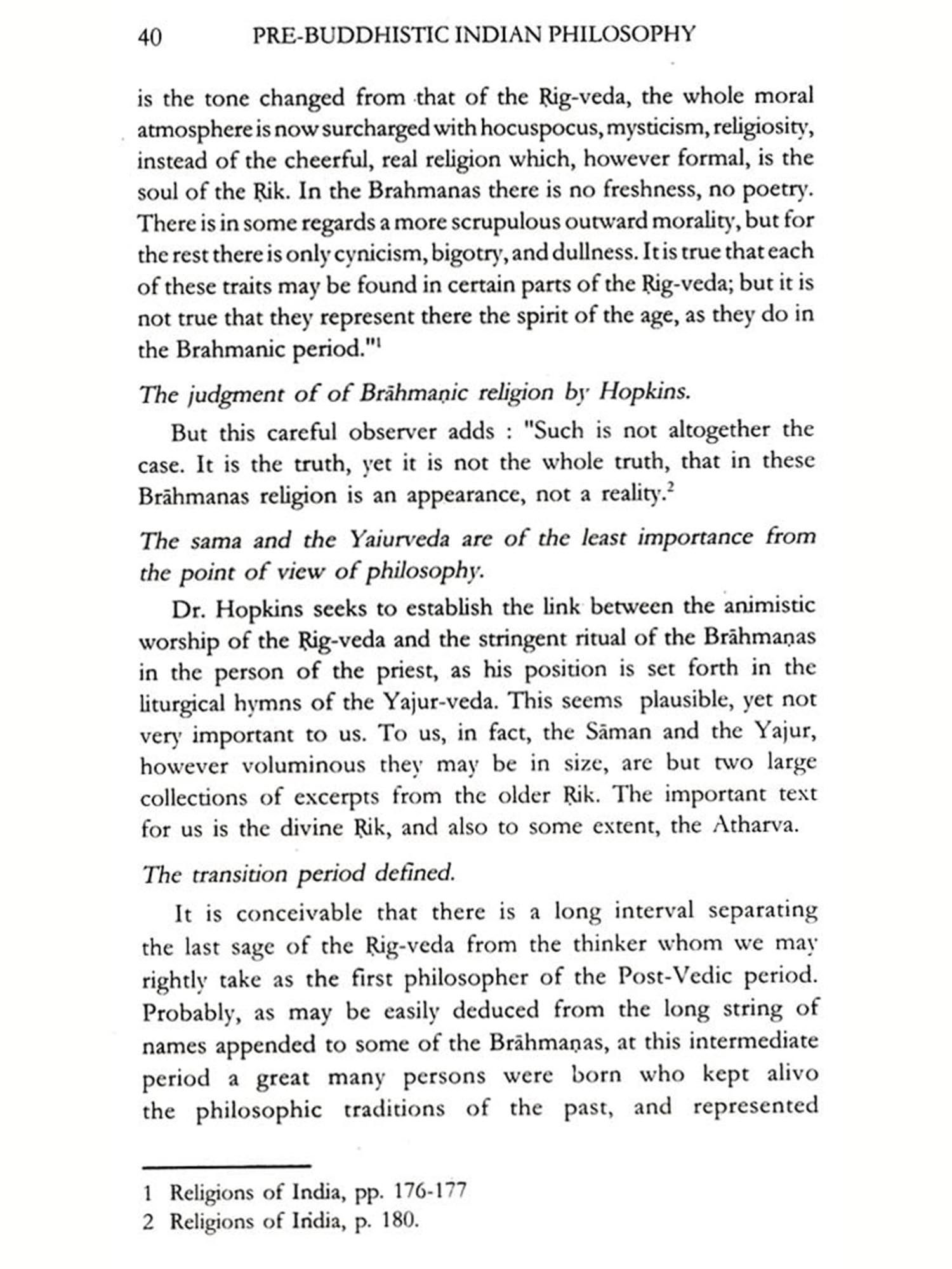 The present work is substantially my thesis "Indian Philosophy-its origin and growth from the Vedas to the Buddha," submitted in 1917to the University of London and approved in the same year for the D. Lit, degree. I can no longer regard it as the same Doctorate thesis, since it has been revised, altered and enlarged, though slightly, in the light of subsequent research. Consequently, the title of the original thesis has been done away with and replaced by the present, title "A History of Pre Buddhistic-Indian Philosophy." The Supplementary Discussions in Chapter XII, the Post Script in Chapter XXI and the whole of the concluding chapter are later additions. None the less, the original thesis remains almost intact in this work in that the changes made therein are immaterial, the general arrangement of its chapters and sections as well as its main conclusions having suffered no violent alteration.