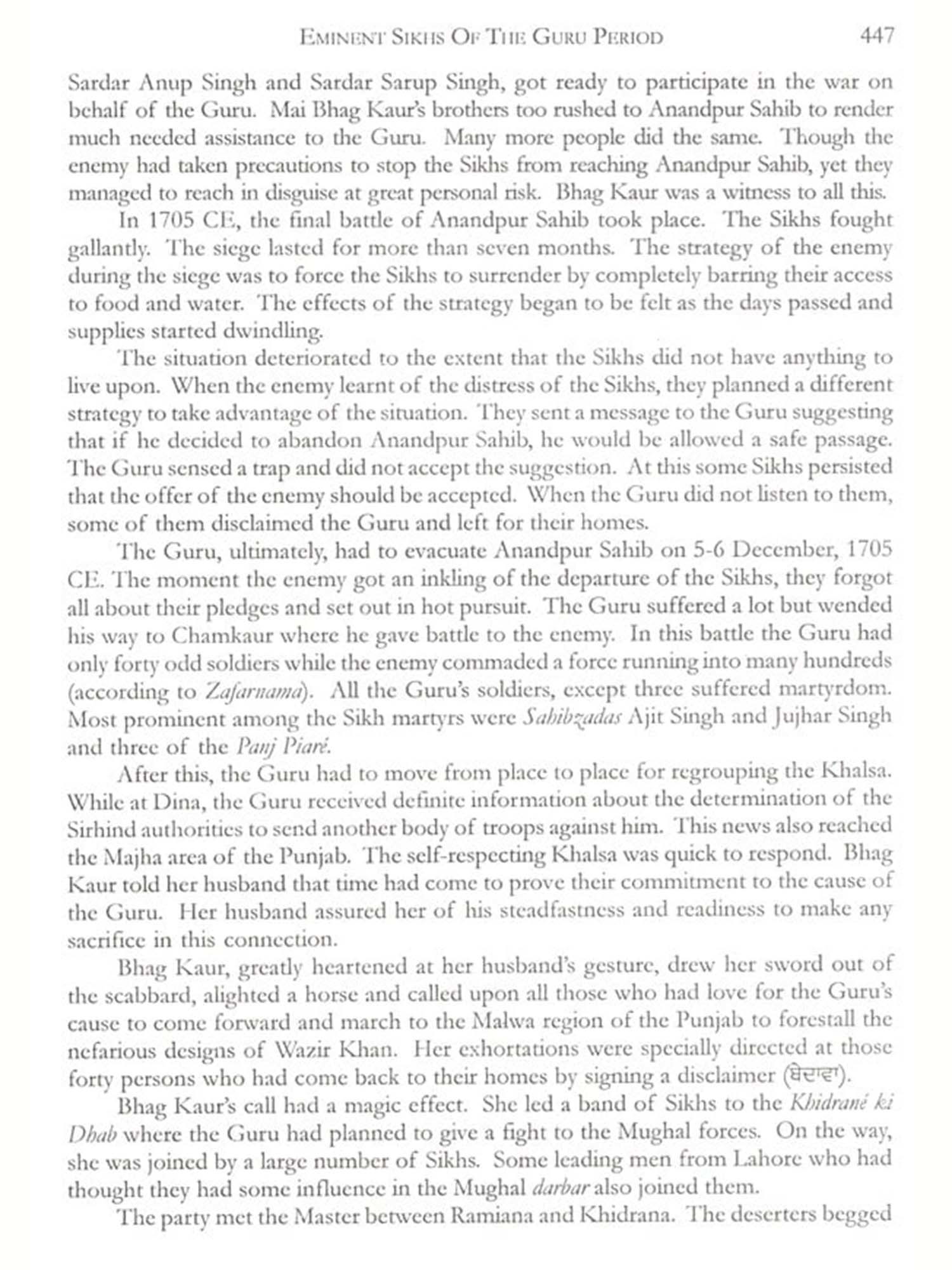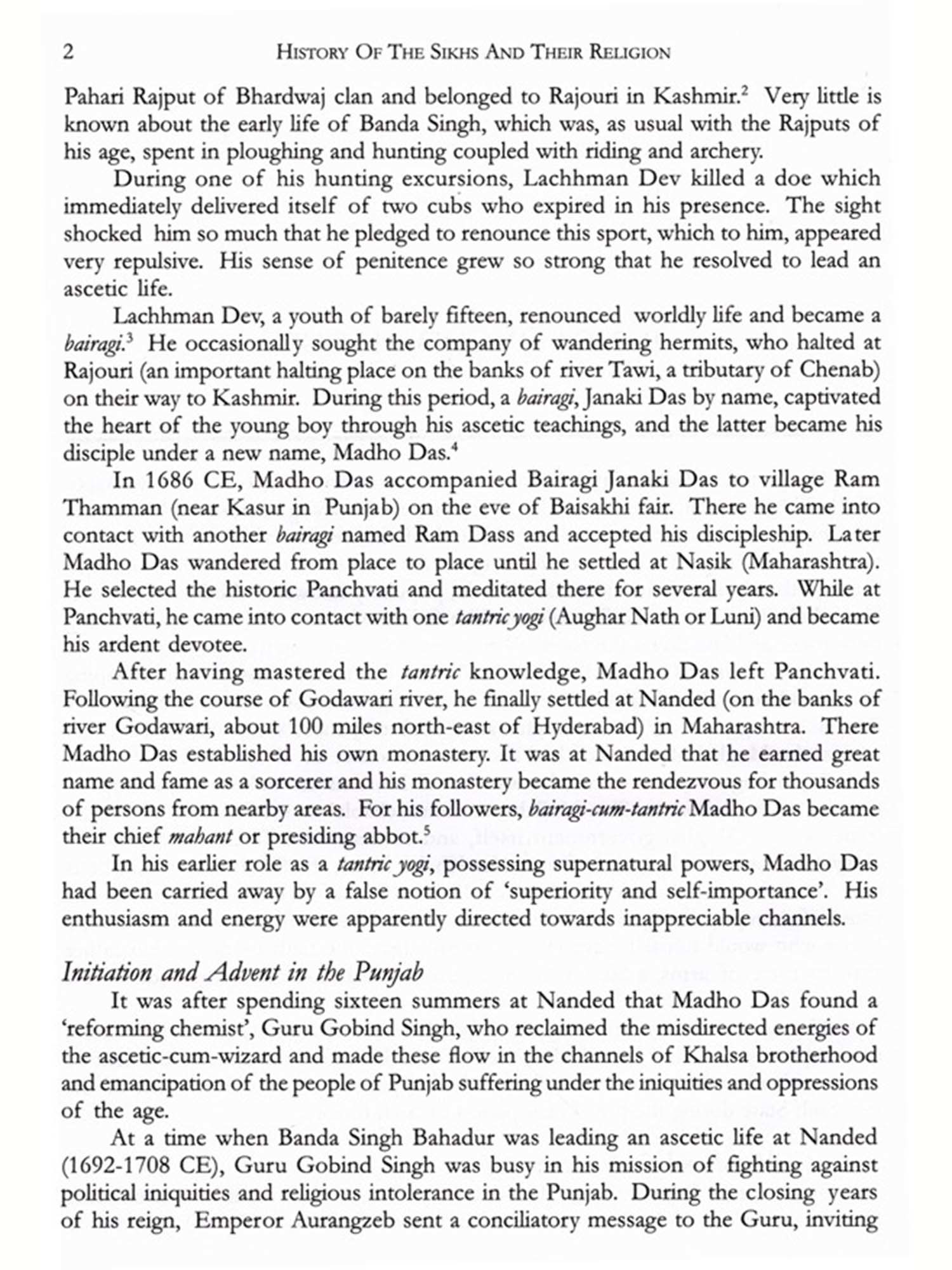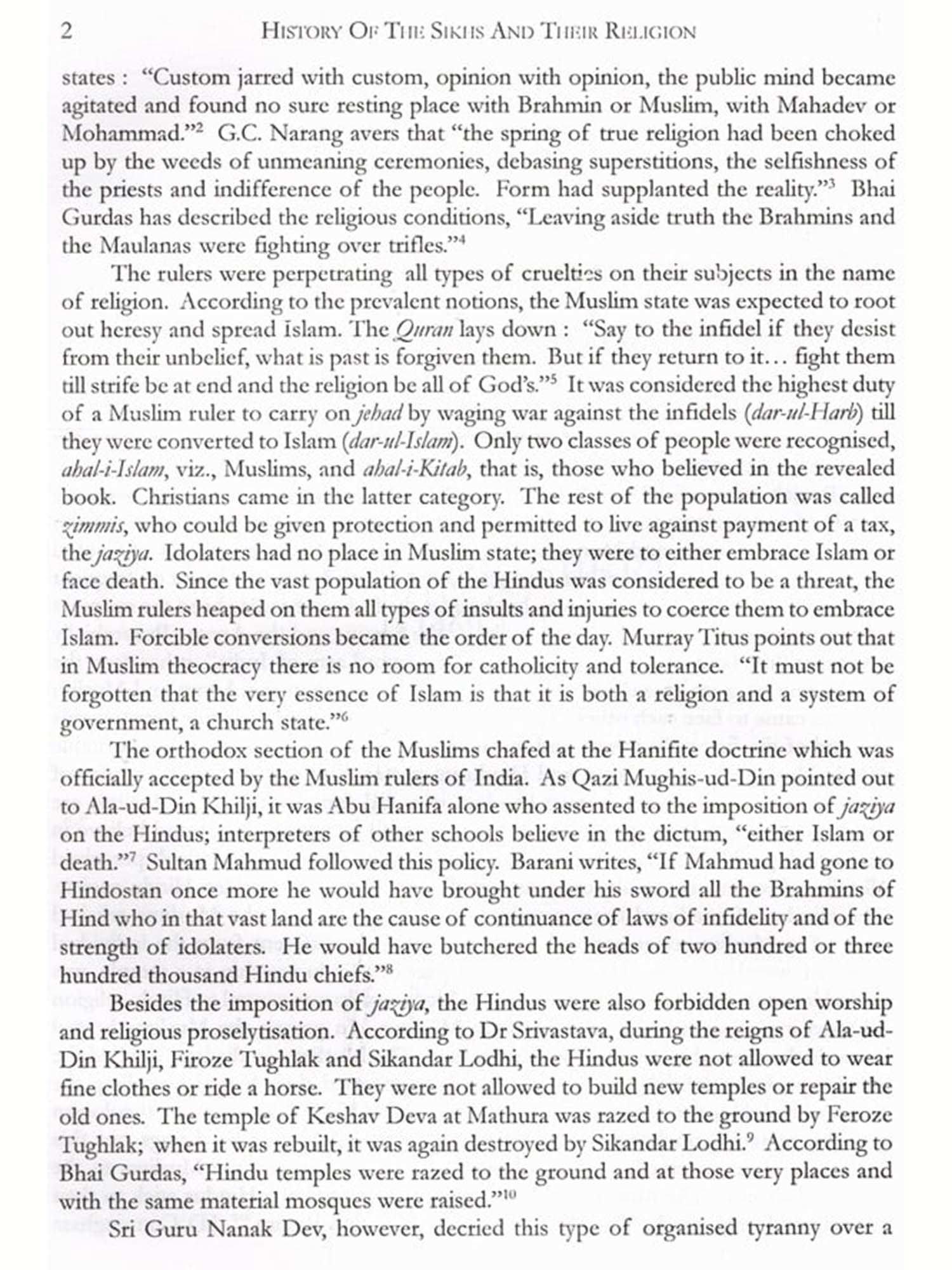 was time consuming and difficult. Sri Guru Arjun Dev and Sri Guru Tegh Bahadur, fifth and the ninth Gurus, sacrificed their lives for the freedom of conscience. Sn Guru Gobind Singh the tenth and the last apostle Guru of the Sikhs, sacrificed his four sons, and himself fought to his last breath against tyranny. The non-Sikh writers have seldom done justice in their accounts. The contemporary Muslim writers gave highly bigoted account of their noble deeds. The Western scholars, not familiar with the spirit of the movement, depict history from an entirely different angle. How the Sikh history has been distorted, has been given in detail in the Preface of the First Edition (of this book).