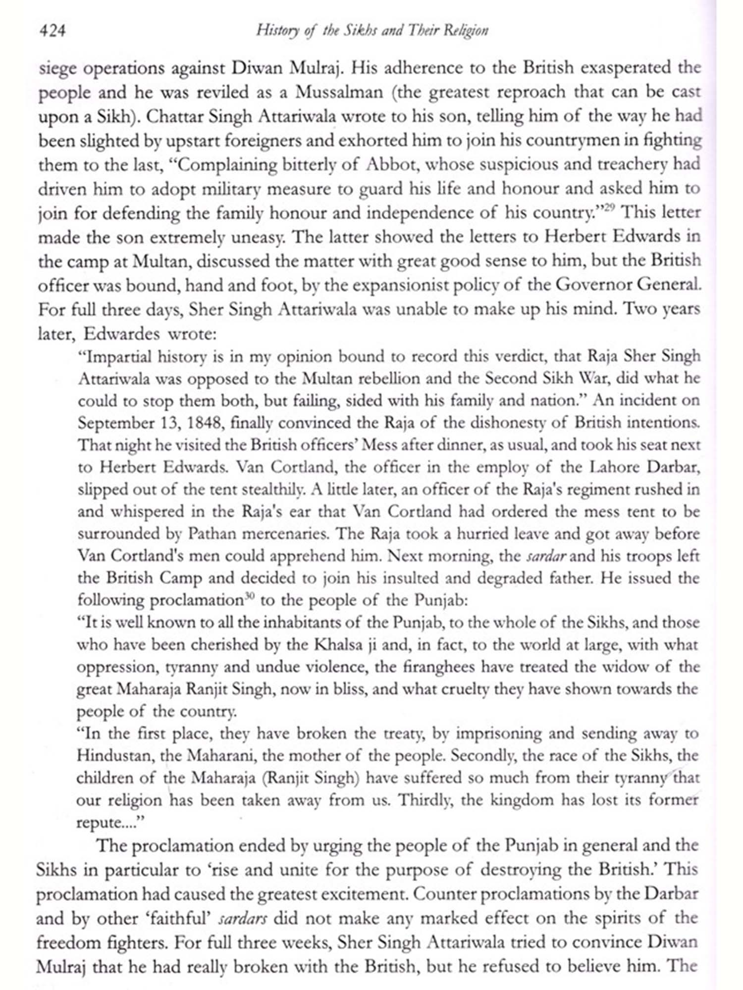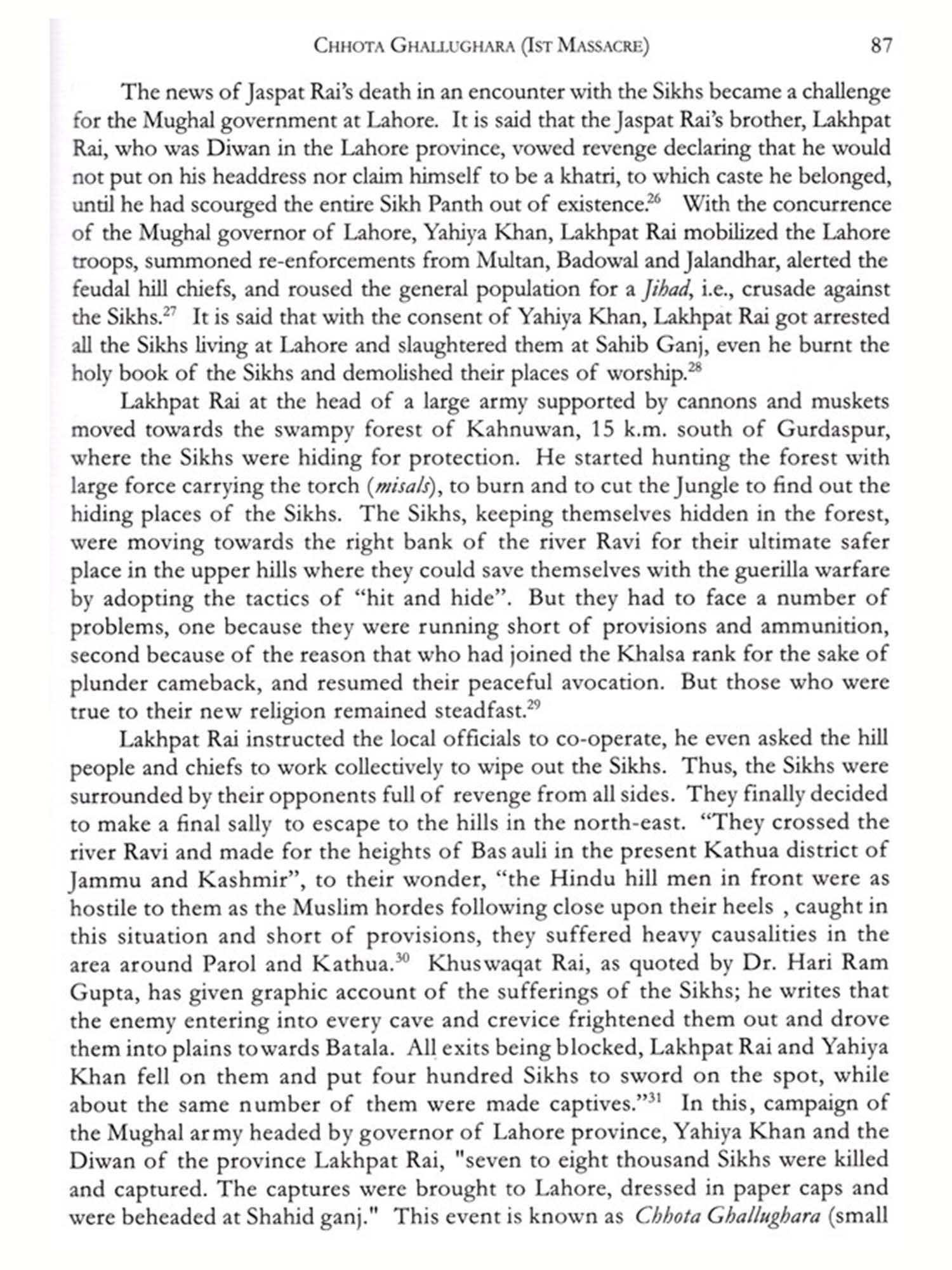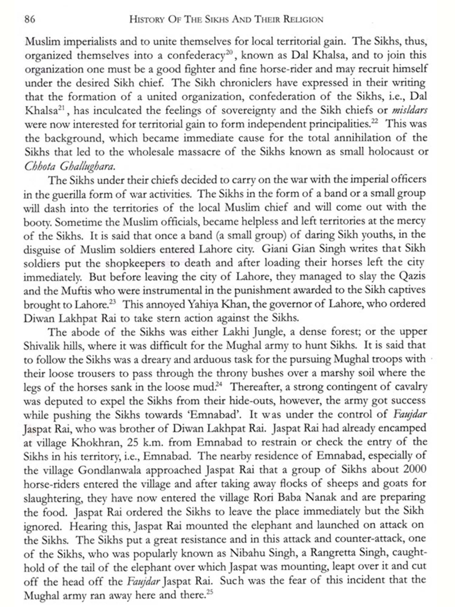 was time consuming and difficult. Sri Guru Arjun Dev and Sri Guru Tegh Bahadur, fifth and the ninth Gurus, sacrificed their lives for the freedom of conscience. Sn Guru Gobind Singh the tenth and the last apostle Guru of the Sikhs, sacrificed his four sons, and himself fought to his last breath against tyranny. The non-Sikh writers have seldom done justice in their accounts. The contemporary Muslim writers gave highly bigoted account of their noble deeds. The Western scholars, not familiar with the spirit of the movement, depict history from an entirely different angle. How the Sikh history has been distorted, has been given in detail in the Preface of the First Edition (of this book).