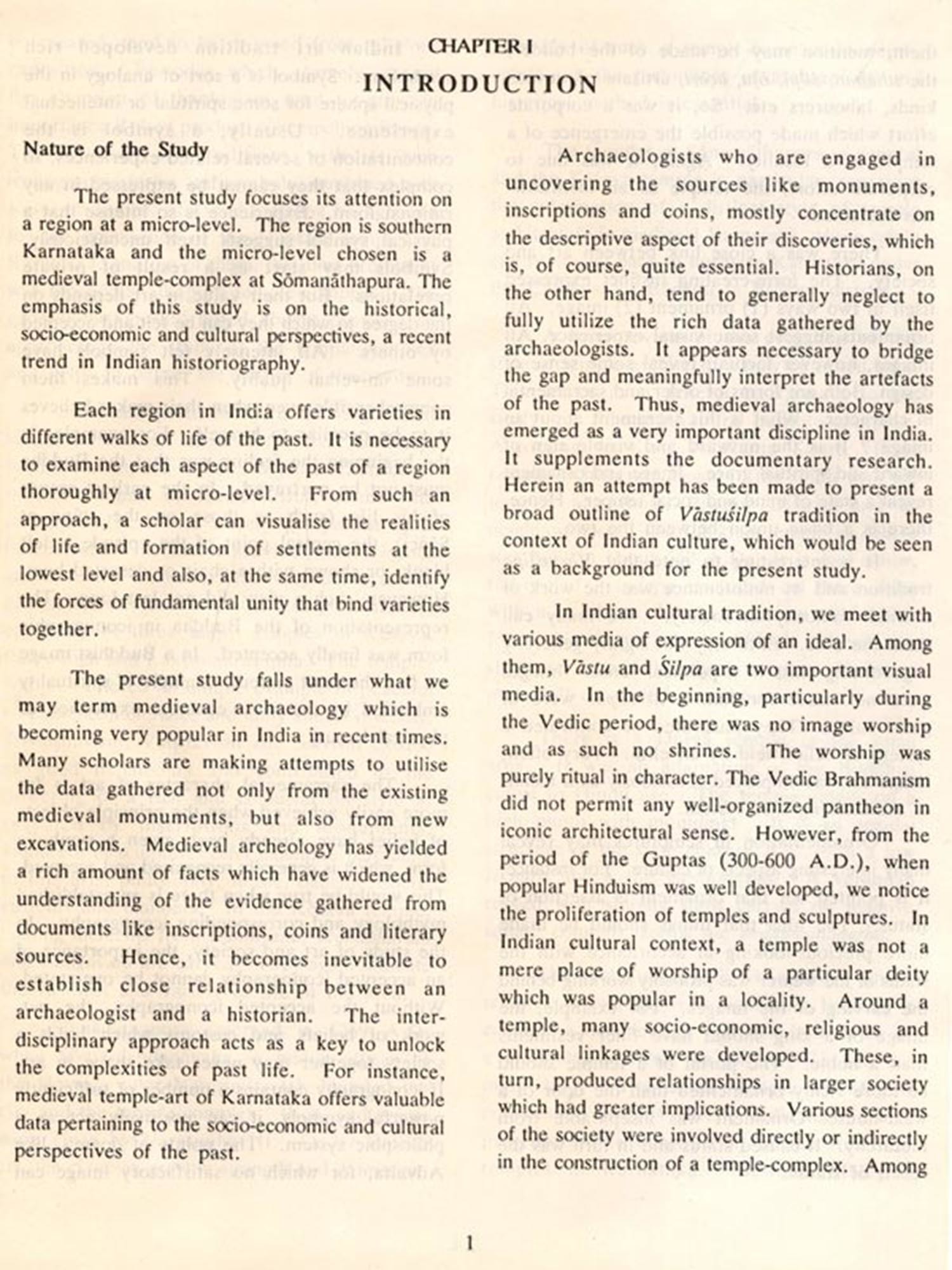 Looking beyond the technical and aesthetic details of the Somanathapur temple complex, Dr.D.V. Devaraj speculates on the way in which the temples might have moulded the temporal and spiritual life of the people. This is a welcome approach. The study helps us to understand the role of such temple complexes in the history and culture of Karnataka.