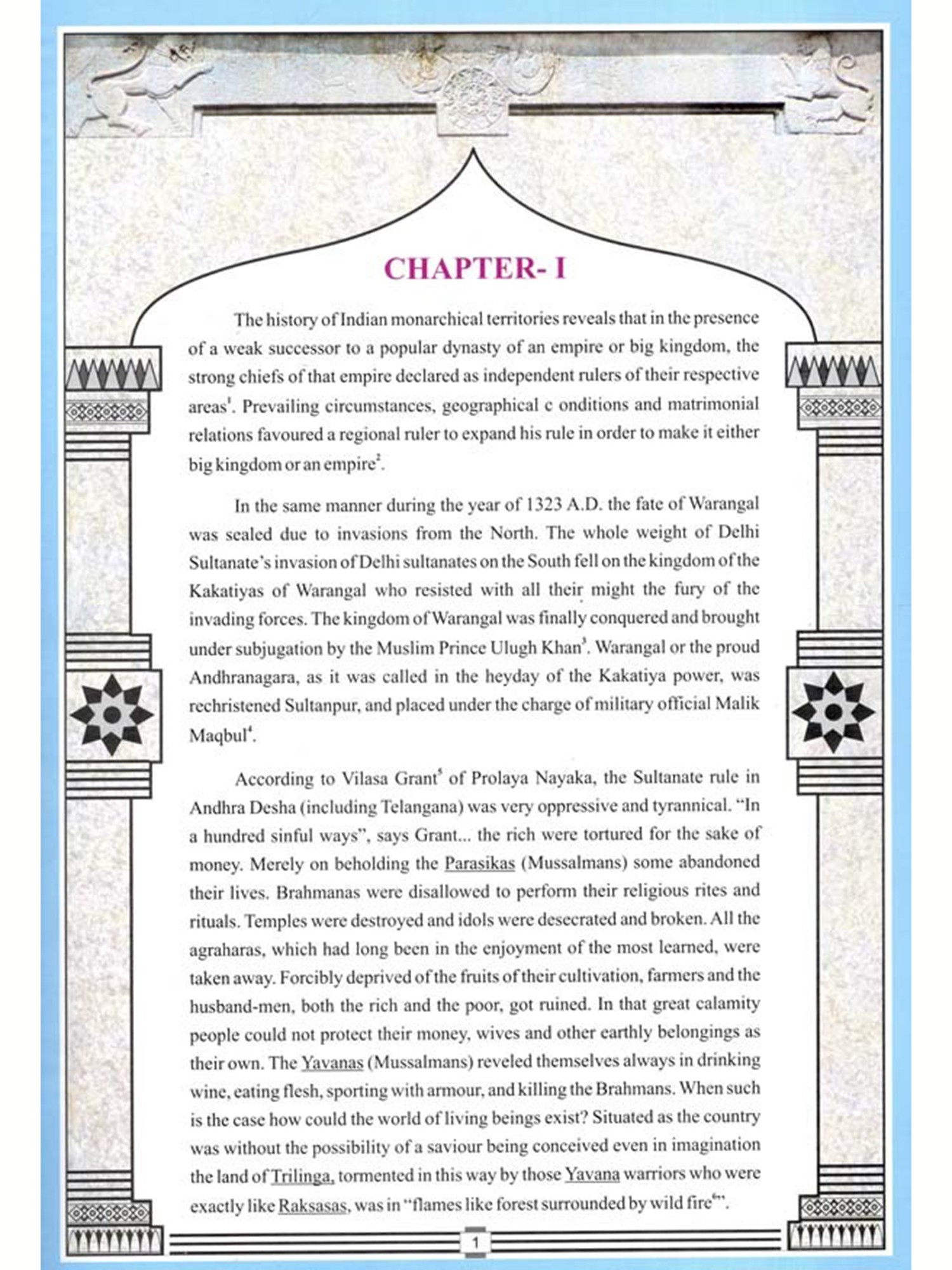It is welcoming that the book on such an important dynasty is brought out at an important juncture when the new state of Telangana is looking for its past glory. The composers of the book - Dr. Dayakar and Dr. Satyanarayana -seem to have made the book more lucid and authentic simultaneously with primary sources and photos. I congratulate them and refer the book to every Telangana person to go through the book to enrich their knowledge so as to love their pride past.