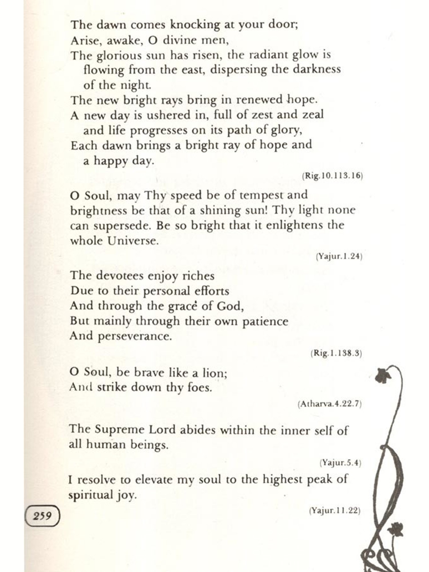 These simple and lucid verses continue to inspire all, including contemporary lovers of philosophy. In matter, in form and in variety, Vedic hymns can claim a place among the most ancient and deep philosophies of any civilization and yet continue to have relevance to the world of today and tomorrow.