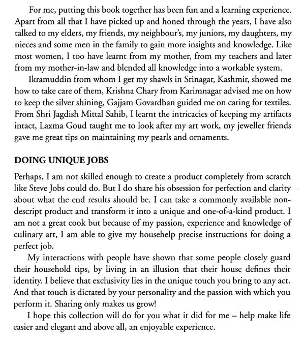 "Home Diva" is a compilation of Anju's trade secrets gathered over the years. Through this book she hopes to make a home-maker's job easier by passing on the tips, wisdom, recipes and little known methods. Its content includes various sub topics: Vastu for the House, Kitchen, Store & Garbage Disposal, Maintenance of Saris, Shawls & Woolens, How to Take Care of Your Art Work, Books and Photographs, Pearls, Jewellery & Watches, Pest Control, Travelling & Efficient Packing, Home Remedies, etc. This book will undoubtedly become your go-to guide for practical and proven tips for running an efficient and beautiful home.