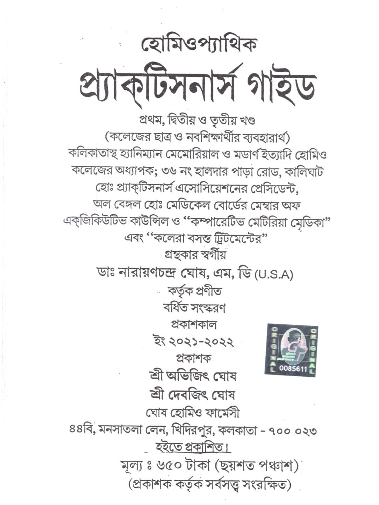 Professor Modern Homeopathic Practitioners Guide (Bengali)