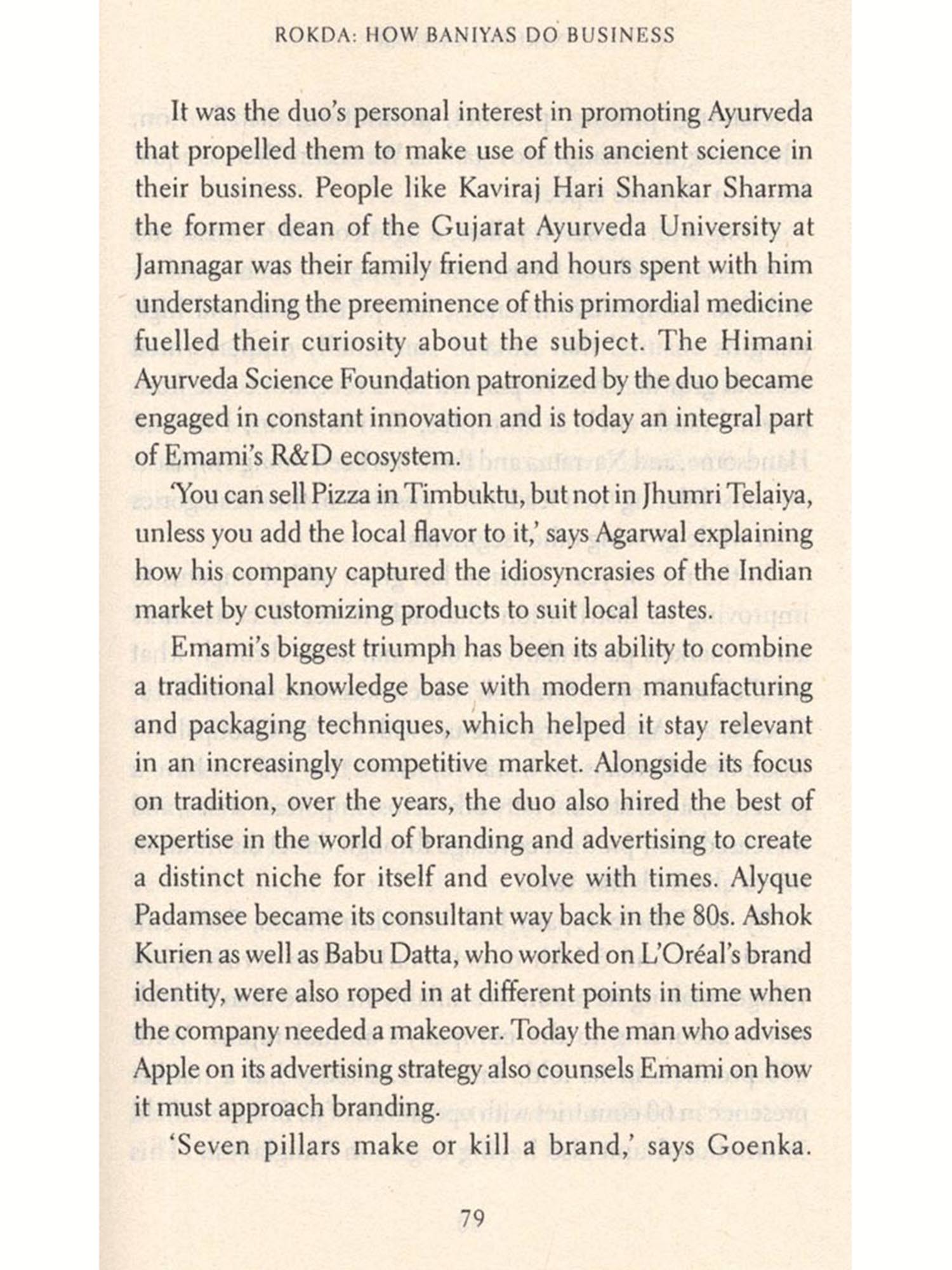 Nikhil Inamdar's Rokda features the stories of a few pioneering men from this mercantile community-Radheshyam Agarwal and Radheshyam Goenka, founders of the cosmetic major Emami; Rohit Bansal, co-founder of Snapdeal; Neeraj Gupta, founder of Meru Cabs; and V.K. Bansal, a humble mathematics tutor whose genius spawned a massive coaching industry in Kota-amongst others.