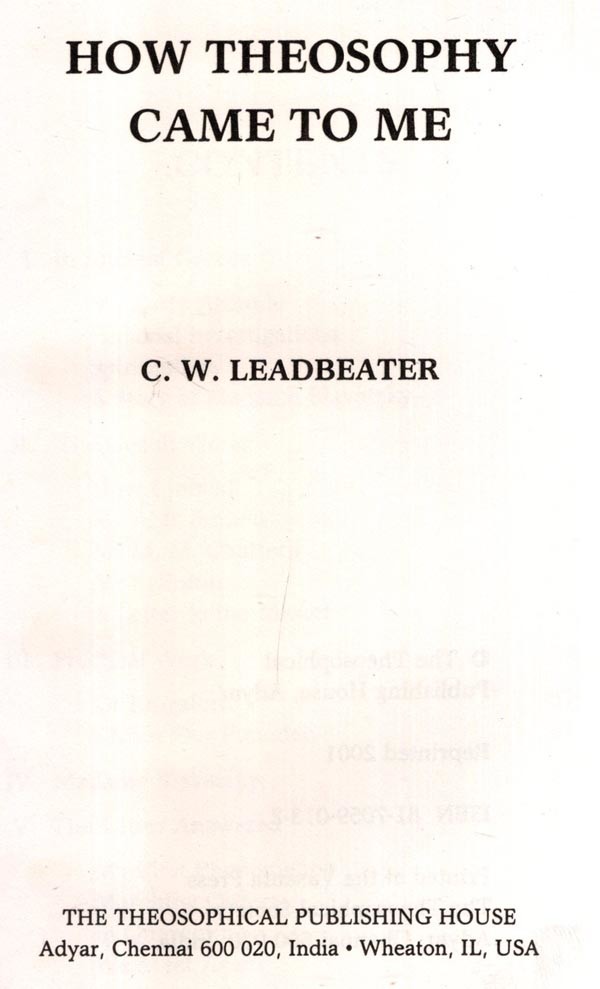 Publisher: The Theosophical Publishing House Adyar, Chennai