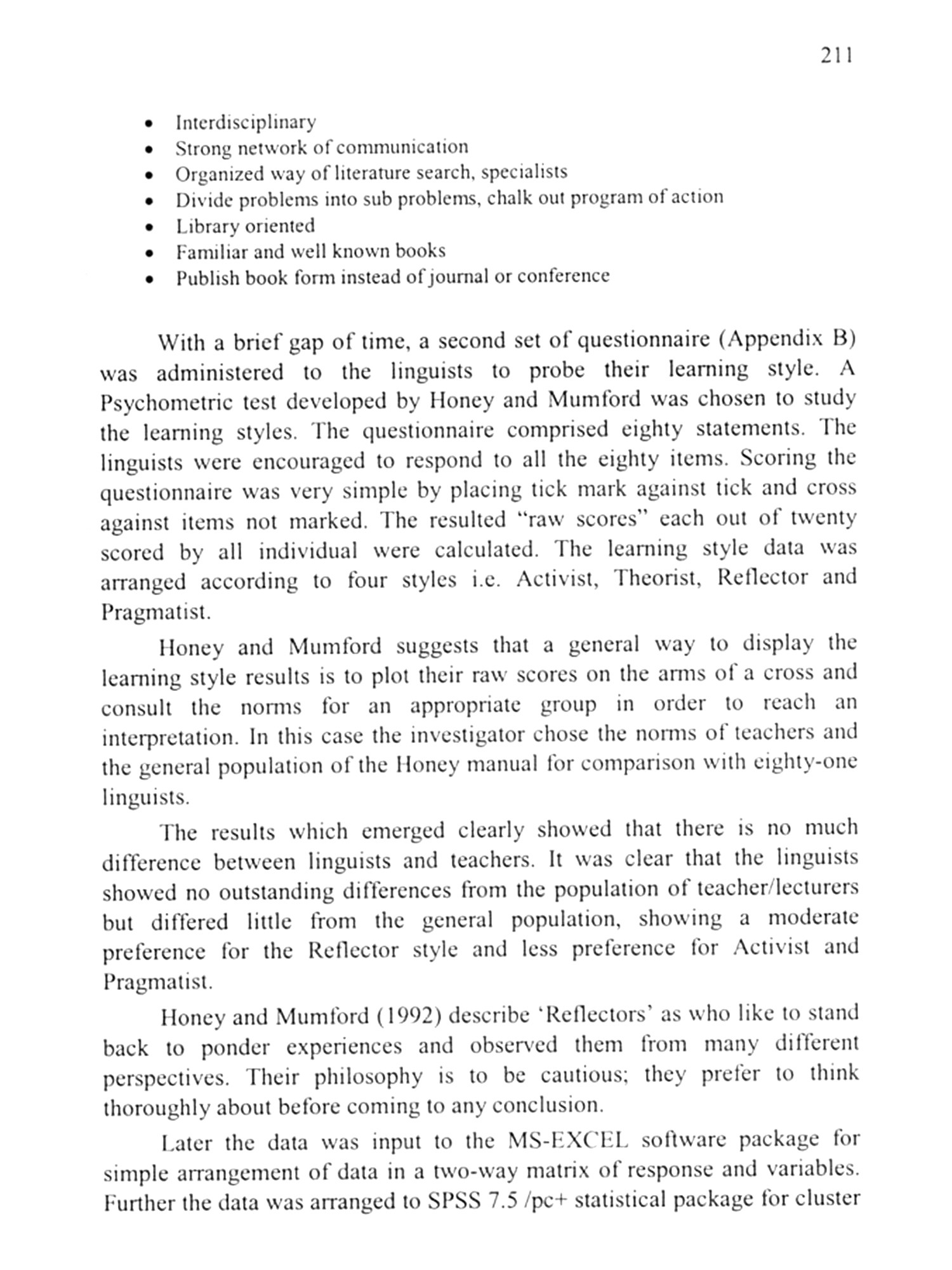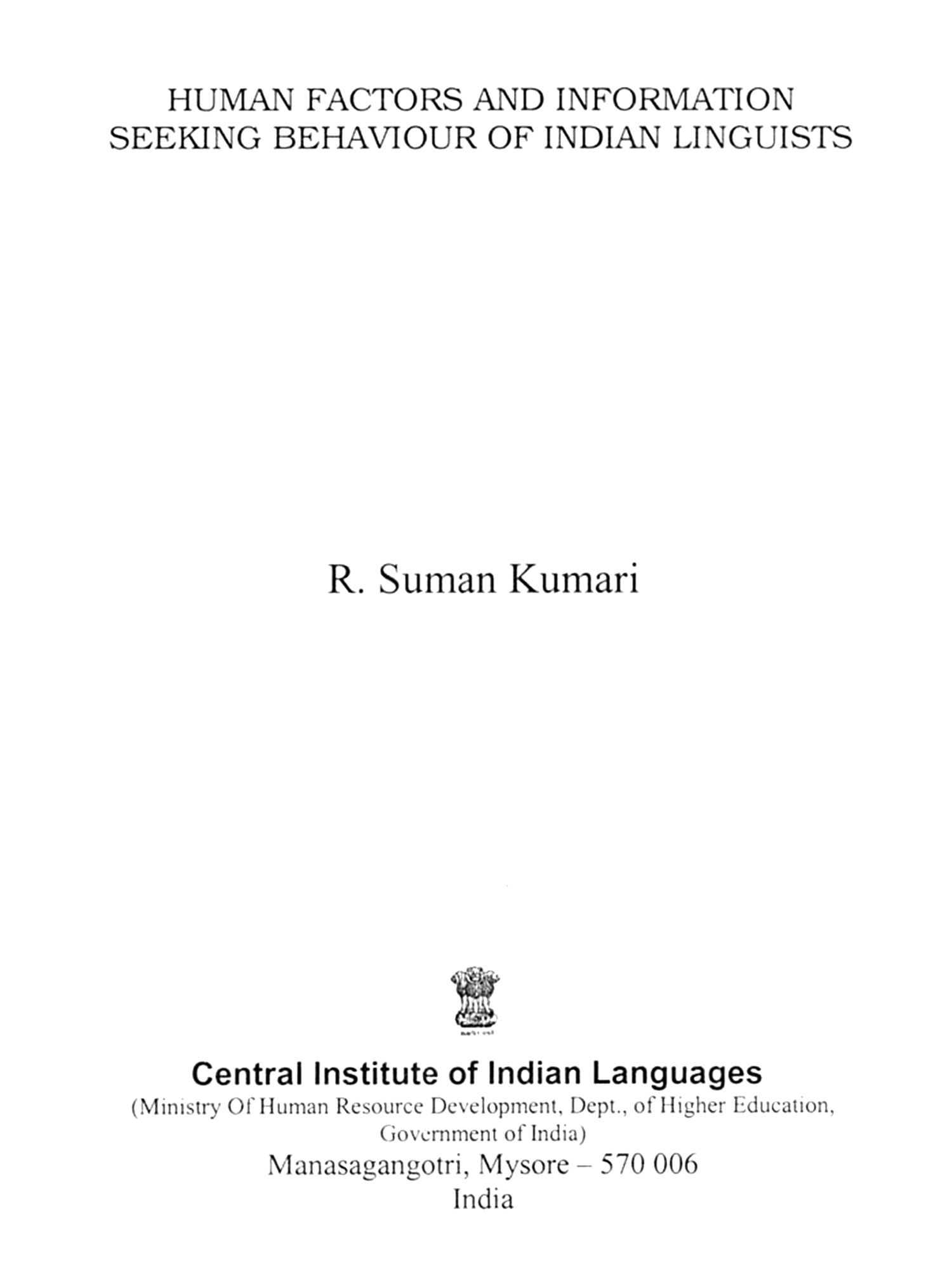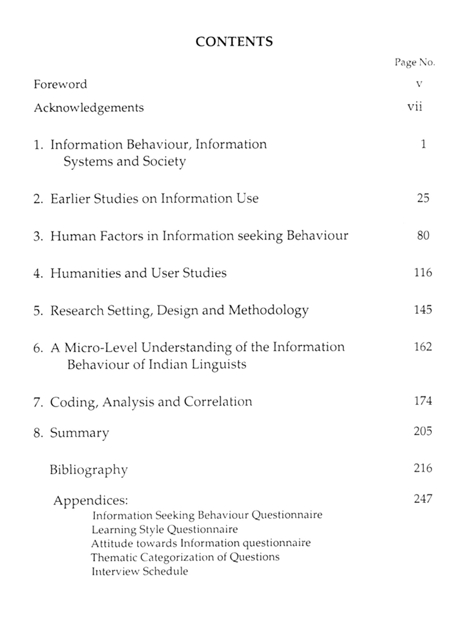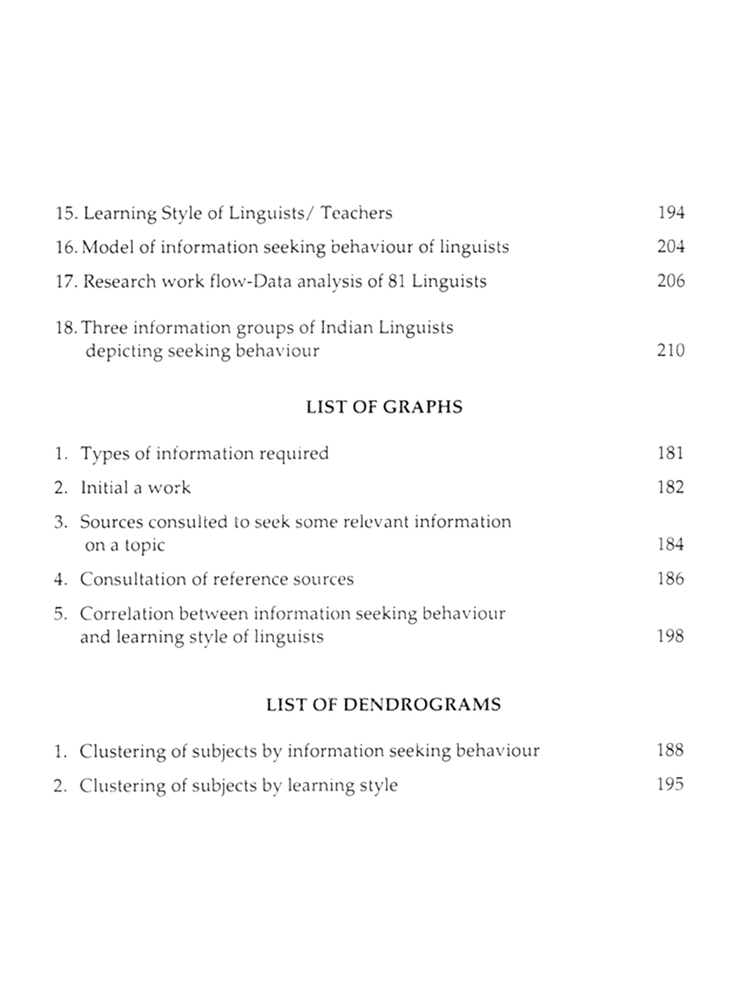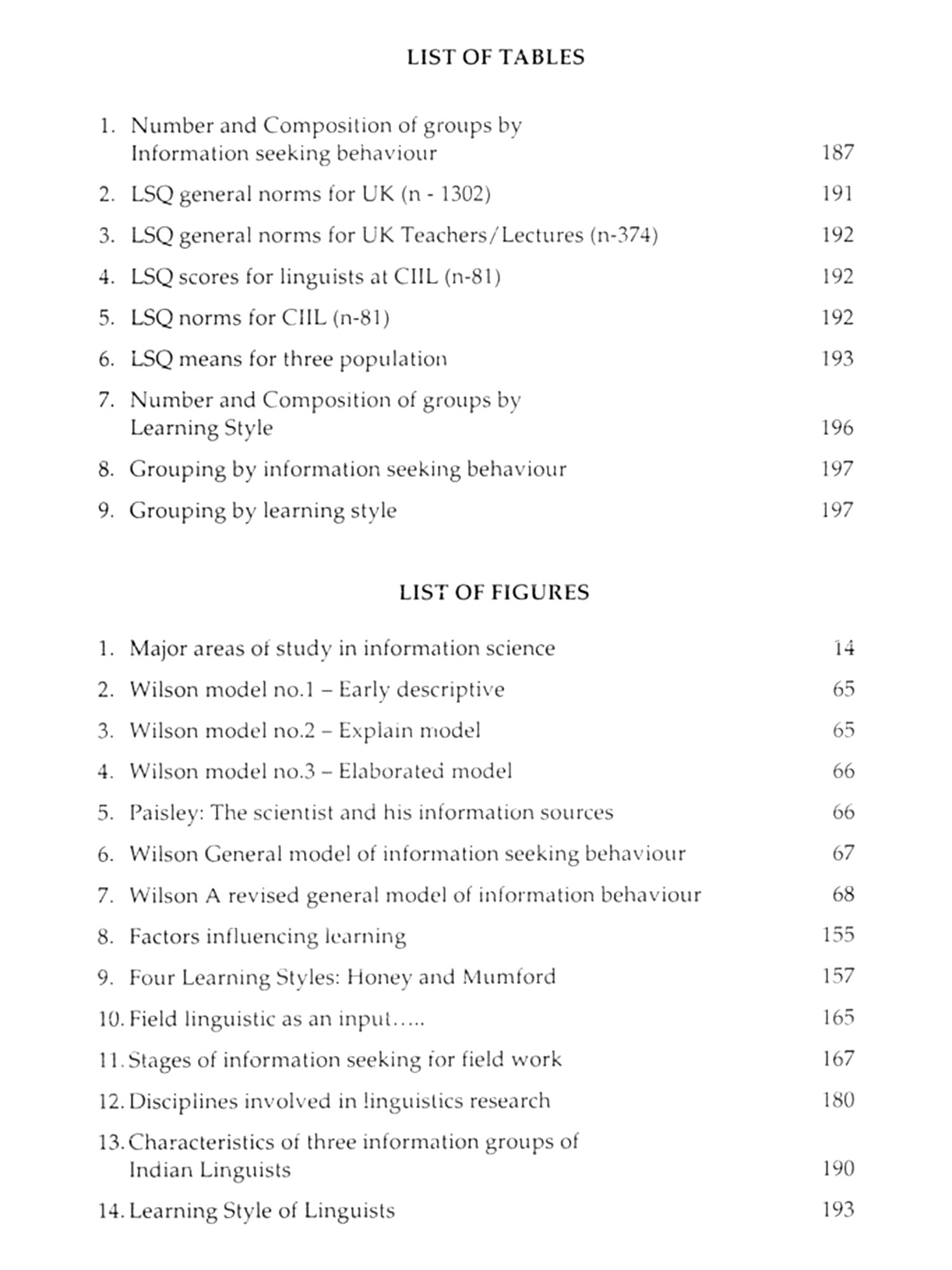 I am immensely grateful to my research guide Prof.R. Shalini Urs, Executive Director International School of Information Management, University of Mysore who offered her valuable advice and comments at every phase of the research work till its publication. I am also thankful to Prof Peter Ingwersen, Royal School of Librarianship, Denmark and Late Dr. Veena Saraf University of NEHU, Shillong for their valuable suggestion. I am obliged to Prof. Honey for his kind permission to use his Learning Style Questionnaire/ Manual and to Dr. N.G. Satish for permitting me to use his Questionnaire for Attitude towards Information study.
